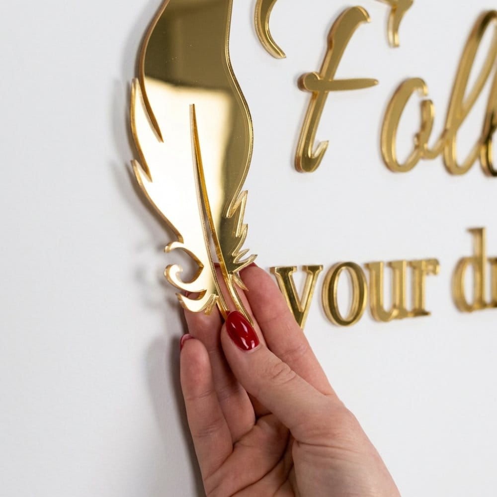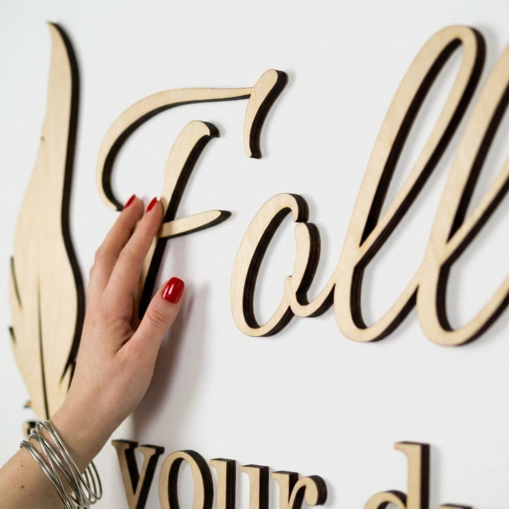 Podążaj za swoimi marzeniami. Całość tworzy dynamiczny i lekki obraz, idealny do nowoczesnych wnętrz. Tekst "Follow your dreams" to klasyczne, motywacyjne przesłanie, które od lat inspiruje ludzi do działania i śmiałego dążenia do celów. Przypomina nam, że warto słuchać intuicji, pielęgnować pasje i nie bać się realizować swoich najskrytszych pragnień. Ta dekoracja to coś więcej niż ozdoba – to codzienna dawka pozytywnej energii i subtelne zaproszenie do refleksji nad własną drogą.