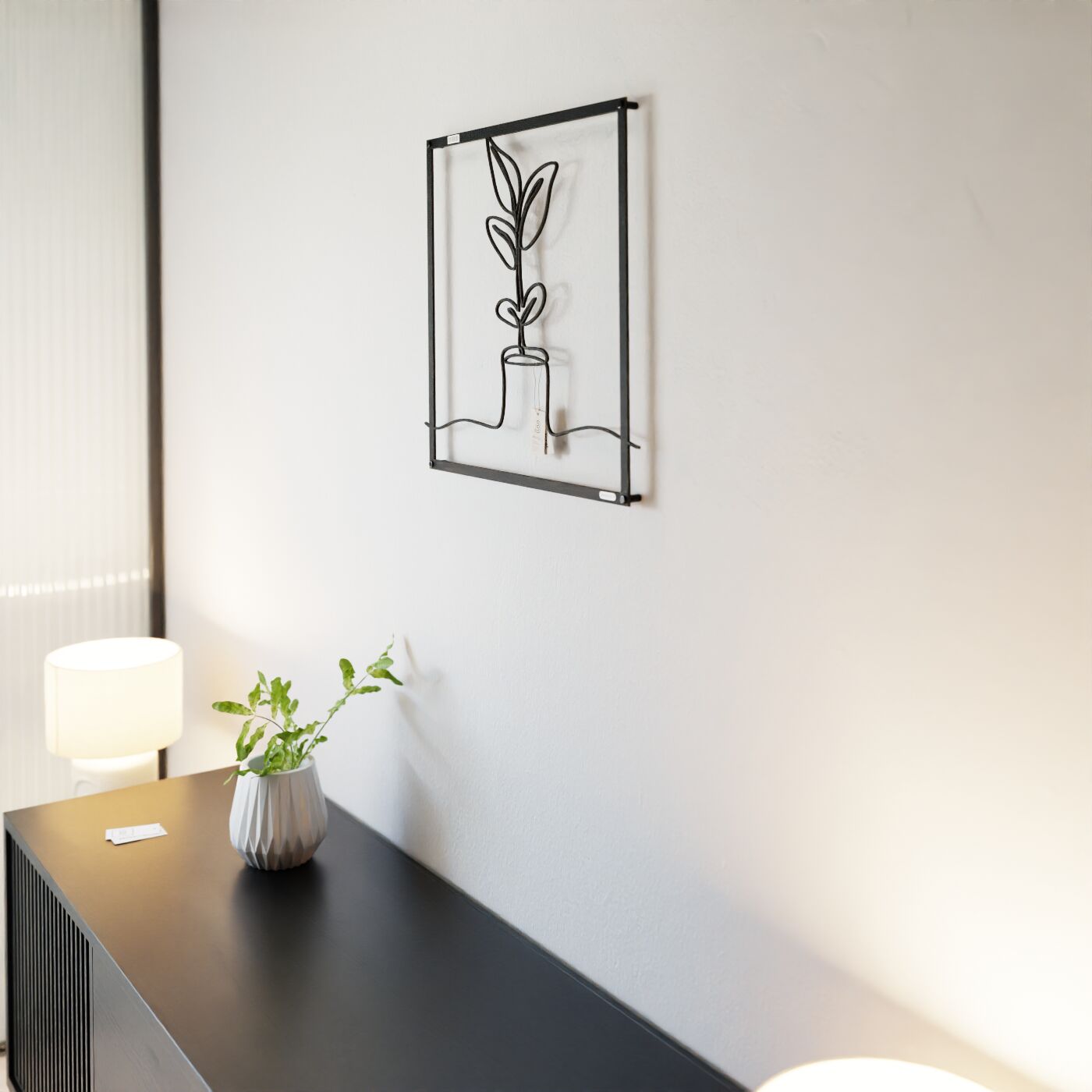Panel dekoracyjny kwiat w donicyDekoracja ażurowa z motywem rośliny w donicy to delikatny i nowoczesny panel ścienny, który wnosi do wnętrza odrobinę natury w minimalistycznej formie. Kompozycja przedstawia roślinę o prostych, ale efektownych liściach, osadzoną w małej, zaokrąglonej donicy. Całość otacza prostokątna rama, która nadaje dekoracji strukturę i nowoczesny wygląd. Ten panel idealnie sprawdzi się w różnych aranżacjach wnętrz, od nowoczesnych po bardziej tradycyjne, gdzie dominuje prostota i elegancja. Dekoracja ścienna z rośliną w donicy została precyzyjnie wycięta laserowo, co zapewnia dokładność i wyraźne kontury. Dzięki łatwemu montażowi, możesz szybko odmienić wystrój każdego pomieszczenia – doskonale prezentuje się w salonie, sypialni lub w przedpokoju, wprowadzając nutę świeżości i spokoju do wnętrza.
