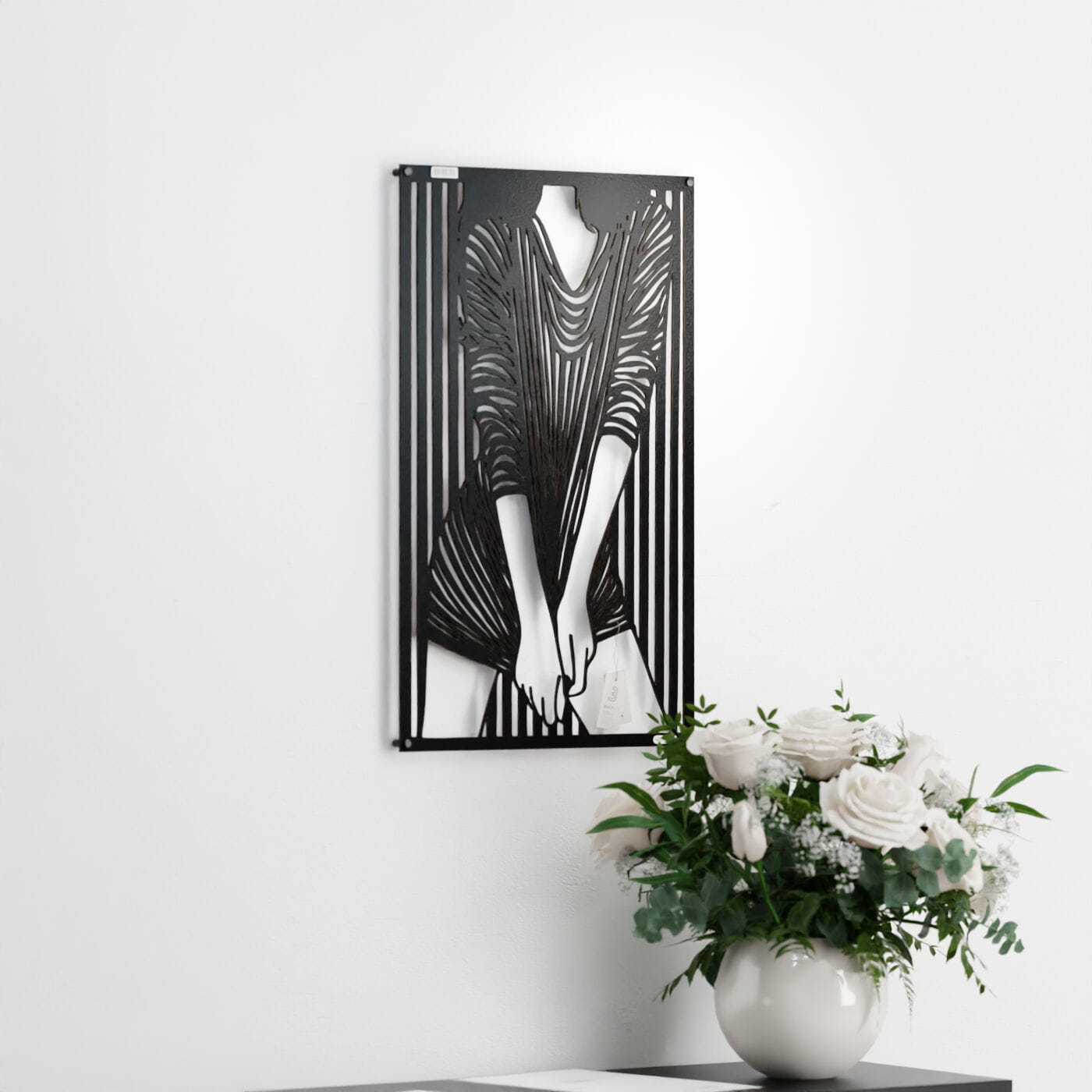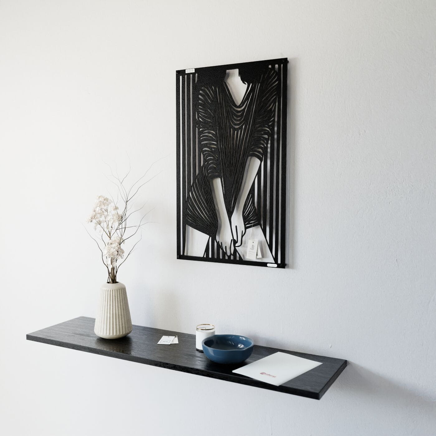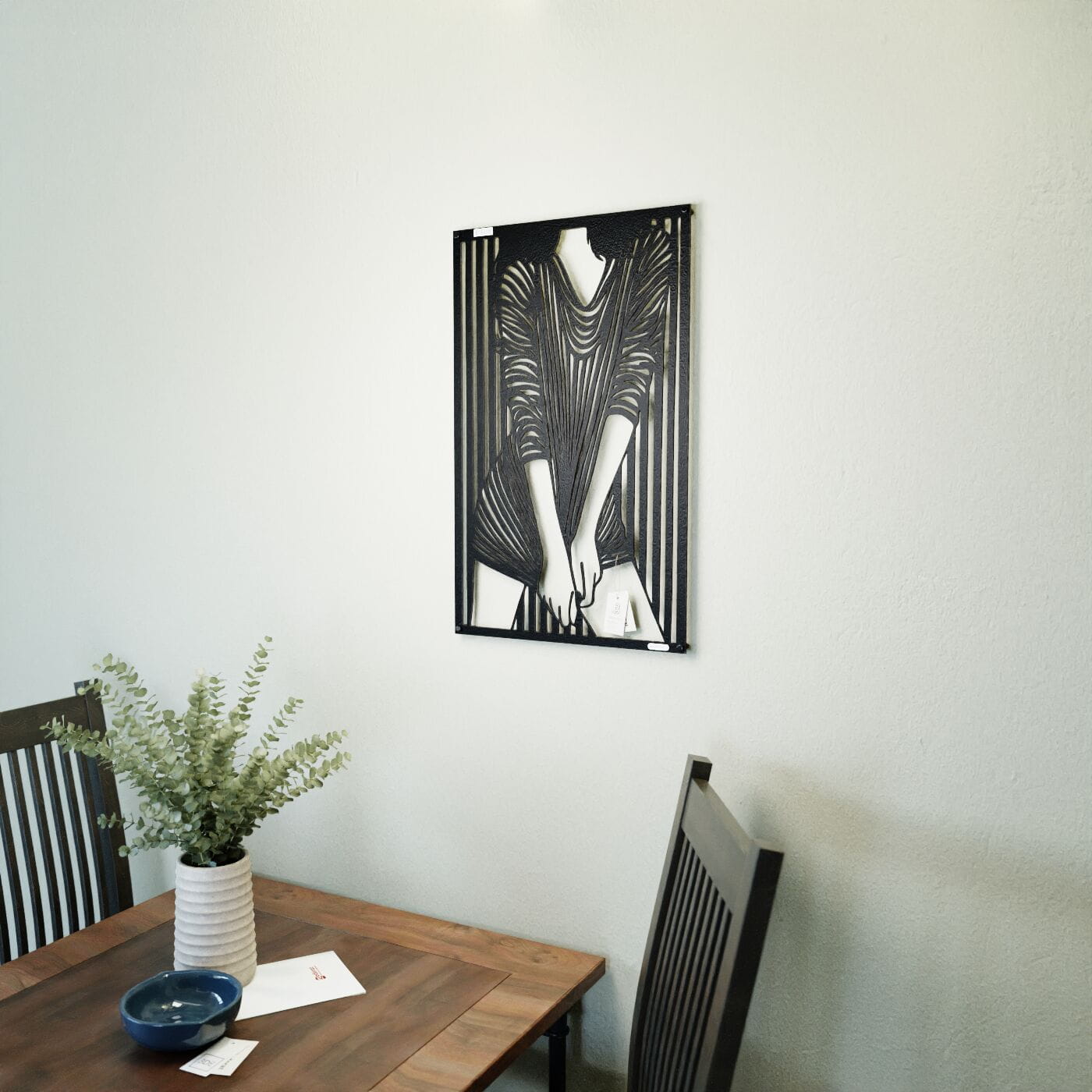 Panel dekoracyjny kobietaPrzestrzenny ażurowy panel 3D kobieta - to nowoczesna ozdoba ścienna, która w subtelny sposób ukazuje elegancką sylwetkę kobiety. Przedstawiona postać ubrana w dopasowaną sukienkę w paski, które dynamicznie układają się na tle, tworzy efekt głębi i ruchu. Zastosowanie tego prostego, a jednocześnie wyrazistego motywu dodaje całości artystycznego wyrazu. Wzór panelu opiera się na graficznej grze kontrastów, która idealnie komponuje się z nowoczesnymi i minimalistycznymi wnętrzami. Dekoracja ścienna ażurowa w tym wydaniu doskonale sprawdzi się jako niebanalny dodatek do loftowych lub industrialnych przestrzeni, wprowadzając odrobinę oryginalności i elegancji. Ten panel ścienny z pewnością przypadnie do gustu miłośnikom sztuki współczesnej, którzy szukają unikalnych i niepowtarzalnych elementów dekoracyjnych do swojego domu.