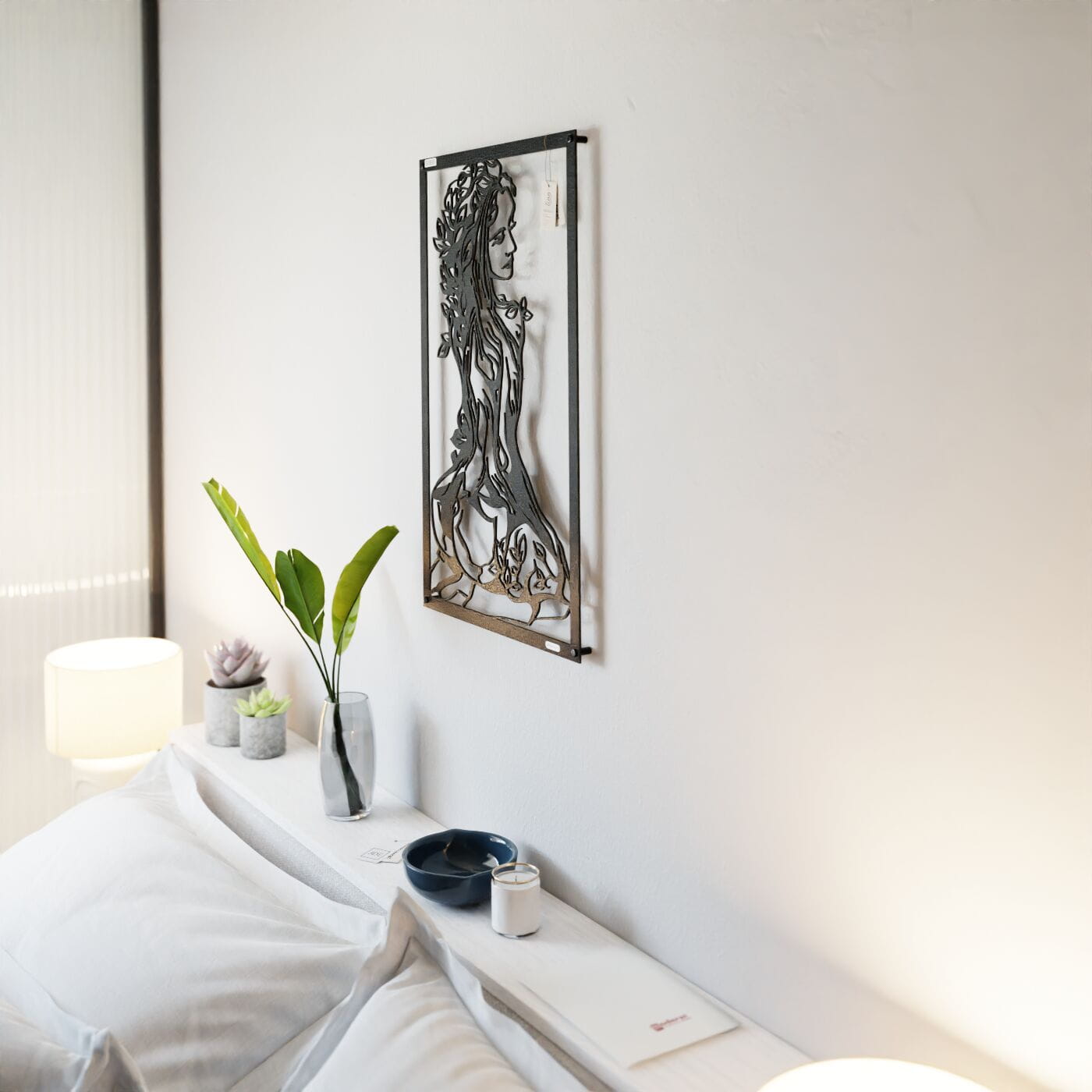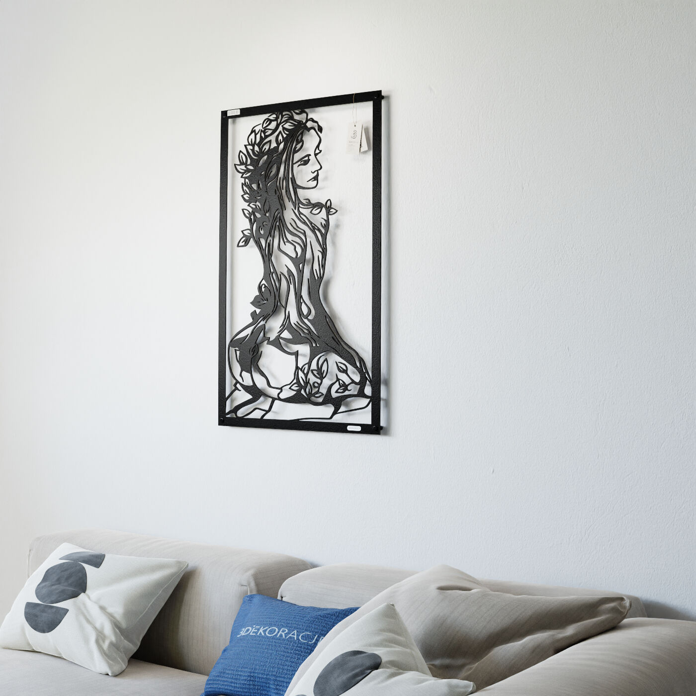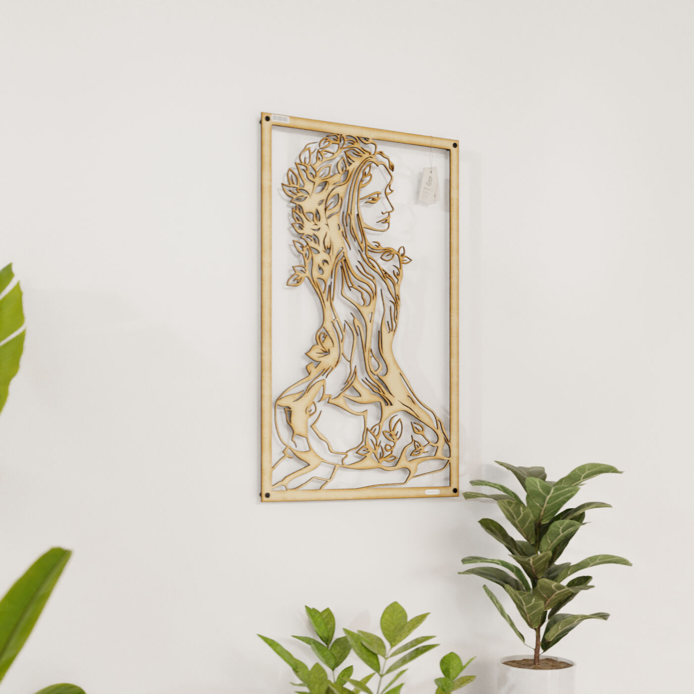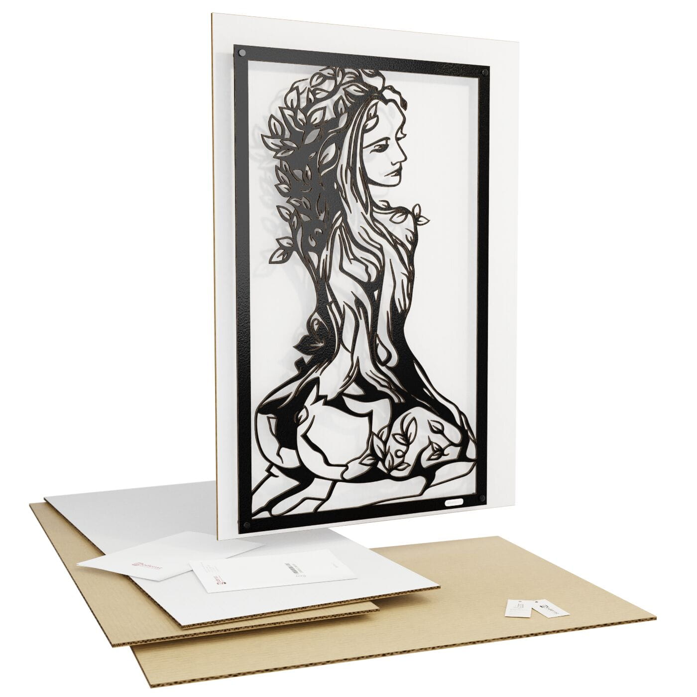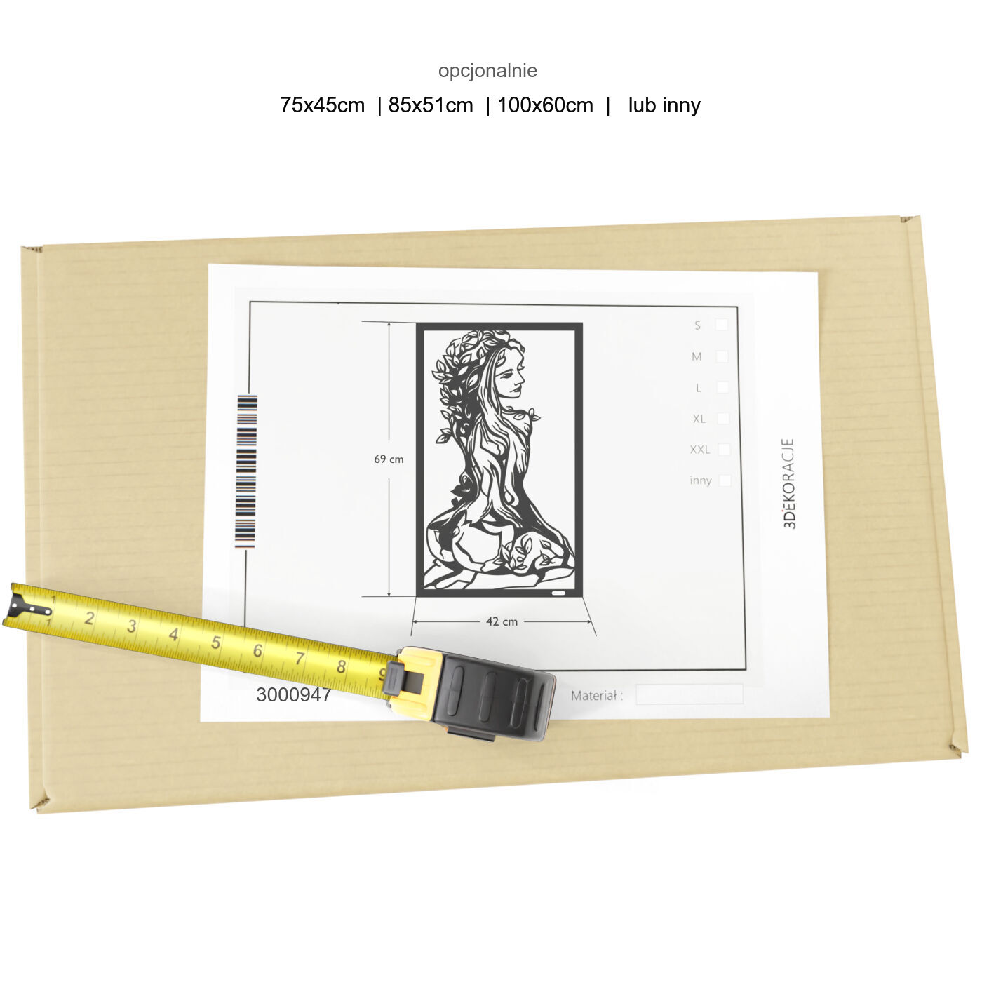 Panel ażurowy 3d kobietaPanel dekoracyjny z postacią kobiety i motywem natury przyciąga wzrok dzięki swojej unikalnej i szczegółowej formie. Wzór przedstawia kobietę, której ciało stopniowo przechodzi w strukturę drzewa, symbolizując harmonijną więź z naturą. Detale liści oplatających jej postać oraz subtelnie zarysowane kontury tworzą efekt trójwymiarowości, co nadaje tej dekoracji wyjątkowy charakter. Ten panel ścienny doskonale sprawdzi się jako ozdoba w przestrzeniach o artystycznym, eklektycznym stylu. Może zdobić ścianę w sypialni, salonie lub nawet w gabinecie, wprowadzając naturalną elegancję i spokój. Jego minimalistyczny, a zarazem wyrazisty design z powodzeniem wpisze się również w nowoczesne wnętrza, gdzie dodatki o symbolicznym znaczeniu dodają głębi aranżacji. Wykonany z lekkiego drewna – dostępny zarówno w wersji ze sklejki, jak i laminowanej płyty – panel jest wycinany laserowo, co gwarantuje precyzję wykonania. Montaż jest niezwykle prosty, a przy zastosowaniu dystansów panel może delikatnie odstawać od ściany, co potęguje efekt wizualny. Idealna ozdoba dla miłośników natury i sztuki.