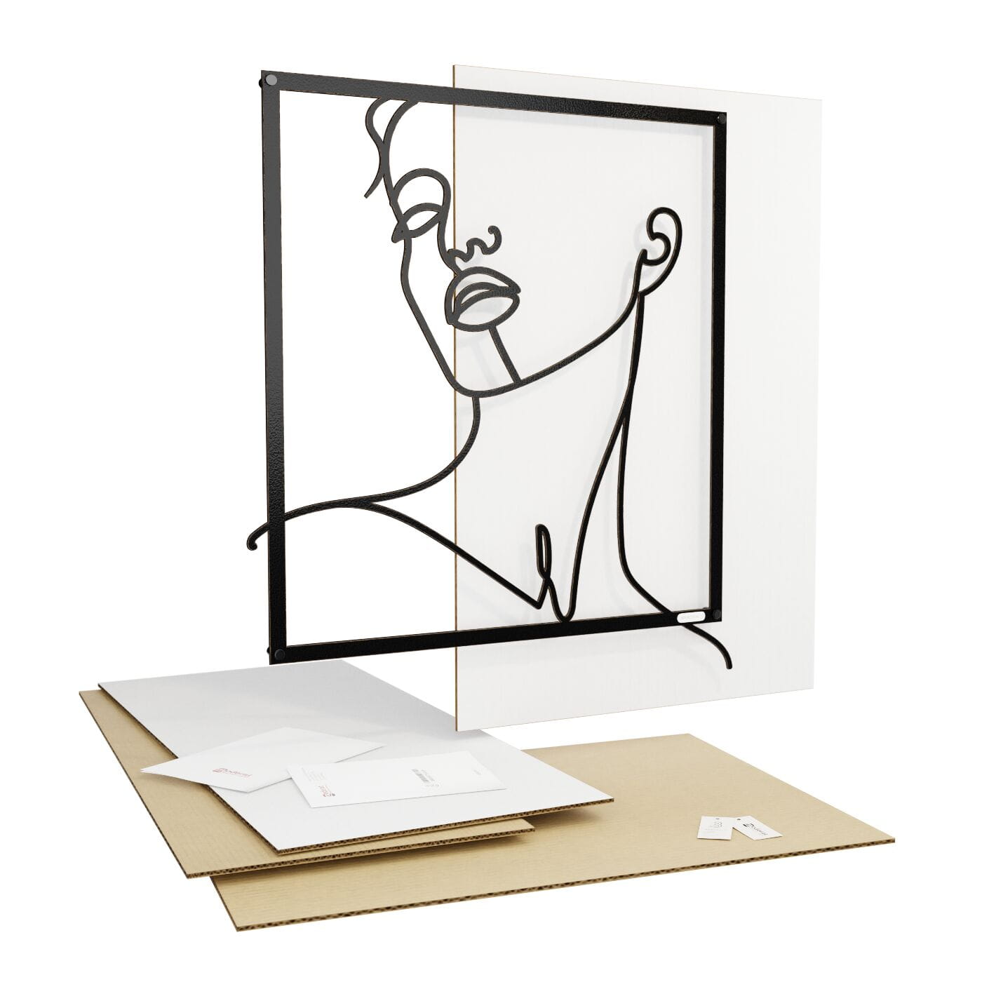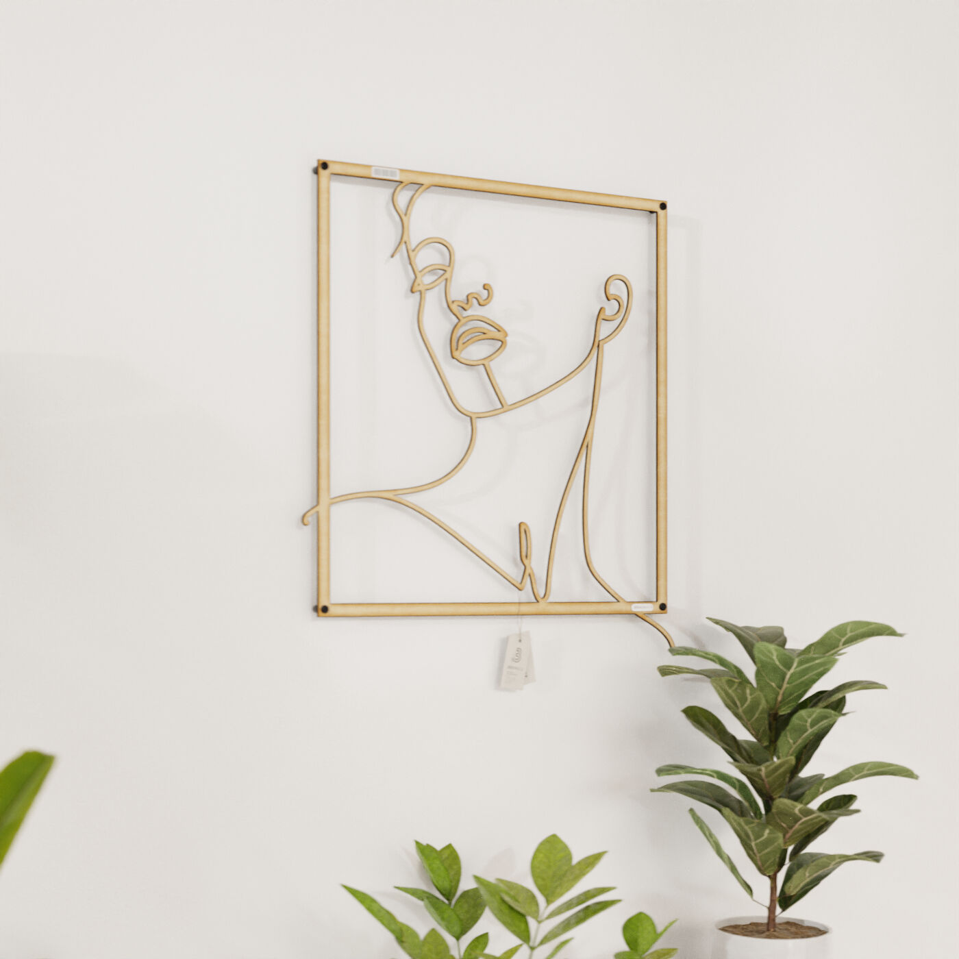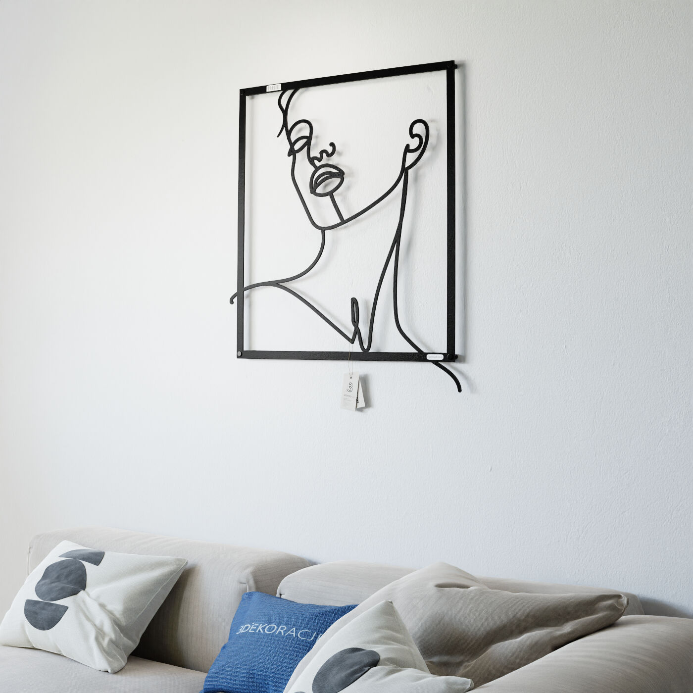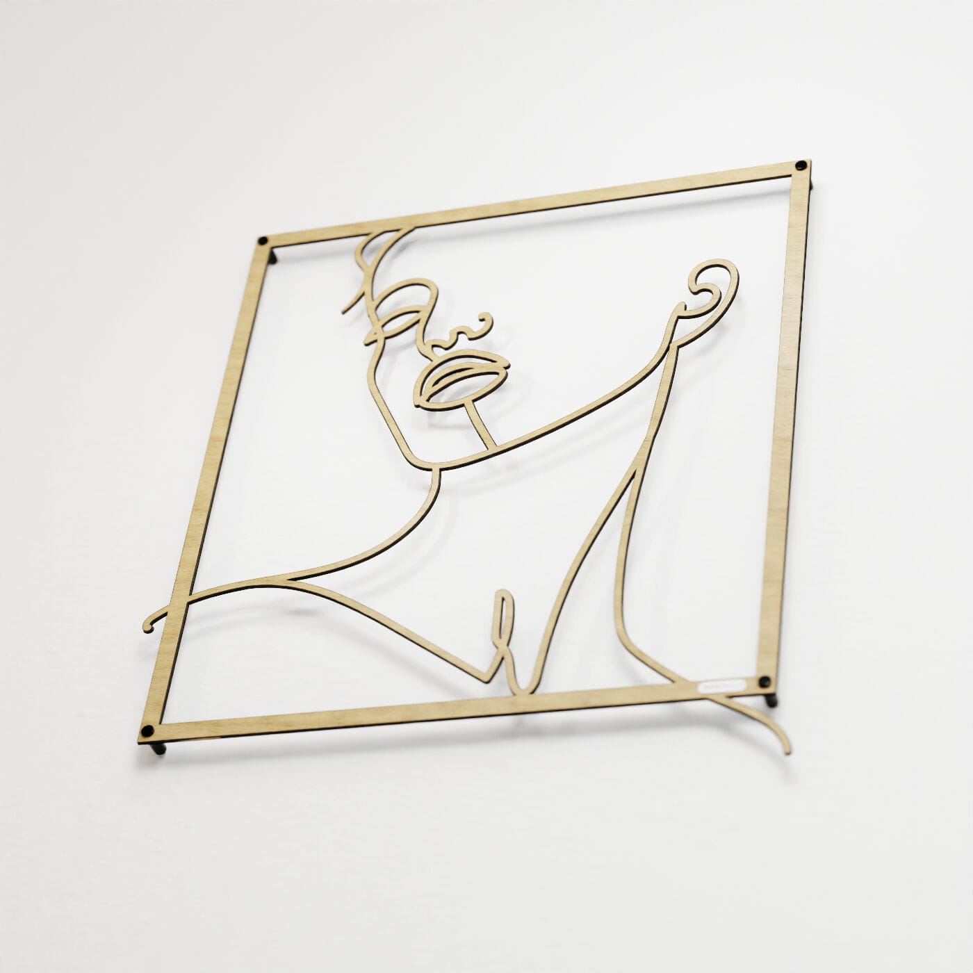 Panel line art kobietaDekoracja ażurowa z motywem kobiecej twarzy wprowadza do wnętrza subtelność i nowoczesny minimalizm. Wzór, który przedstawia liniowy szkic kobiety z uniesioną głową, oddaje uczucie spokoju i zamyślenia. Gładko poprowadzone linie wyrażają delikatność twarzy, podkreślając naturalne piękno i łagodność sylwetki. Wycięcie laserowe gwarantuje precyzję detali, a lekkość konstrukcji sprawia, że panel jest łatwy w montażu i nie obciąża ściany. Zamontowany przy użyciu dystansów, odstaje od powierzchni ściany, tworząc intrygujący efekt trójwymiarowości. To drewniane dzieło sztuki wykonane z sklejki lub drewnianej płyty laminowanej doskonale komponuje się z nowoczesnymi, jak i bardziej klasycznymi aranżacjami wnętrz.