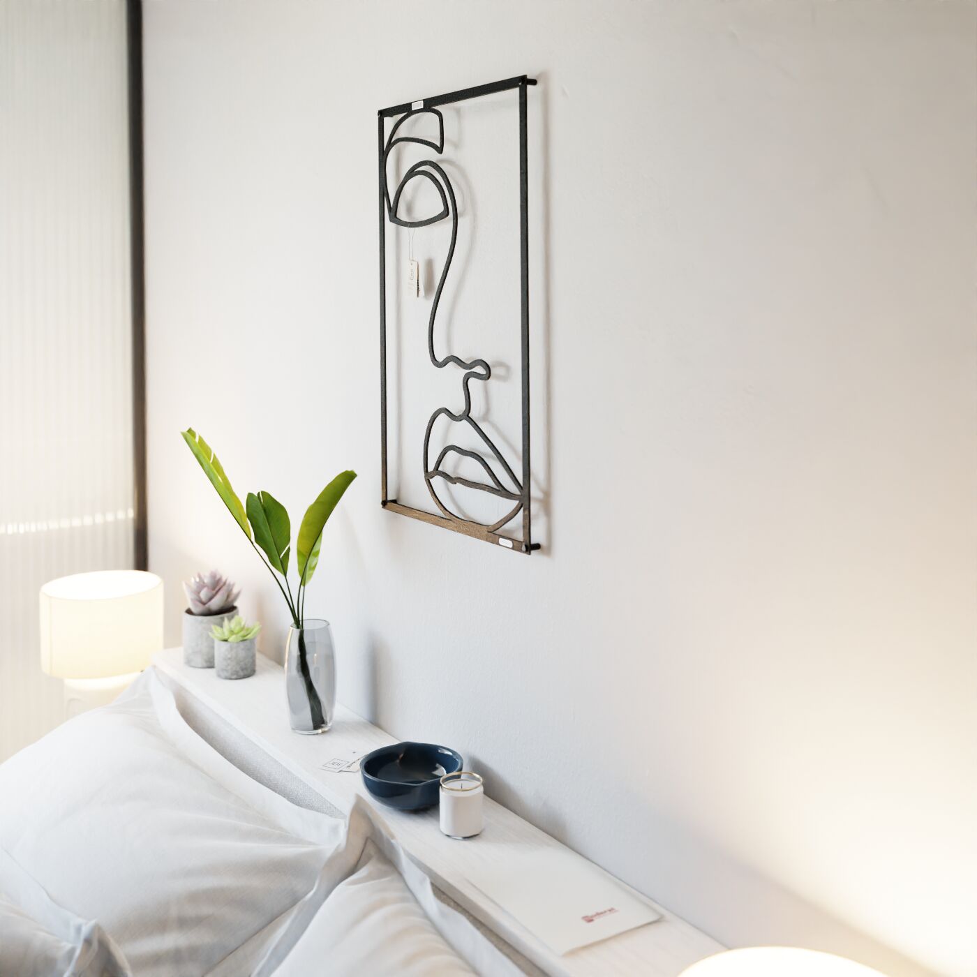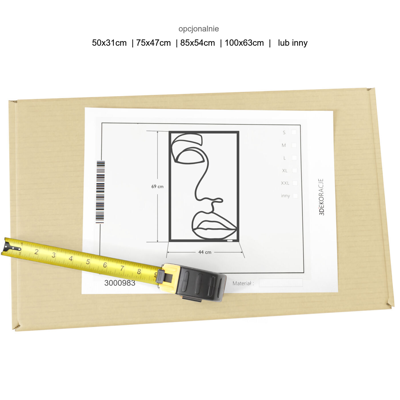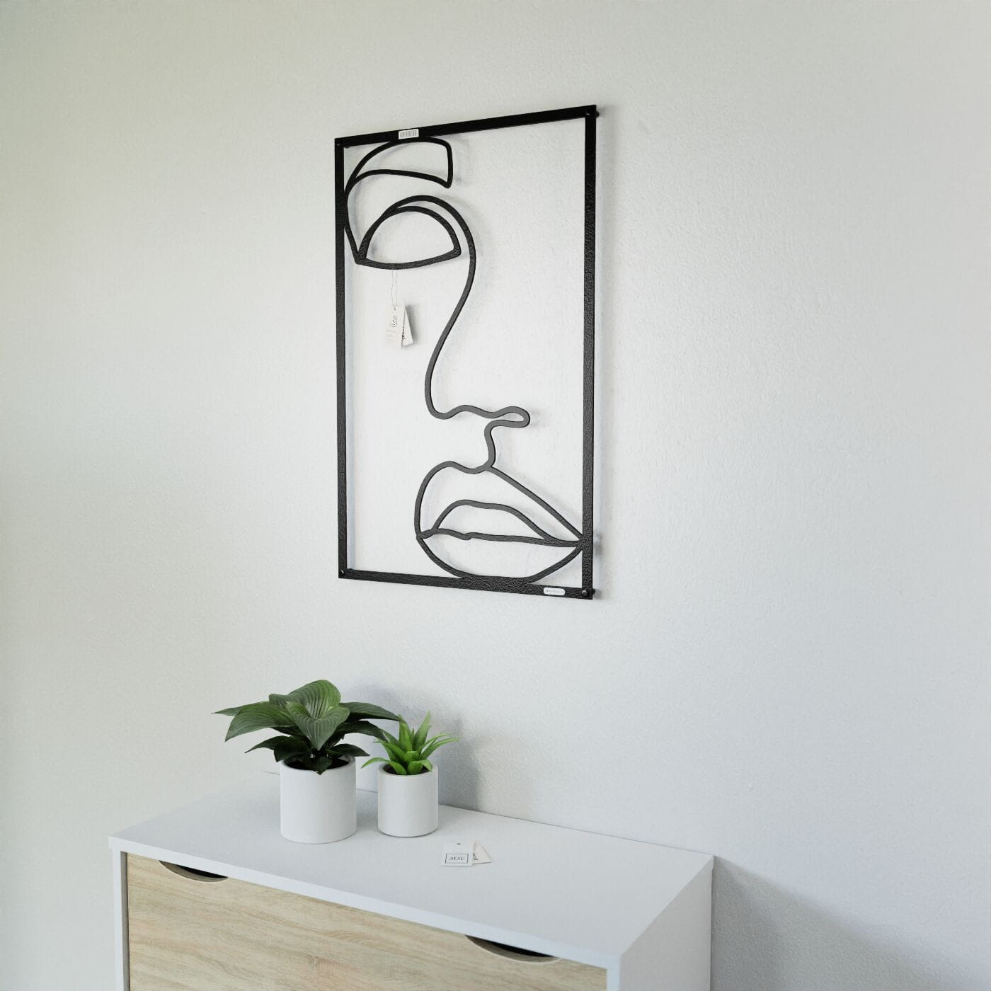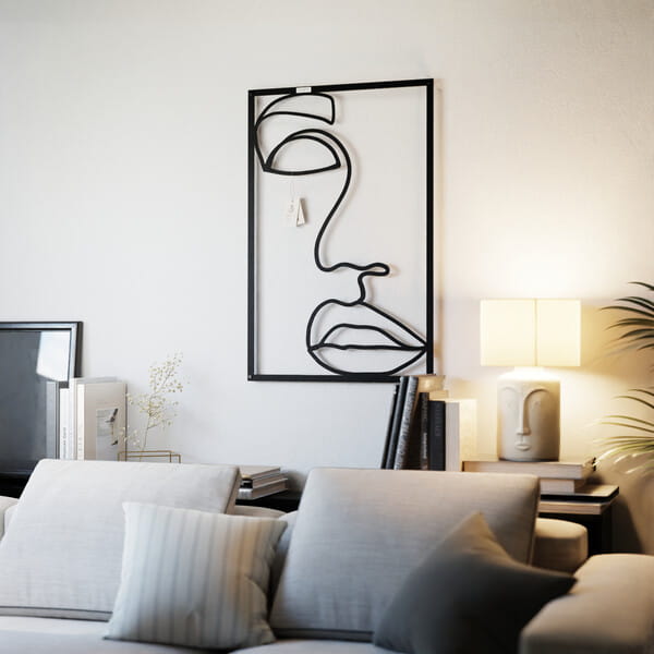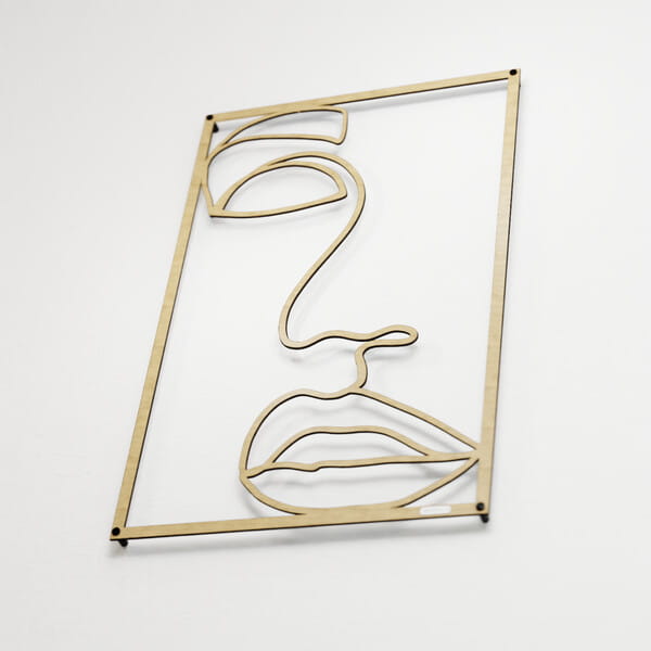 Panel line art kobietaDekoracja ścienna 3D z motywem kobiecej twarzy w minimalistycznym stylu line art. Prezentowany rysunek przedstawia twarz kobiety za pomocą subtelnych, płynnych linii, które tworzą zarys oczu, nosa oraz ust. Kontur, choć oszczędny, emanuje wyrazistością i charakterem, a jego prostota sprawia, że dekoracja idealnie pasuje do nowoczesnych, artystycznych przestrzeni. Tego rodzaju panel dekoracyjny będzie doskonałym dodatkiem do wnętrz urządzonych w stylu minimalistycznym, loftowym czy skandynawskim. Jego neutralny design sprawdzi się zarówno w salonie, jak i sypialni czy biurze, nadając pomieszczeniom elegancji i nowoczesności. Dzięki prostocie formy łatwo wkomponować go w różnorodne aranżacje, tworząc wyjątkową atmosferę w przestrzeni. Panel został precyzyjnie wycięty laserowo, co pozwala na idealne odwzorowanie detali. Jest lekki i łatwy w montażu, a dzięki zastosowaniu dystansów montażowych może delikatnie odstawać od ściany, nadając całości efektu trójwymiarowości. Do wyboru są warianty wykonane z drewnianej płyty laminowanej lub sklejki, co podkreśla naturalny charakter tej dekoracji.