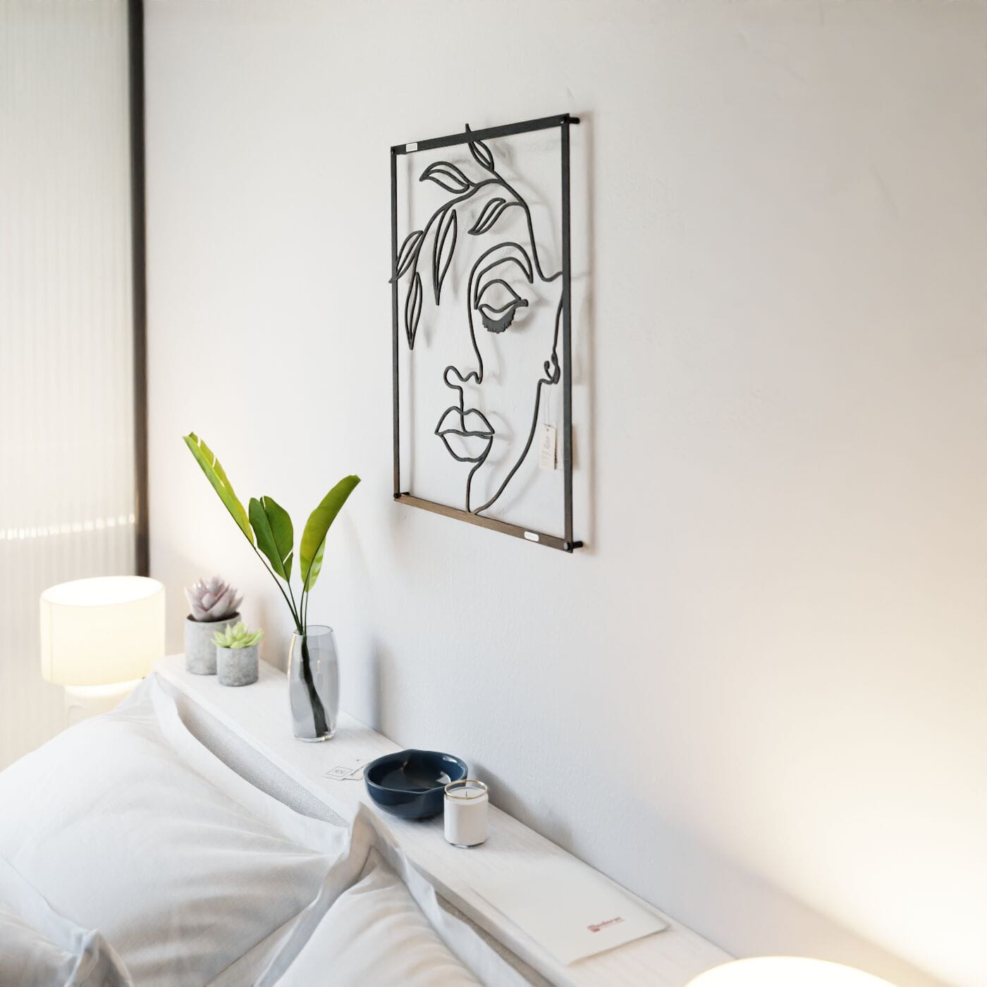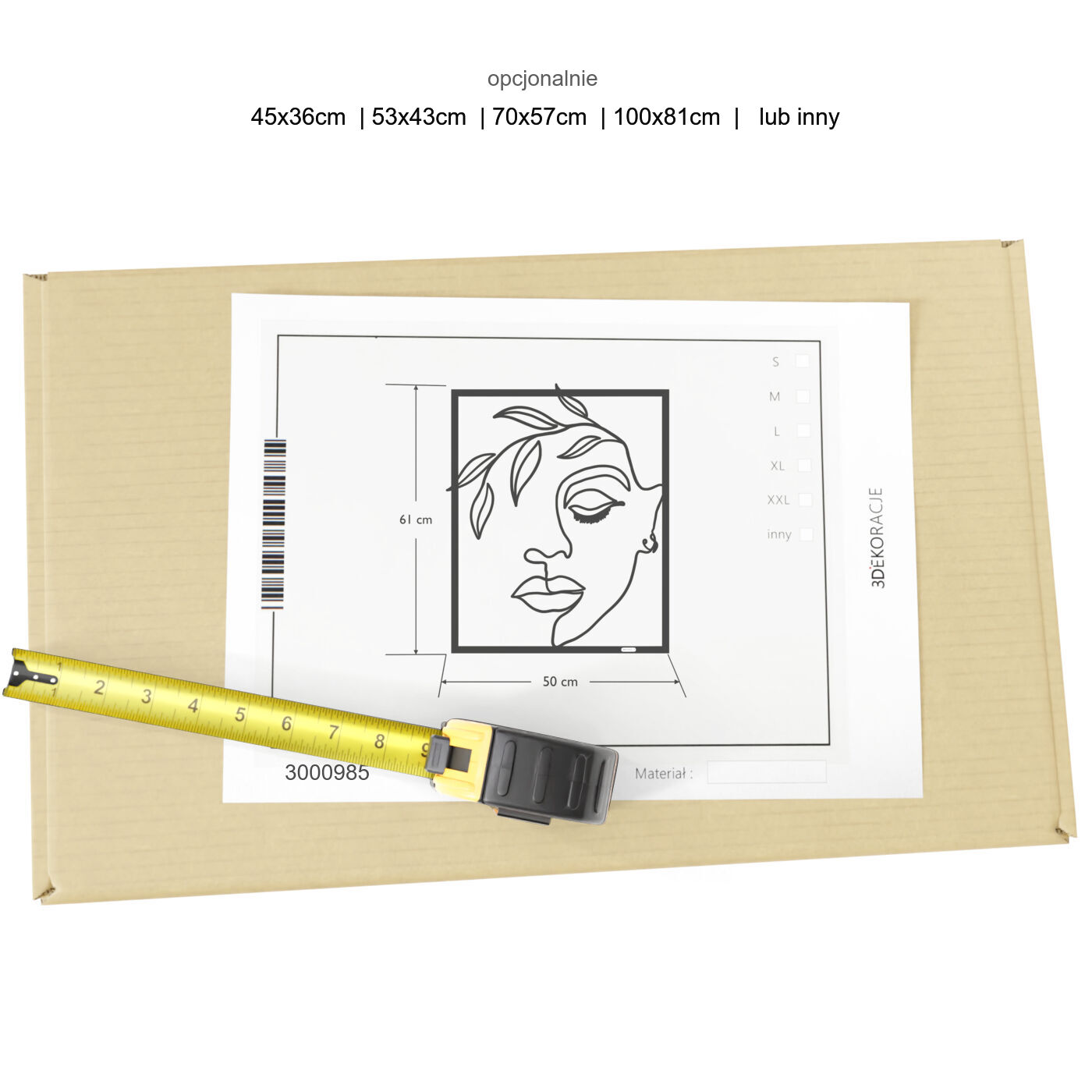 Panel dekoracyjny kobietaDekoracja ścienna 3D przedstawiająca kobiecą twarz ozdobioną motywami liści, które delikatnie otaczają górną część kompozycji. Twarz kobiety emanuje spokojem, a zamknięte oczy i subtelnie zarysowane usta nadają całości zmysłowego, harmonijnego charakteru. Ciekawie ukształtowane liście dodają naturalnego akcentu, co sprawia, że dekoracja idealnie komponuje się z nowoczesnymi i klasycznymi wnętrzami, wnosząc do nich element natury. Ta ozdoba na ścianę to świetny wybór do przestrzeni takich jak sypialnia, salon czy nawet gabinet. Jej subtelność i minimalistyczna forma sprawiają, że pasuje do różnych stylów aranżacji, zarówno tych bardziej wyrazistych, jak i stonowanych. Zastosowanie organicznych kształtów i delikatnych detali nadaje pomieszczeniu wyjątkowego charakteru, jednocześnie nie dominując nad pozostałymi elementami wystroju. Panel został wycięty laserowo, co gwarantuje precyzję wykonania. Jest lekki i wykonany z drewna, dzięki czemu można go łatwo zamontować na ścianie. Przy użyciu dystansów montażowych panel może delikatnie odstawać od powierzchni, tworząc efekt przestrzenności. Do wyboru jest wersja z drewnianej płyty laminowanej lub sklejki.