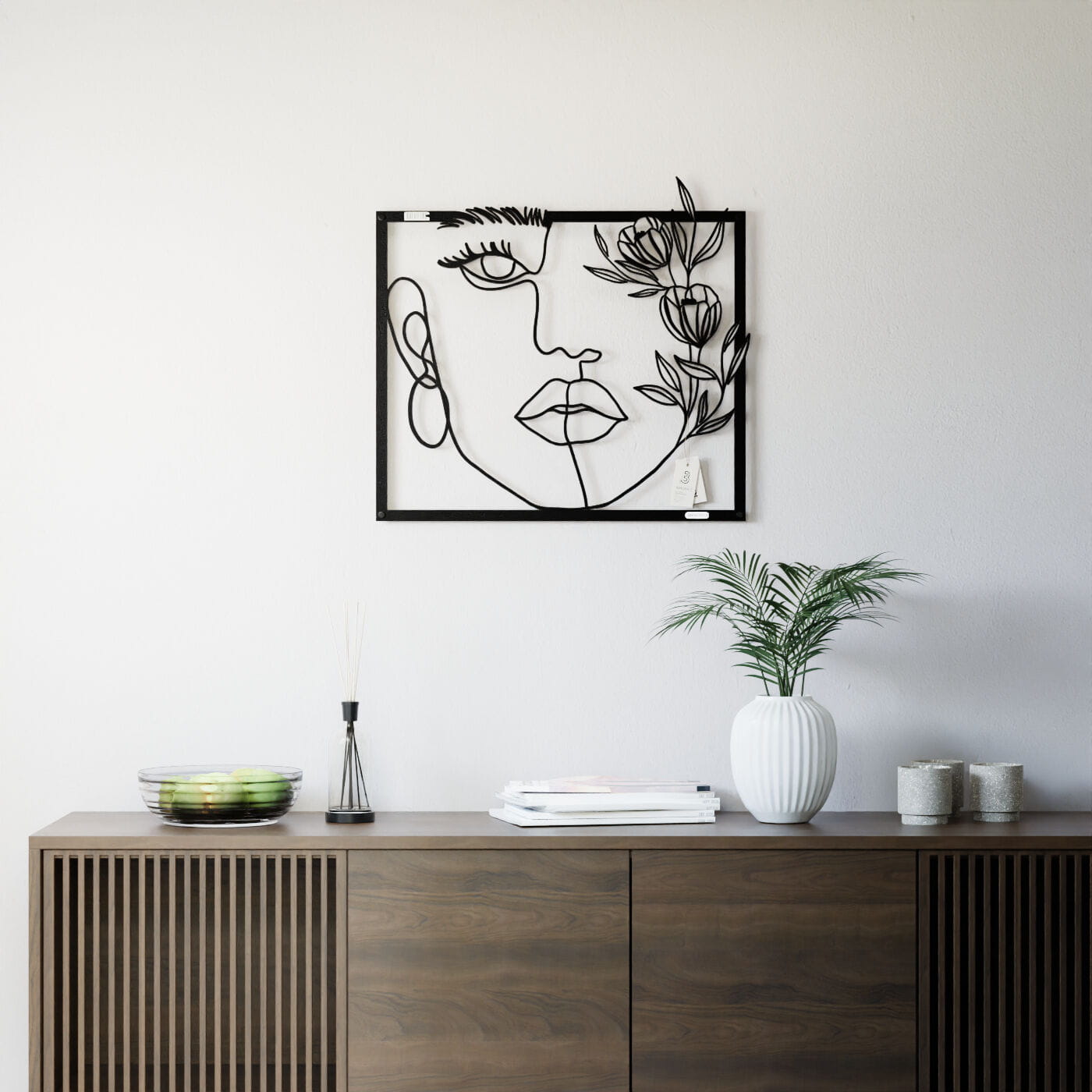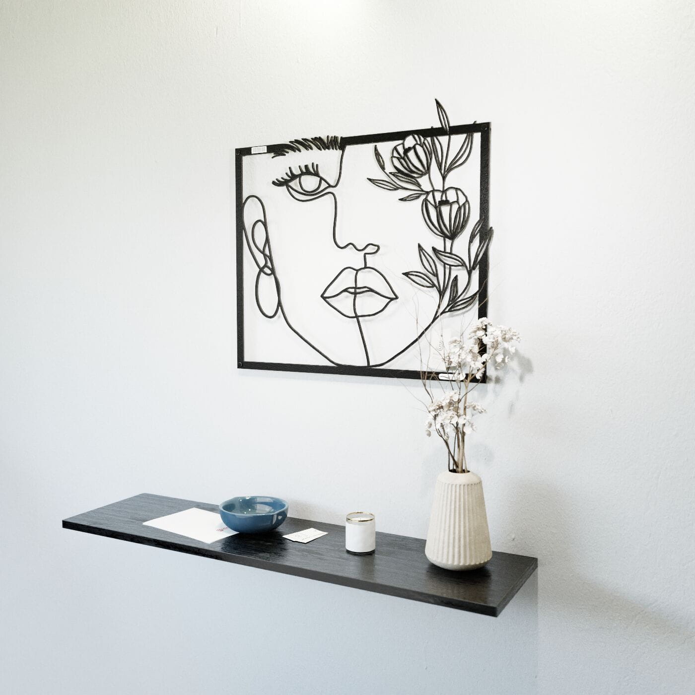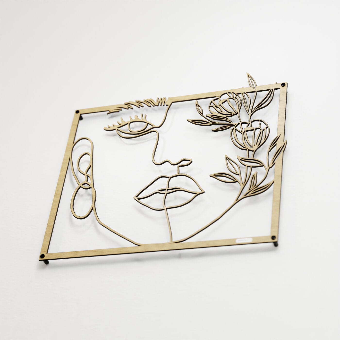 Panel dekoracyjny twarz kobietyTen panel dekoracyjny przedstawiający twarz kobiety o prostych, ażurowych liniach to połączenie elegancji i naturalnych motywów. Wzbogacony o detale kwiatowe, które dodają całości subtelnego wdzięku, stanowi wyjątkową ozdobę na ścianę. Dekoracja ażurowa została zaprojektowana z myślą o wnętrzach, które potrzebują wyjątkowego elementu, nadającego pomieszczeniu unikalny charakter. Panel ten świetnie sprawdzi się w minimalistycznych oraz nowoczesnych aranżacjach, dodając im wyrazistości i delikatnej finezji. Świetnie komponuje się z jasnymi ścianami i naturalnymi materiałami, a także stanowi kontrastowy akcent w ciemniejszych wnętrzach. Można go umieścić w salonie, sypialni czy eleganckim gabinecie, tworząc przestrzeń pełną harmonii i artystycznego wyrazu. Wykonana z najwyższą precyzją techniką cięcia laserowego, dekoracja ścienna zachwyca dokładnością detali oraz solidnym wykonaniem. Materiały użyte do jej produkcji zapewniają trwałość i odporność, a jednocześnie lekkość, która sprawia, że całość wygląda niezwykle subtelnie. Panel można bez trudu zamontować na ścianie, co czyni go łatwym w aranżacji i adaptacji do różnych przestrzeni domowych i biurowych.