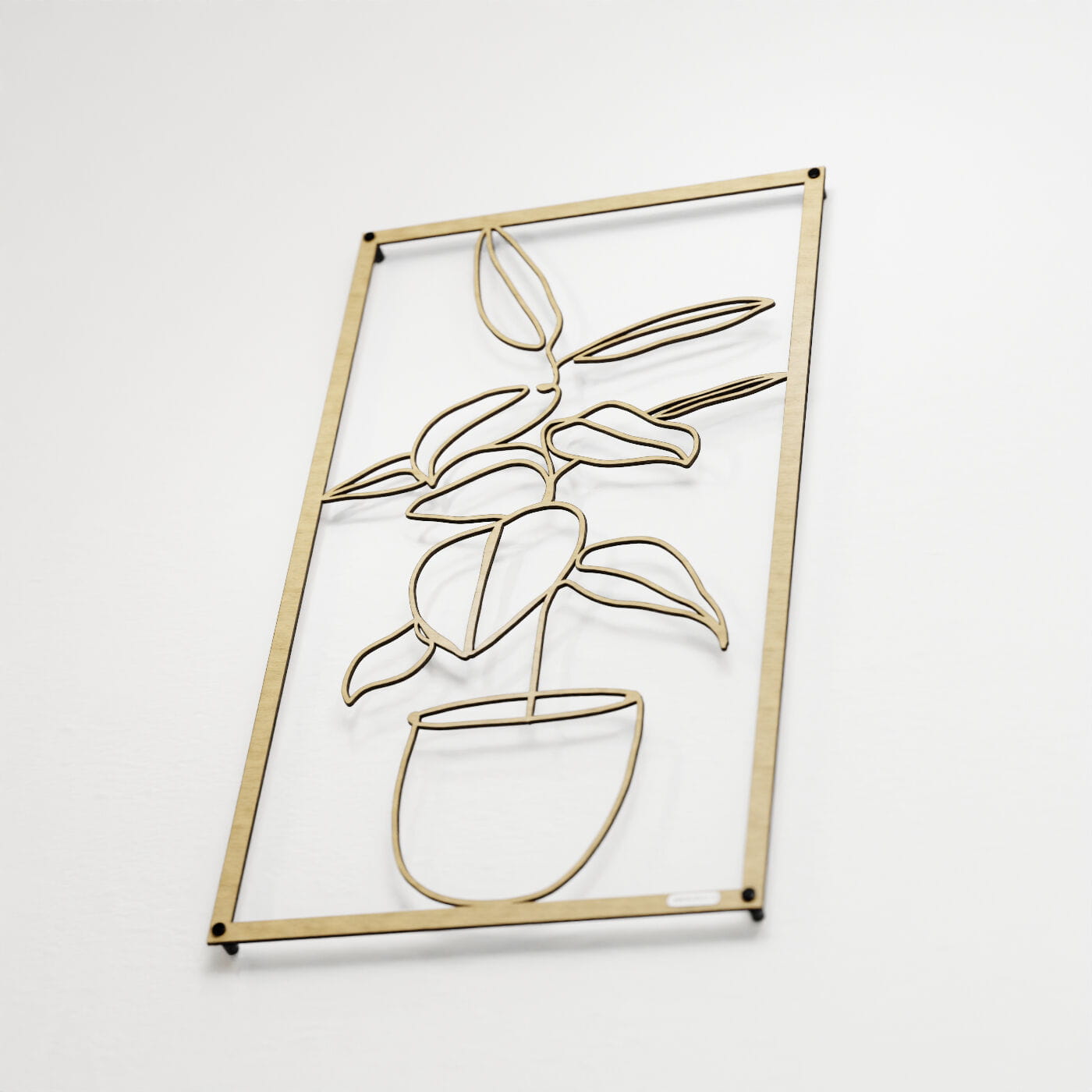 Panel dekoracyjny kwiat w donicyDekoracja ażurowa z motywem rośliny w donicy to elegancki panel ścienny, który doda Twoim wnętrzom naturalnej świeżości. Roślina o szerokich, zaokrąglonych liściach, starannie wycięta w minimalistycznej formie, wyłania się z prostej donicy, tworząc harmonijną kompozycję. Geometryczne kształty liści nadają tej dekoracji nowoczesnego charakteru, który doskonale komponuje się z aranżacjami w stylu skandynawskim i industrialnym. Precyzyjnie wycięte detale sprawiają, że dekoracja ta wyróżnia się delikatnością i trójwymiarowym efektem, co nadaje ścianie głębi i przyciąga wzrok. Idealna do salonu, sypialni lub biura, ozdoba ta świetnie wpasuje się w każde wnętrze, wprowadzając do niego element natury i harmonii. Łatwy montaż umożliwia szybkie odświeżenie wystroju, a panel ścienny z rośliną w donicy to doskonały wybór dla tych, którzy chcą nadać swojej przestrzeni lekkości i oryginalności.