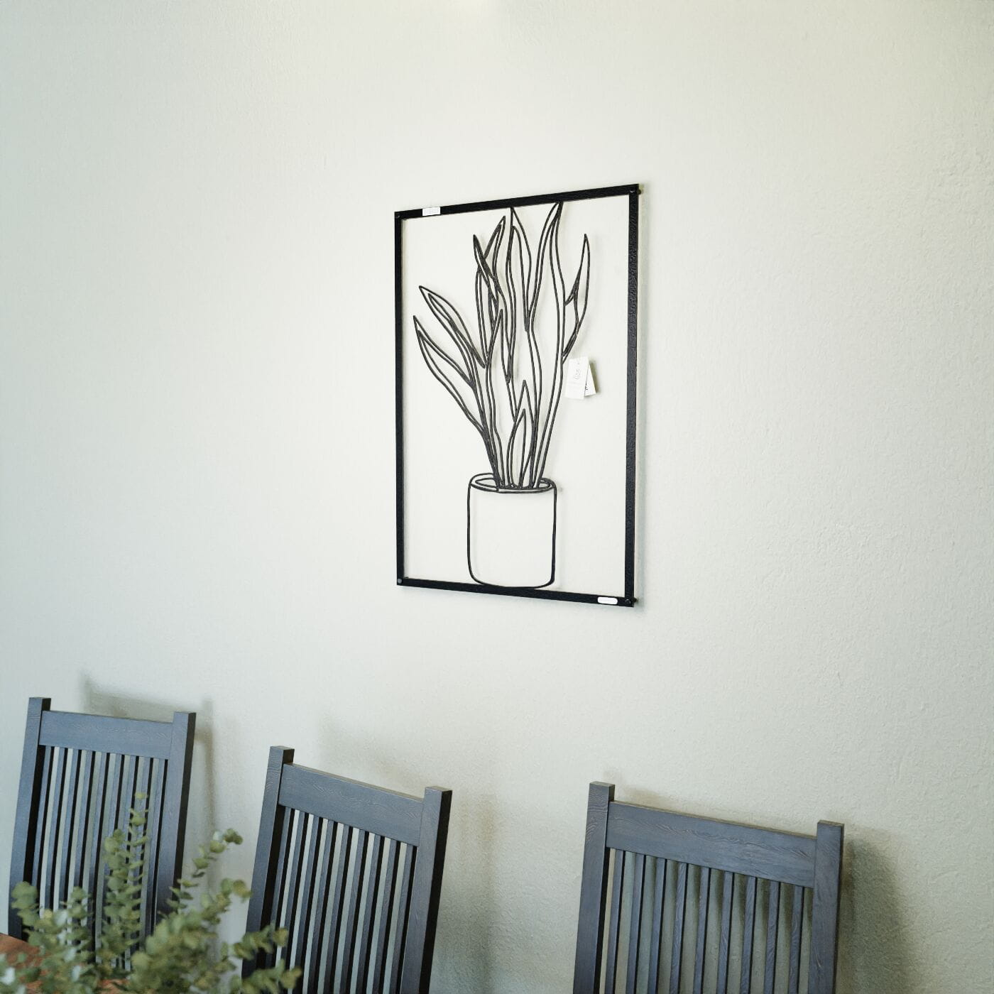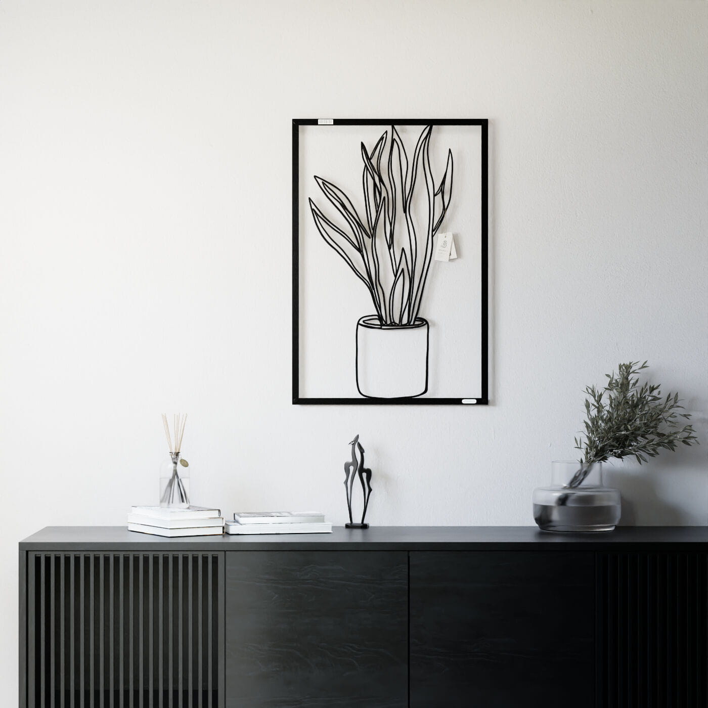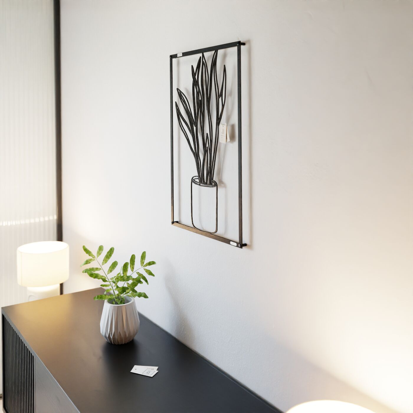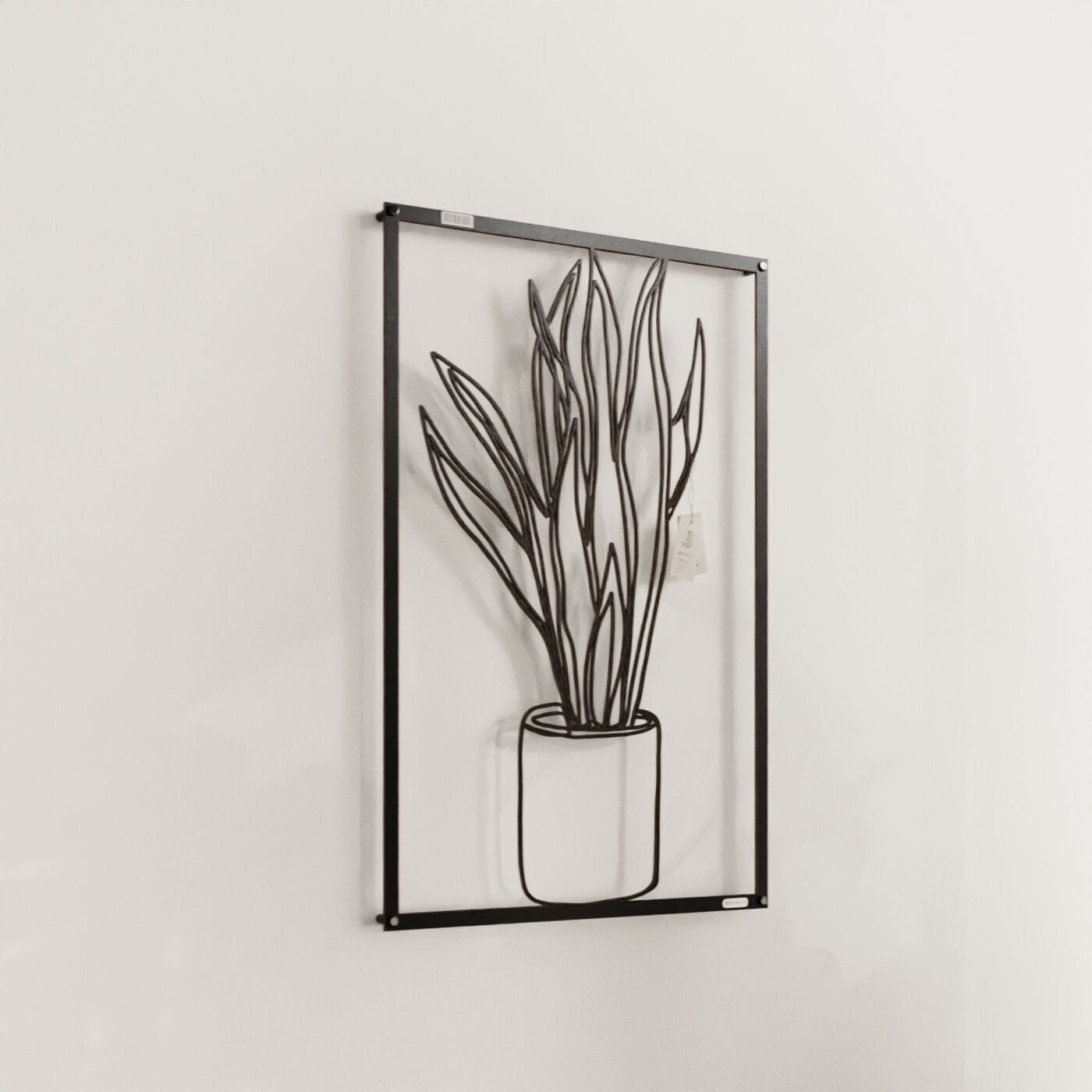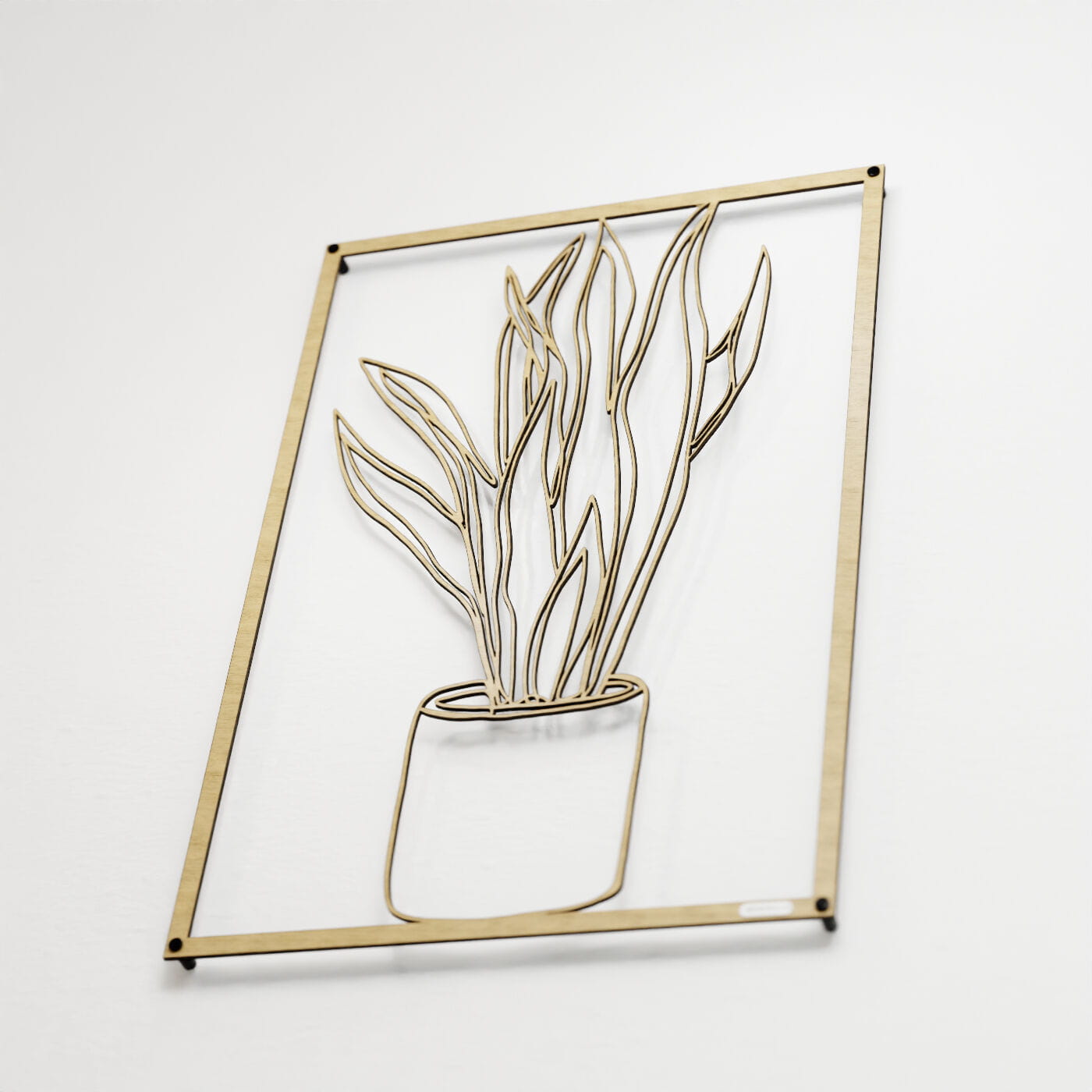 Panel dekoracyjny wężownicaDekoracja ażurowa z motywem sansewierii to nowoczesny panel ścienny, który wprowadzi do wnętrza subtelny akcent natury. Smukłe, strzeliste liście rośliny, znanej jako sansewieria, wyłaniają się z prostokątnej ramy, tworząc efekt przestrzenności i lekkości. Geometryczna donica podkreśla minimalistyczny charakter kompozycji, nadając jej eleganckiego wykończenia. Ta ozdoba na ścianę świetnie sprawdzi się w aranżacjach inspirowanych stylem skandynawskim, loftowym czy eklektycznym. Dzięki precyzyjnemu wycięciu laserowemu, panel ten wyróżnia się wyraźnymi liniami i płynnością formy, co sprawia, że jest nie tylko elementem dekoracyjnym, ale i artystycznym. Łatwy montaż umożliwia szybką zmianę charakteru wnętrza, dodając mu nowoczesnego stylu i naturalnej świeżości. Panel dekoracyjny z sansewierią to doskonały wybór dla osób, które cenią estetyczne i praktyczne rozwiązania w swoich wnętrzach.