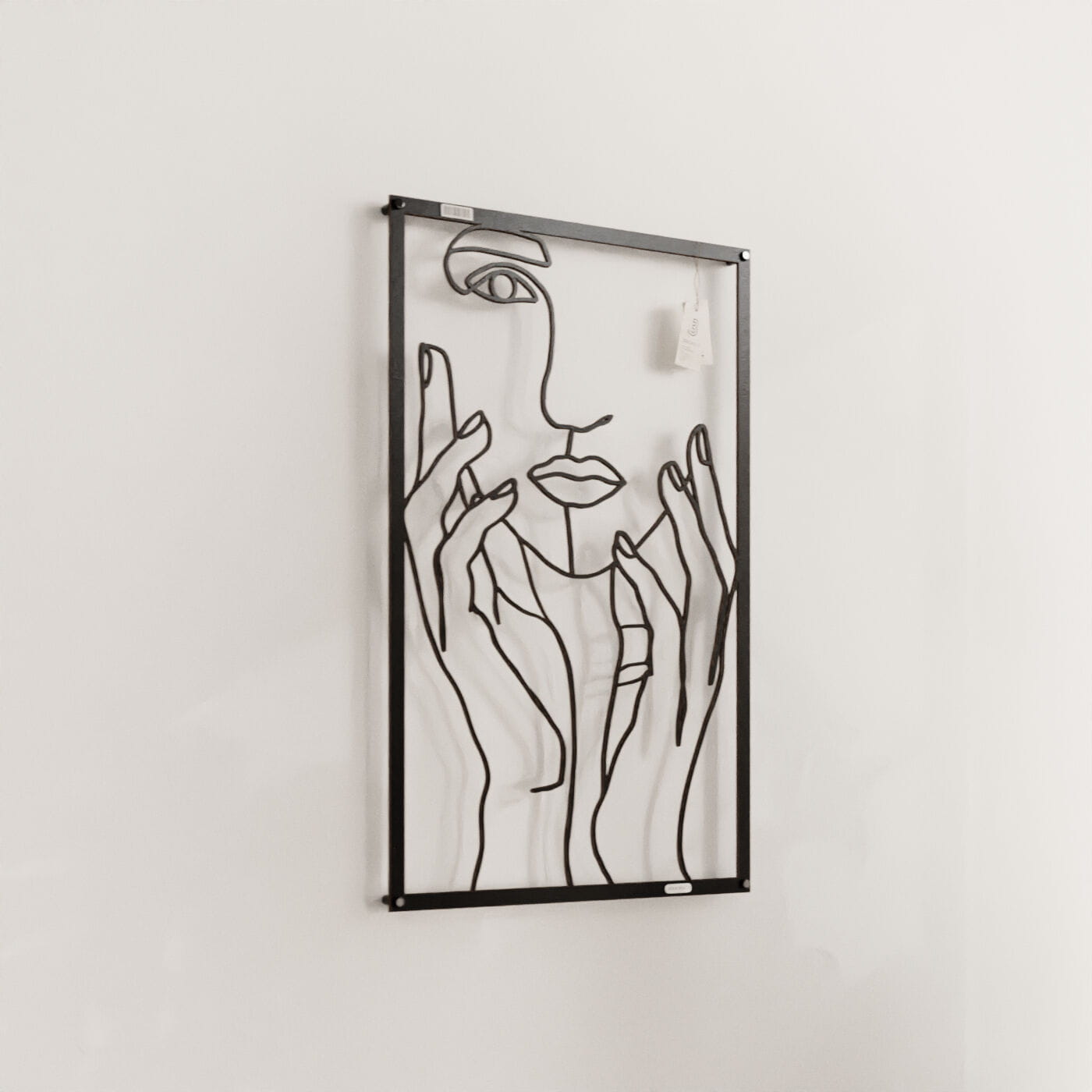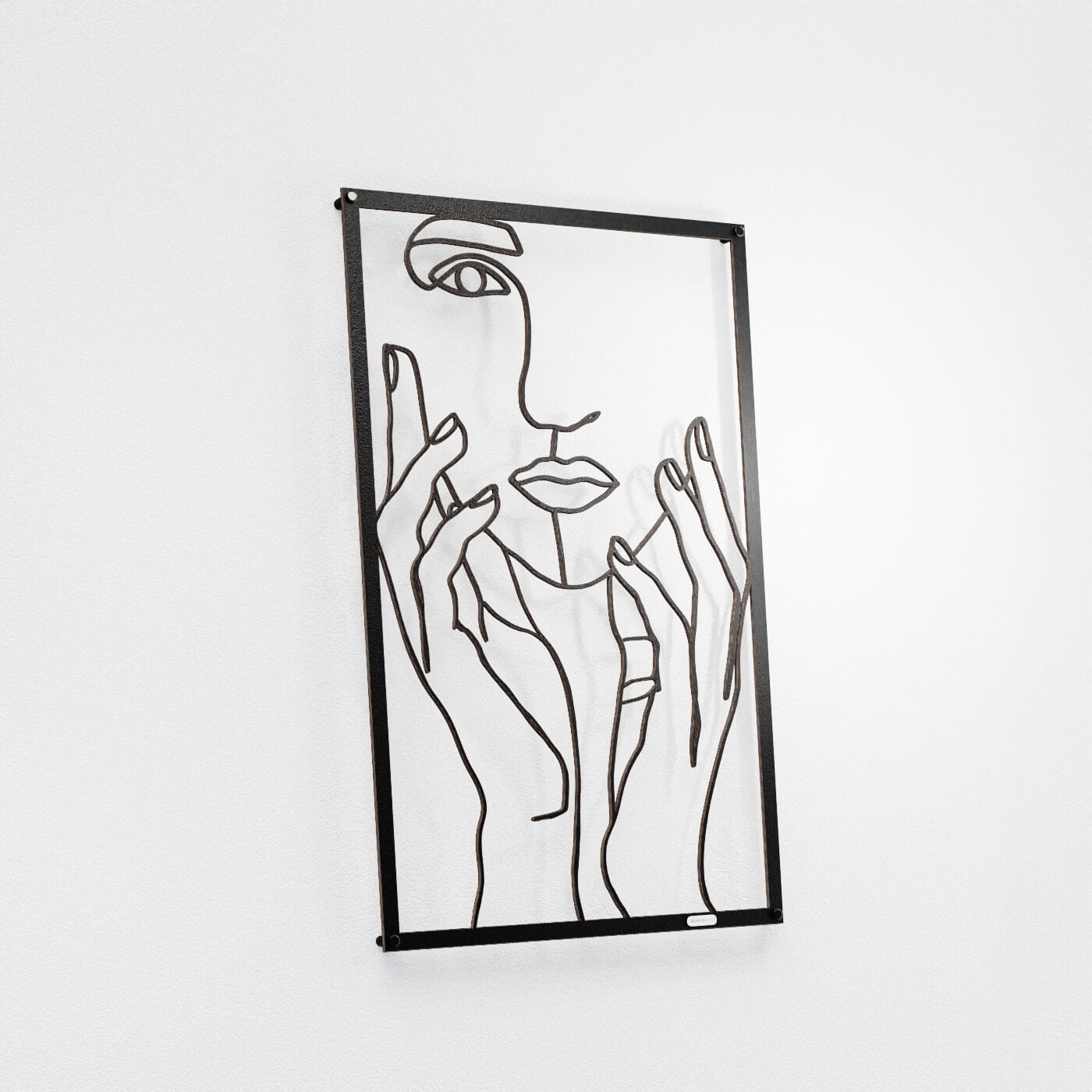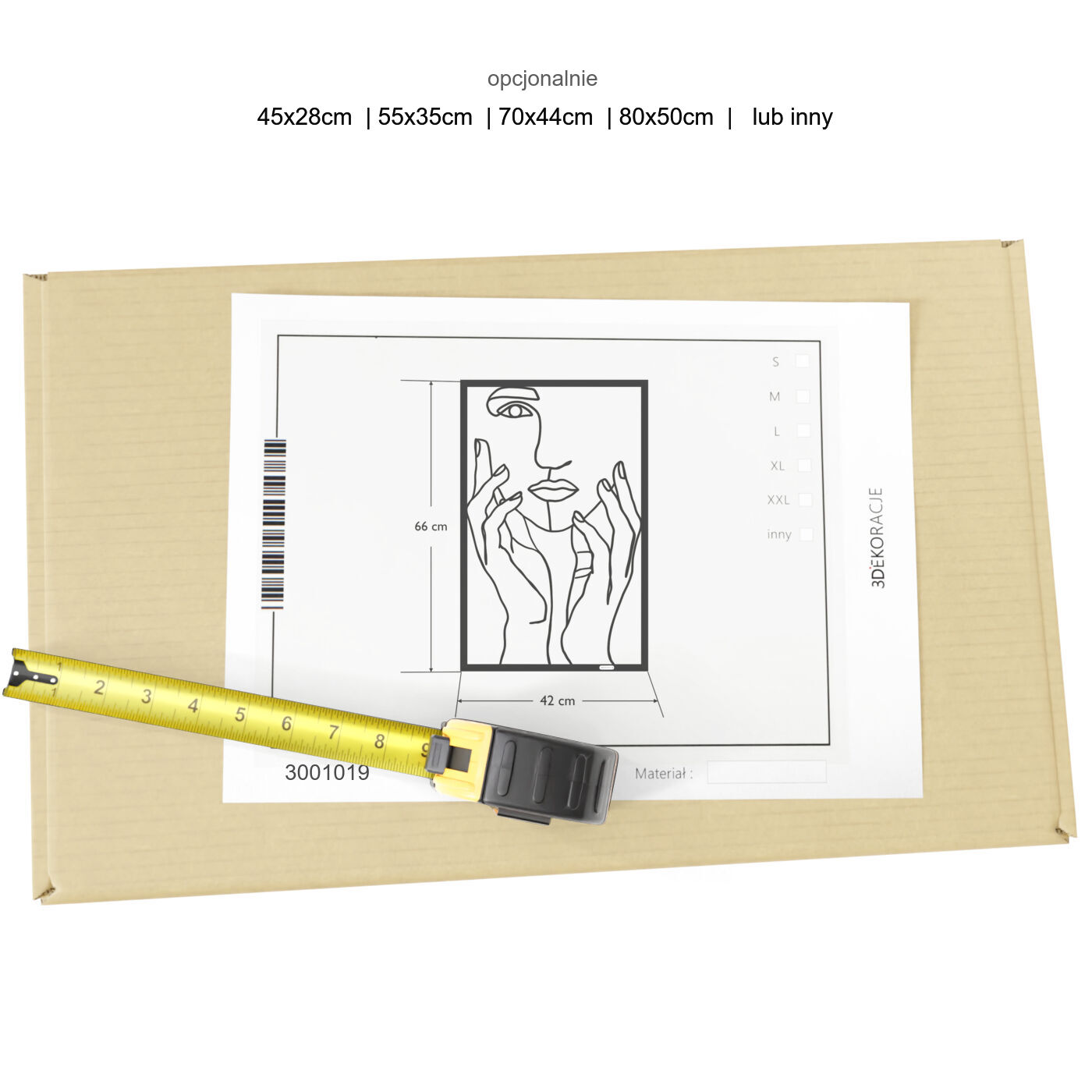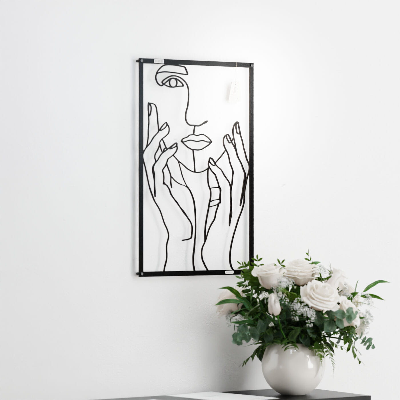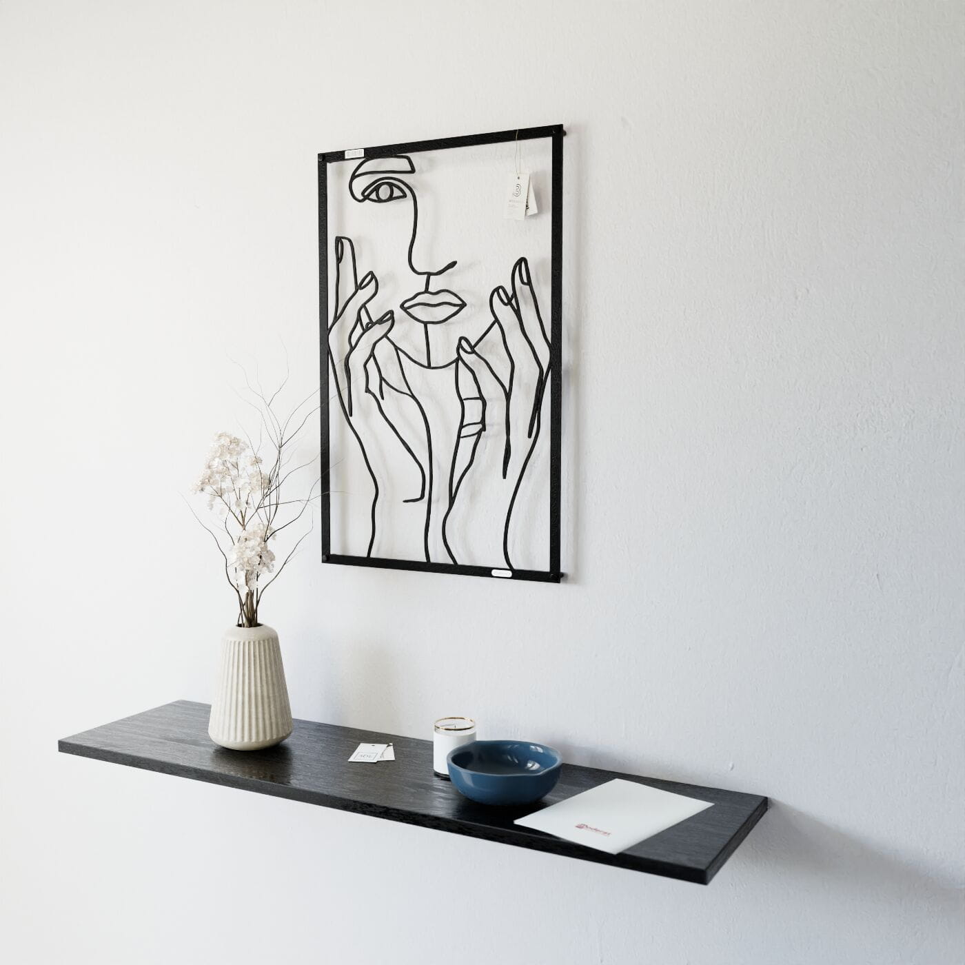 Panel dekoracyjny dłonie kobietyPanel dekoracyjny z twarzą i dłońmi to elegancka ozdoba ścienna, która przyciąga uwagę wyrazistą, a zarazem minimalistyczną kompozycją twarzy kobiety i subtelnie ułożonych dłoni. Precyzyjnie wycięte linie tworzą obraz, który balansuje pomiędzy realizmem a abstrakcją, nadając wnętrzu nowoczesnego charakteru. Gładkie, czarne kontury doskonale kontrastują z jasnym tłem, a efekt trójwymiarowości pogłębiają powstające cienie pod wpływem światła. Ten panel dekoracyjny jest idealnym rozwiązaniem do nowoczesnych wnętrz, w których dominuje minimalistyczny lub industrialny styl. Jego wyrazista forma świetnie komponuje się zarówno z jasnymi, jak i ciemnymi aranżacjami. Doskonale sprawdzi się w salonie, sypialni lub przedpokoju, nadając przestrzeni unikalnego i artystycznego akcentu. To propozycja dla tych, którzy cenią nowoczesną sztukę i chcą wprowadzić do swojego domu element wyrazistej elegancji.