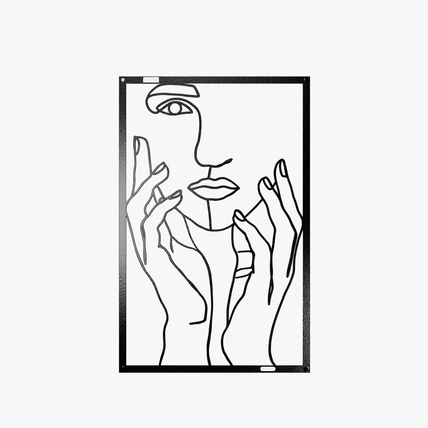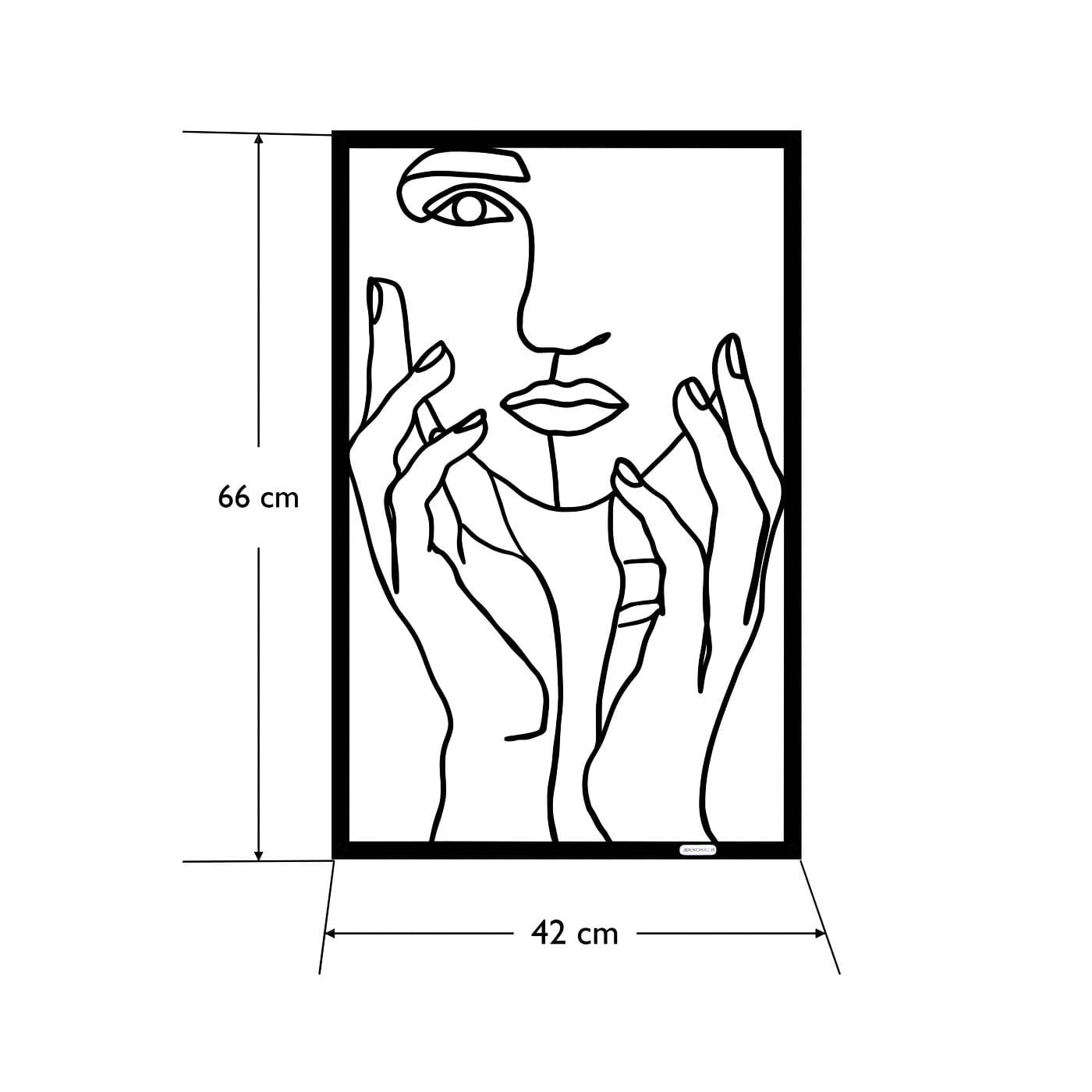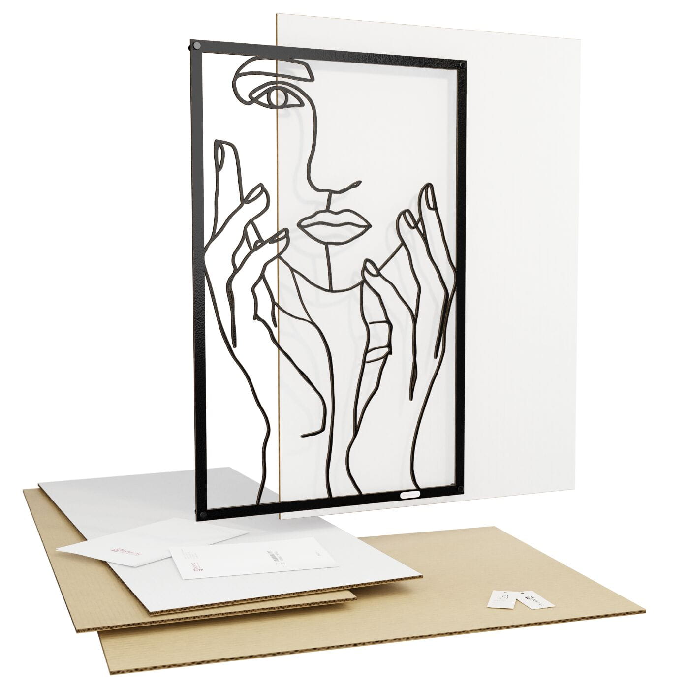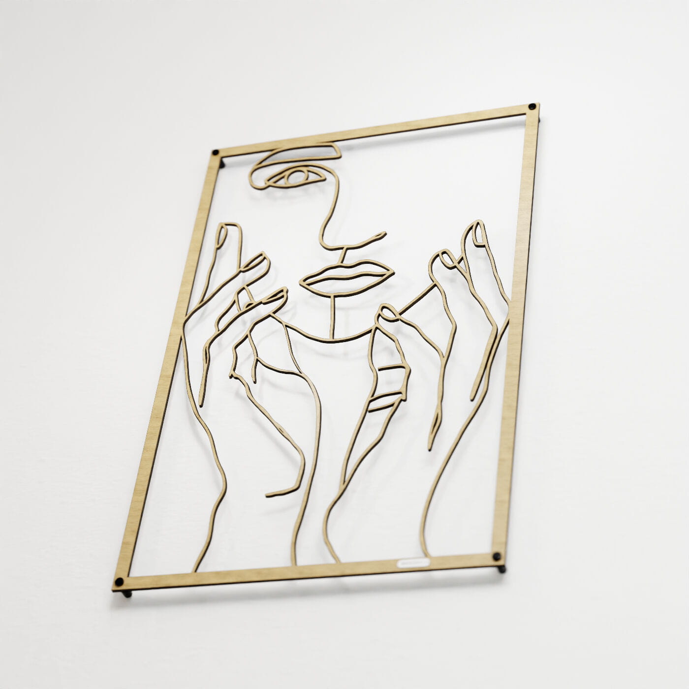 Panel dekoracyjny dłonie kobietyPanel dekoracyjny z twarzą i dłońmi to elegancka ozdoba ścienna, która przyciąga uwagę wyrazistą, a zarazem minimalistyczną kompozycją twarzy kobiety i subtelnie ułożonych dłoni. Precyzyjnie wycięte linie tworzą obraz, który balansuje pomiędzy realizmem a abstrakcją, nadając wnętrzu nowoczesnego charakteru. Gładkie, czarne kontury doskonale kontrastują z jasnym tłem, a efekt trójwymiarowości pogłębiają powstające cienie pod wpływem światła. Ten panel dekoracyjny jest idealnym rozwiązaniem do nowoczesnych wnętrz, w których dominuje minimalistyczny lub industrialny styl. Jego wyrazista forma świetnie komponuje się zarówno z jasnymi, jak i ciemnymi aranżacjami. Doskonale sprawdzi się w salonie, sypialni lub przedpokoju, nadając przestrzeni unikalnego i artystycznego akcentu. To propozycja dla tych, którzy cenią nowoczesną sztukę i chcą wprowadzić do swojego domu element wyrazistej elegancji.