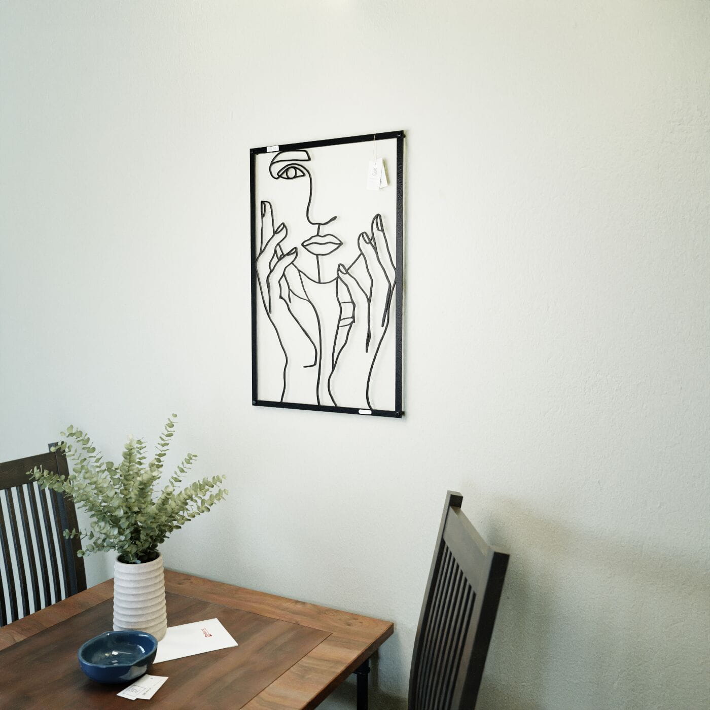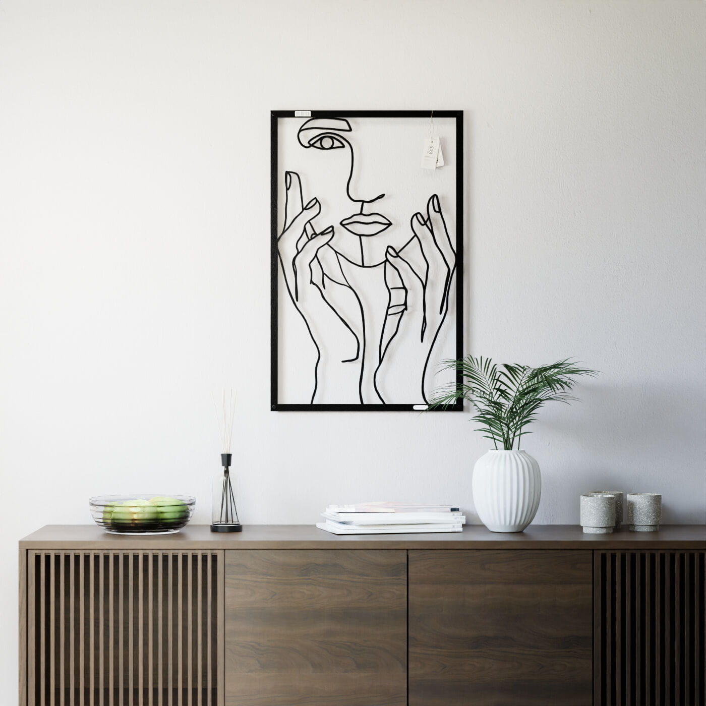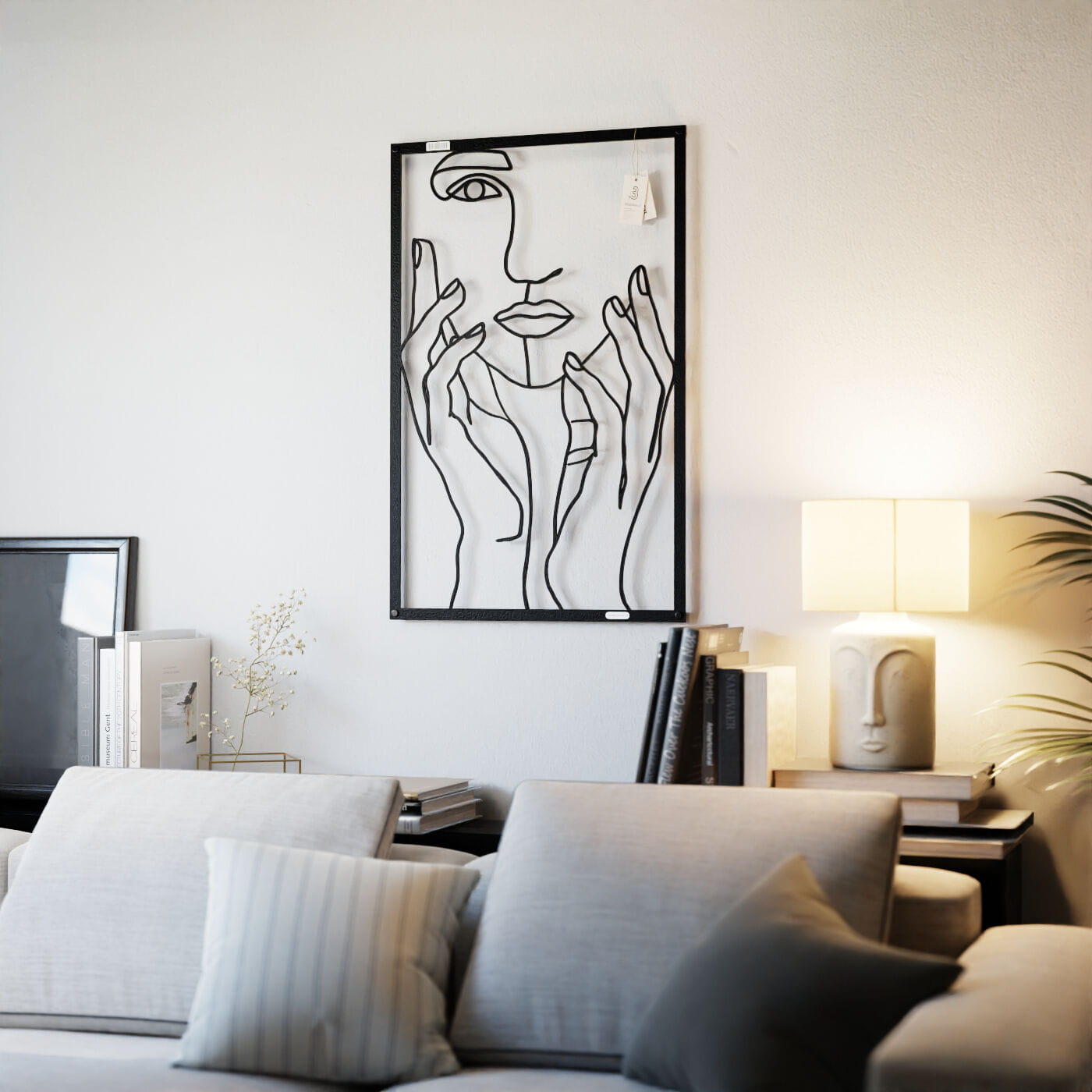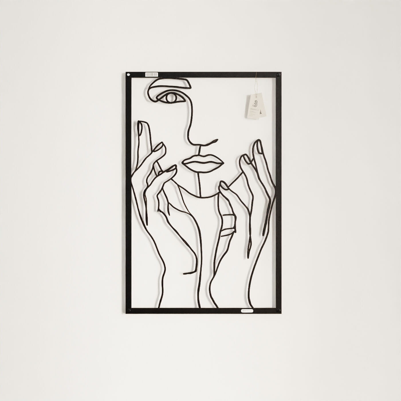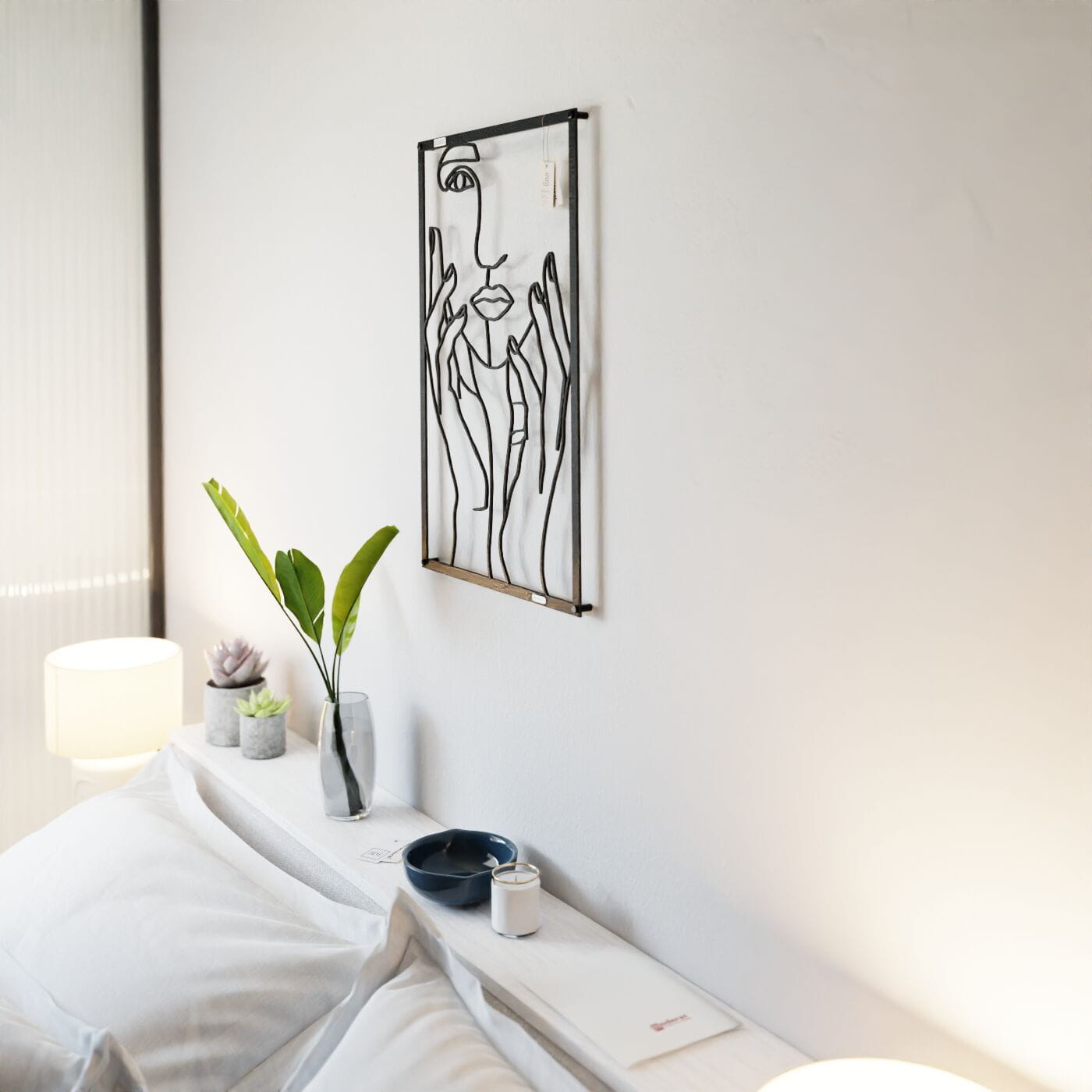 Panel dekoracyjny dłonie kobietyPanel dekoracyjny z twarzą i dłońmi to elegancka ozdoba ścienna, która przyciąga uwagę wyrazistą, a zarazem minimalistyczną kompozycją twarzy kobiety i subtelnie ułożonych dłoni. Precyzyjnie wycięte linie tworzą obraz, który balansuje pomiędzy realizmem a abstrakcją, nadając wnętrzu nowoczesnego charakteru. Gładkie, czarne kontury doskonale kontrastują z jasnym tłem, a efekt trójwymiarowości pogłębiają powstające cienie pod wpływem światła. Ten panel dekoracyjny jest idealnym rozwiązaniem do nowoczesnych wnętrz, w których dominuje minimalistyczny lub industrialny styl. Jego wyrazista forma świetnie komponuje się zarówno z jasnymi, jak i ciemnymi aranżacjami. Doskonale sprawdzi się w salonie, sypialni lub przedpokoju, nadając przestrzeni unikalnego i artystycznego akcentu. To propozycja dla tych, którzy cenią nowoczesną sztukę i chcą wprowadzić do swojego domu element wyrazistej elegancji.