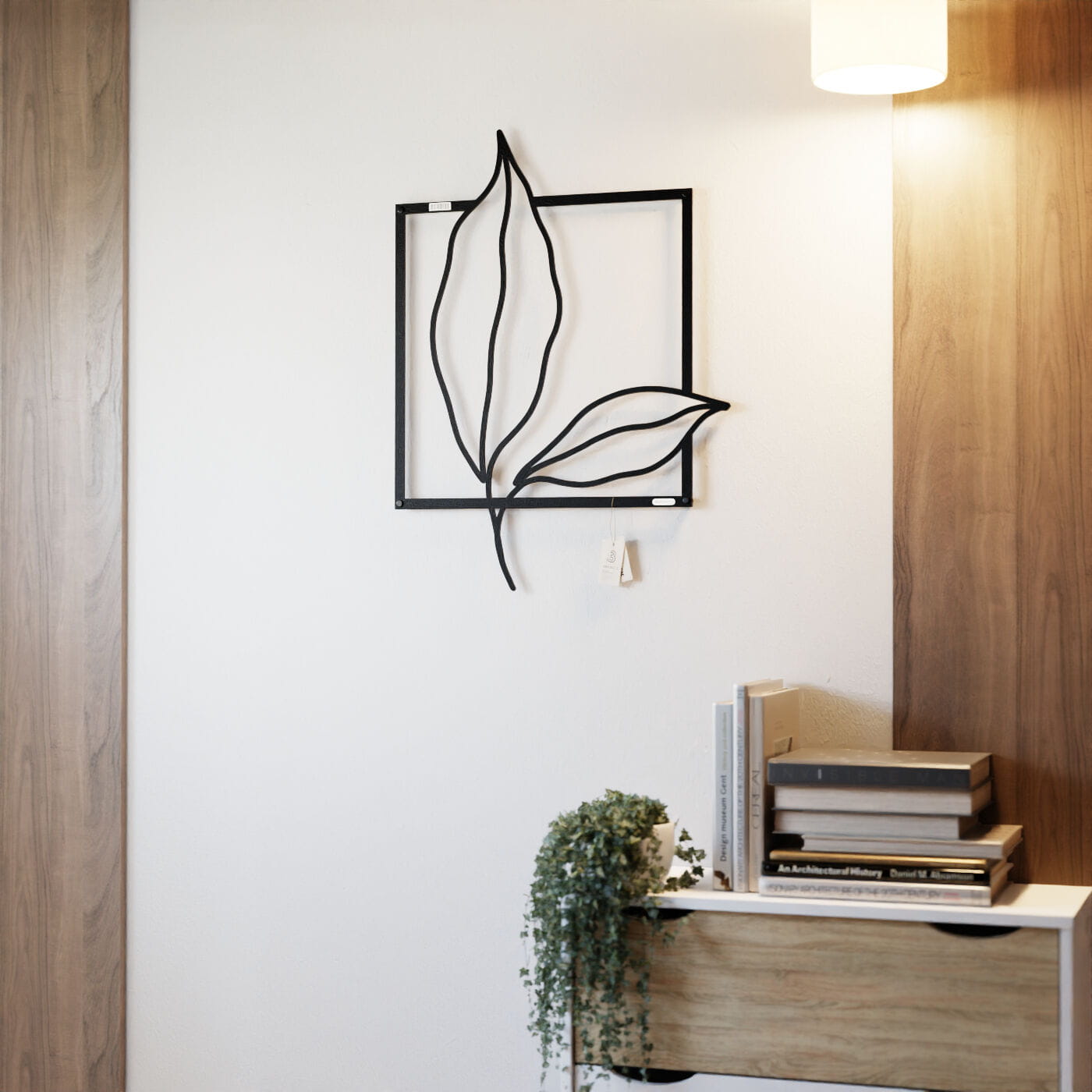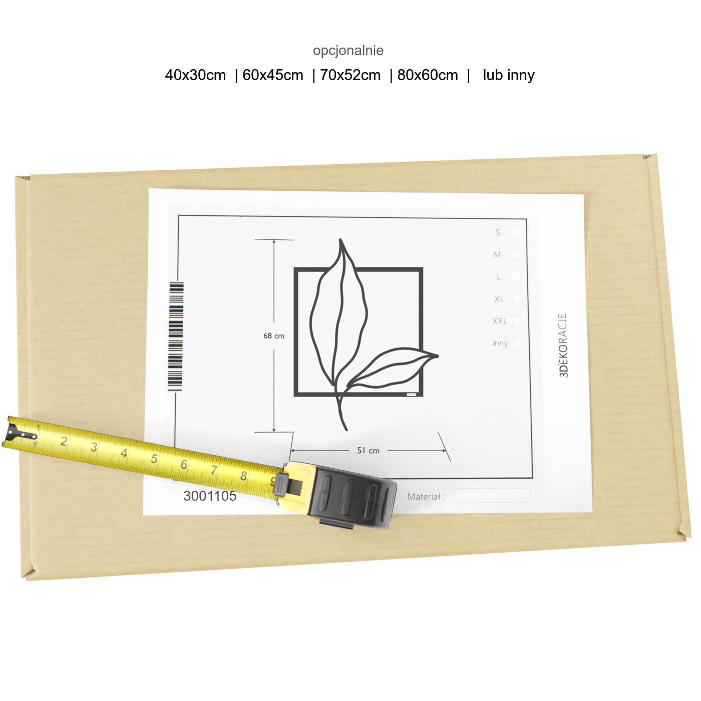Panel dekoracyjny dwa liściePrzestrzenny ażurowy panel 3D - minimalistyczna kompozycja, która łączy dwa delikatnie falujące liście, umieszczone w eleganckiej, prostokątnej ramie. Jeden z liści wychodzi lekko poza ramę, nadając całej dekoracji nowoczesnego i dynamicznego charakteru. Prostota formy sprawia, że ozdoba jest subtelna, ale przyciągająca wzrok. Taki panel ścienny doskonale sprawdzi się jako ozdoba na ścianę w różnych pomieszczeniach – zarówno w salonie, sypialni, jak i w biurze, wprowadzając element natury w nowoczesnej interpretacji. Możliwość łączenia z innymi dekoracjami pozwala na stworzenie niepowtarzalnej aranżacji. Wykonana z dbałością o szczegóły dekoracja ażurowa została wycięta laserem, co zapewnia jej precyzyjne wykończenie i trwałość. Ozdoba ta z łatwością wkomponuje się w różne style wnętrz, dodając im lekkości i naturalnego uroku.