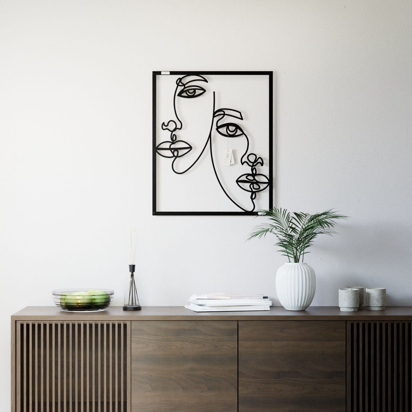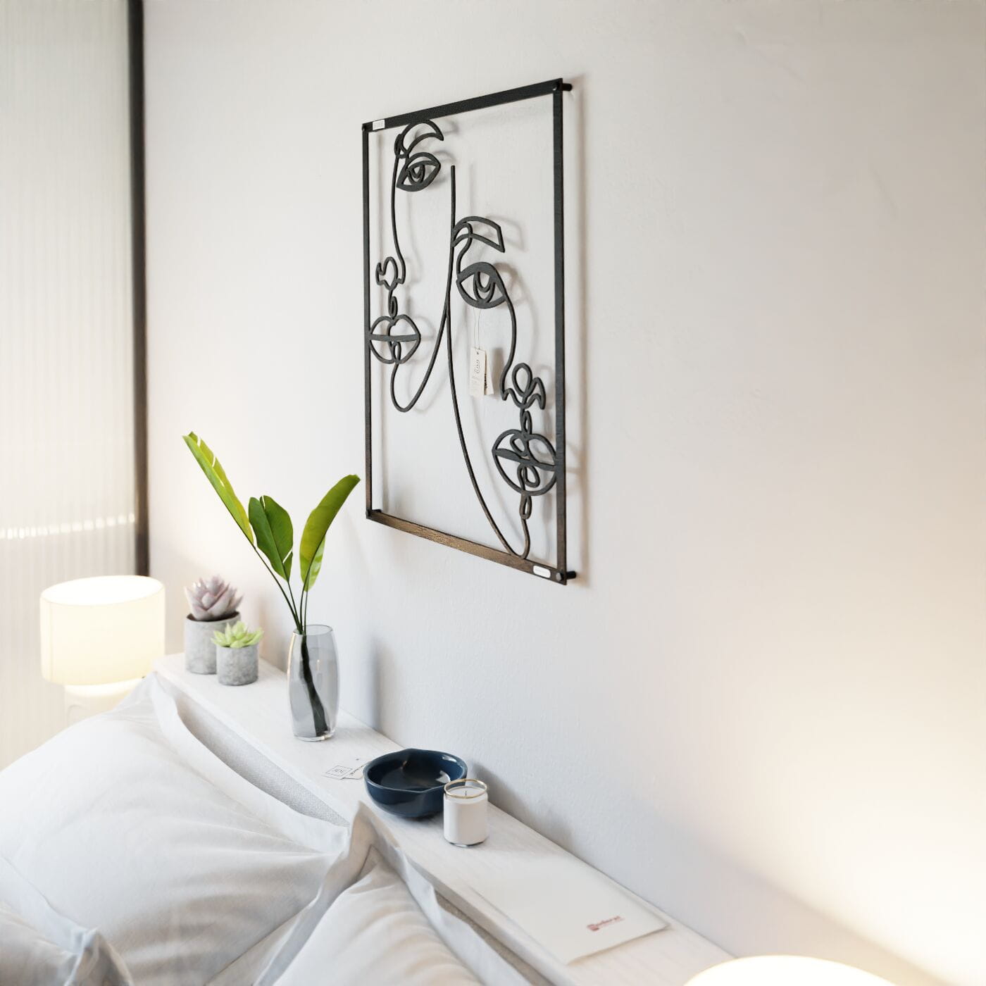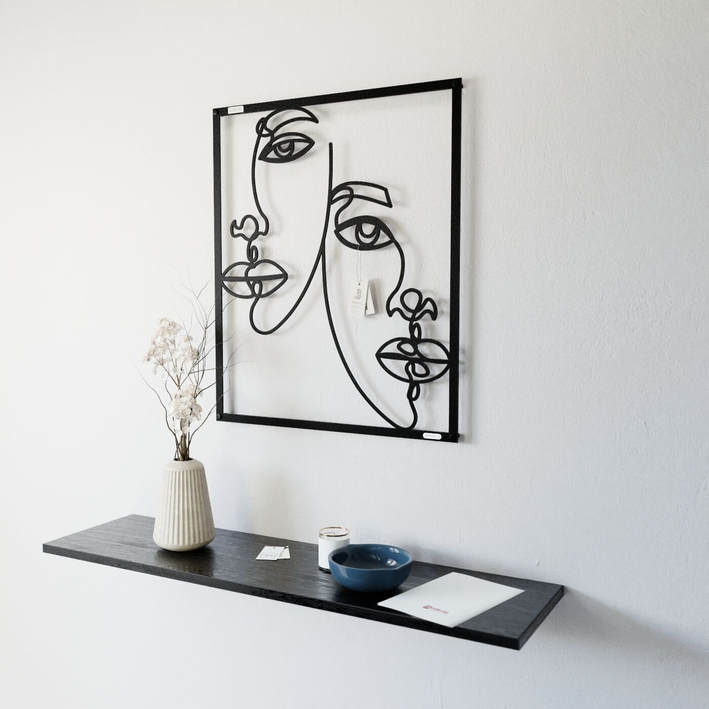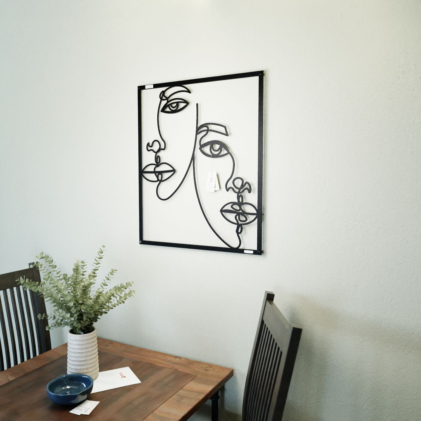 Panel dekoracyjny dwie postaciPanel dekoracyjny "Dwie Postaci" to nowoczesna ozdoba na ścianę, która wyróżnia się minimalistycznym designem i artystycznym wyrazem. Precyzyjnie wykonane kontury dwóch postaci, wykonane z czarnej płyty, tworzą subtelną grę kształtów i przestrzeni. Każda linia została zaprojektowana tak, aby wprowadzić harmonię między figurami, tworząc estetyczną całość, która przyciąga wzrok. Ten panel ścienny doskonale komponuje się w przestrzeniach o nowoczesnym charakterze, a także tych urządzonych w stylu minimalistycznym czy industrialnym. Jego prostota i jednocześnie wyrazistość sprawiają, że idealnie pasuje do wnętrz takich jak salon, sypialnia, a nawet biuro. Może stać się głównym elementem dekoracyjnym, dodając przestrzeni unikalnego, artystycznego klimatu. Dekoracja jest lekka, łatwa do montażu, co umożliwia szybkie wprowadzenie do wnętrza elegancji i nowoczesności. Świetnie prezentuje się na jasnym tle, a jej czarne kontury tworzą efektowny kontrast, który nadaje przestrzeni głębi i charakteru. Panel dekoracyjny "Dwie Postaci" to idealny wybór dla osób poszukujących oryginalnych, ale jednocześnie subtelnych rozwiązań dekoracyjnych.