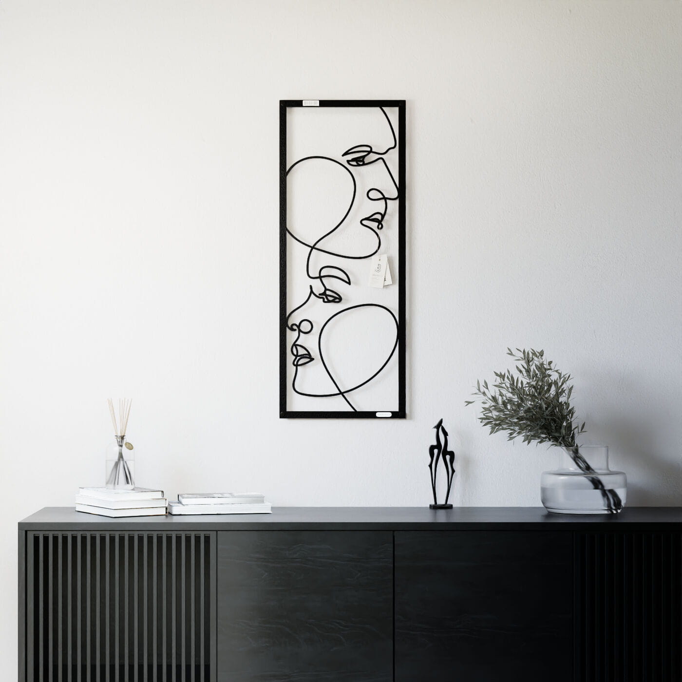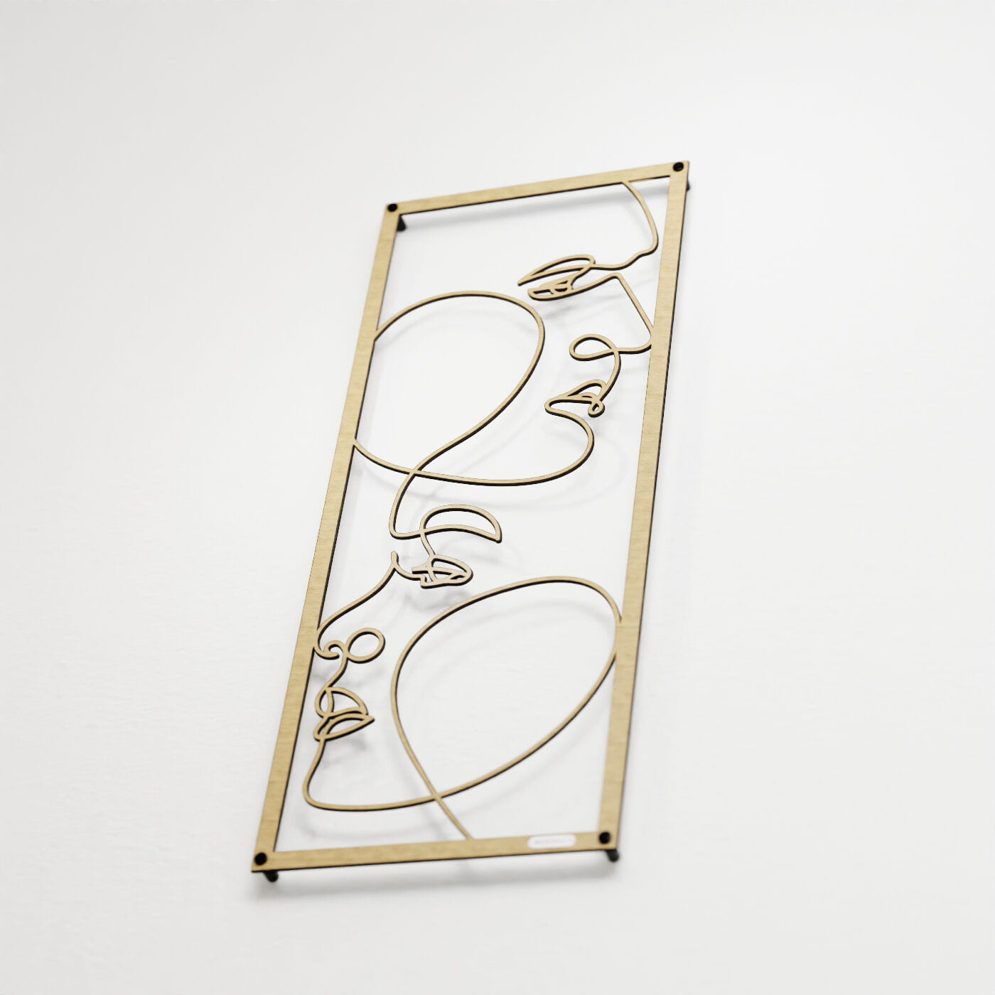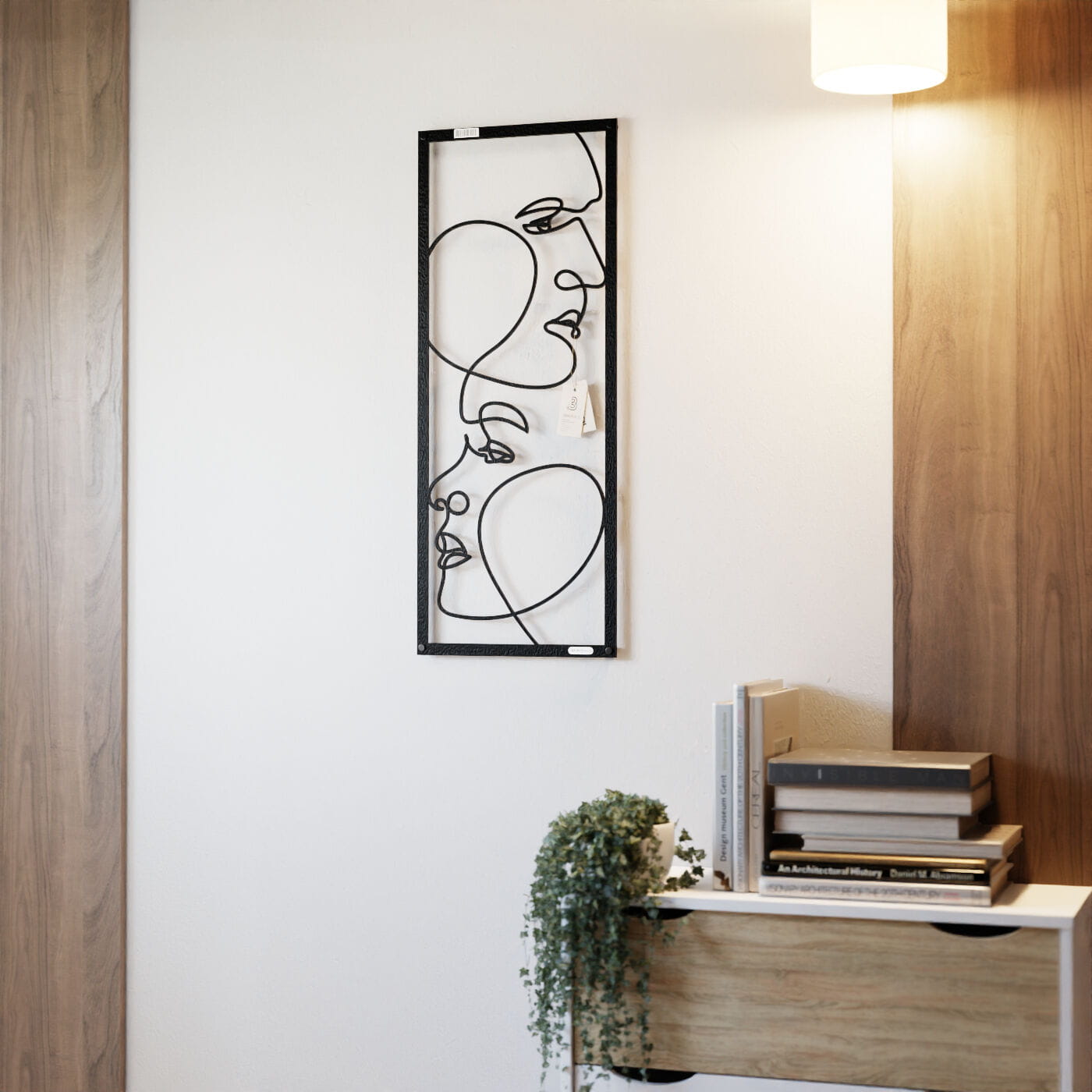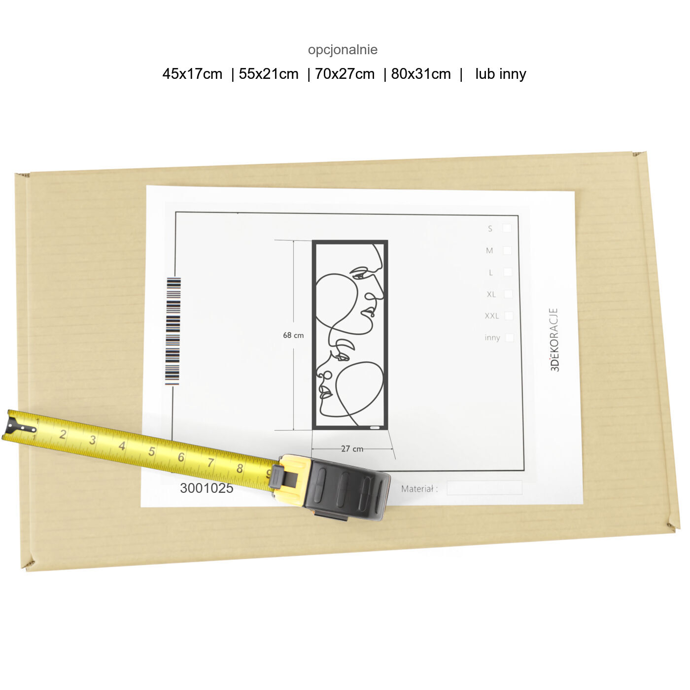 Panel dekoracyjny dwie twarzePanel dekoracyjny "Dwie Twarze" to minimalistyczna i nowoczesna ozdoba na ścianę, która wprowadza artystyczny akcent do każdego wnętrza. Precyzyjnie wycięte czarne linie układają się w abstrakcyjne sylwetki dwóch twarzy, tworząc subtelną grę form i przestrzeni. Panel ten stanowi doskonały przykład współczesnego designu, który łączy prostotę z wyrazistością, co sprawia, że przyciąga wzrok i nadaje pomieszczeniu unikalny charakter. Wykonany z najwyższą starannością, panel ścienny doskonale pasuje do różnorodnych aranżacji – od nowoczesnych po bardziej klasyczne. Jego geometryczny, a jednocześnie organiczny kształt idealnie komponuje się z wnętrzami o stonowanych barwach, w których może stanowić centralny punkt dekoracyjny. Ozdoba ta sprawdzi się w salonie, sypialni, gabinecie czy nawet w kawiarniach i restauracjach, gdzie minimalistyczne motywy ożywią przestrzeń. Panel jest lekki i łatwy w montażu, a jego ponadczasowy design będzie pasował do różnych stylów wnętrzarskich, wprowadzając element sztuki i elegancji do każdej przestrzeni.