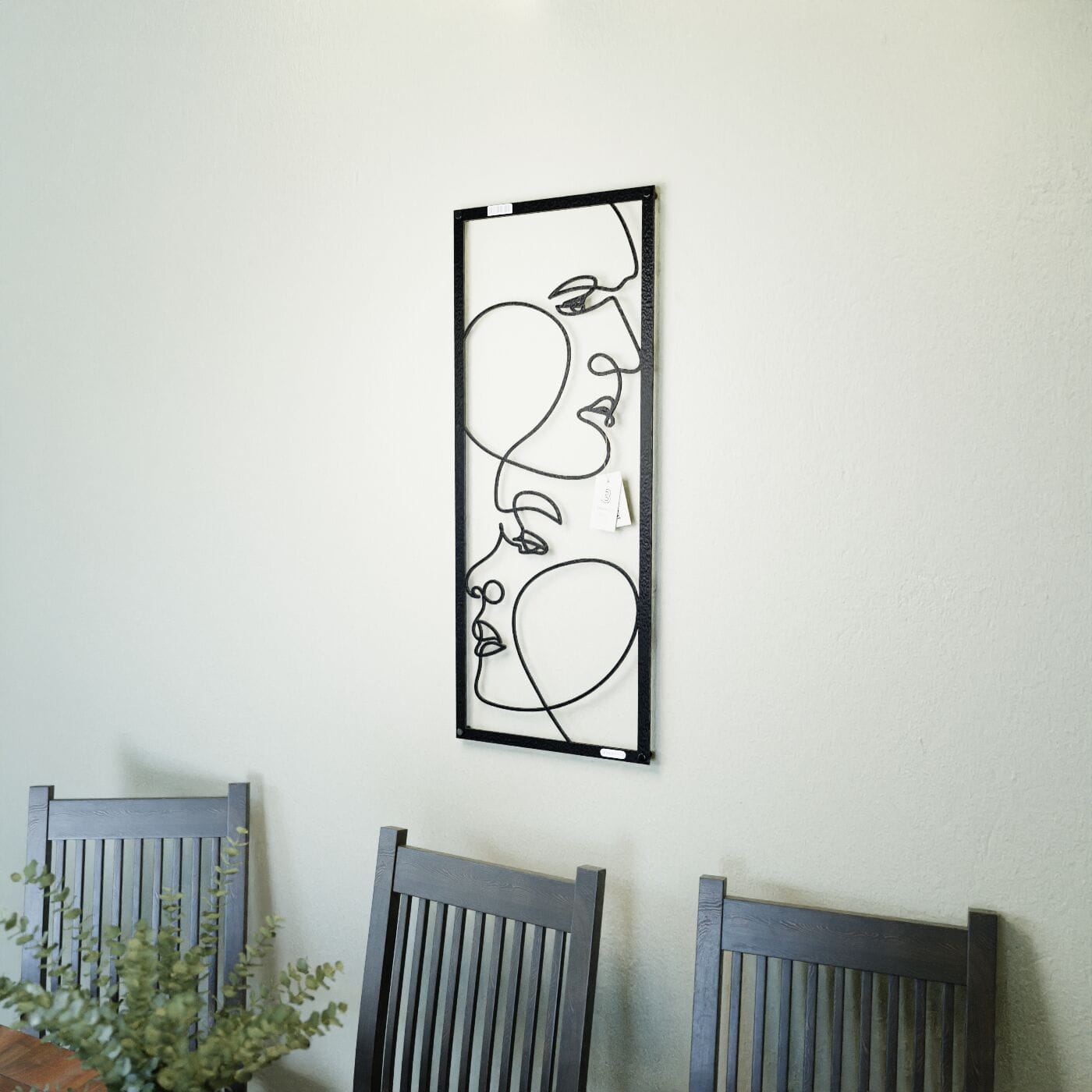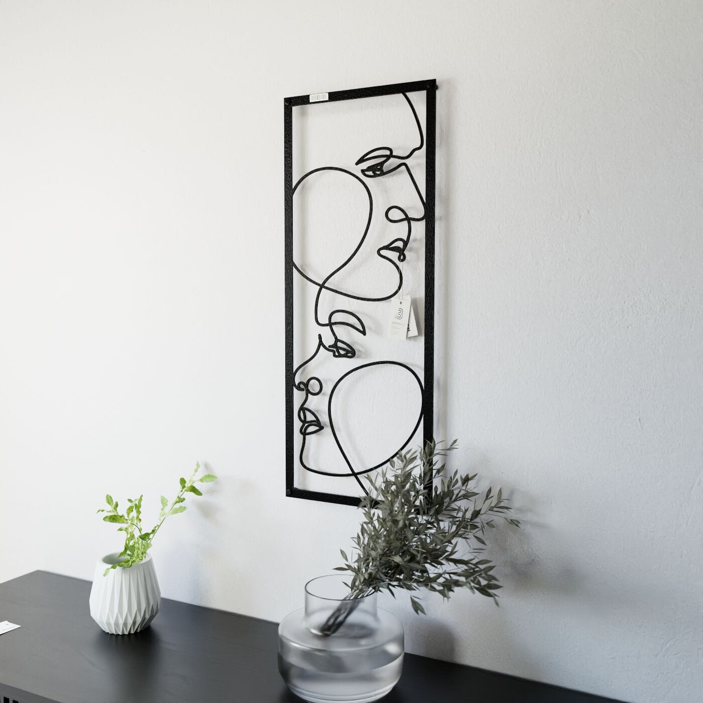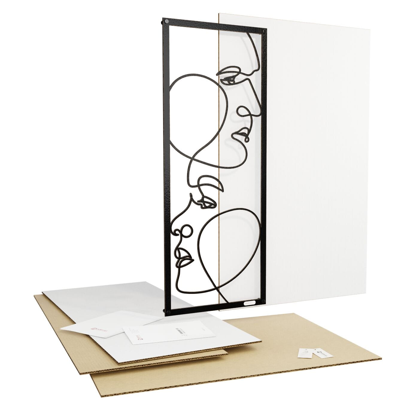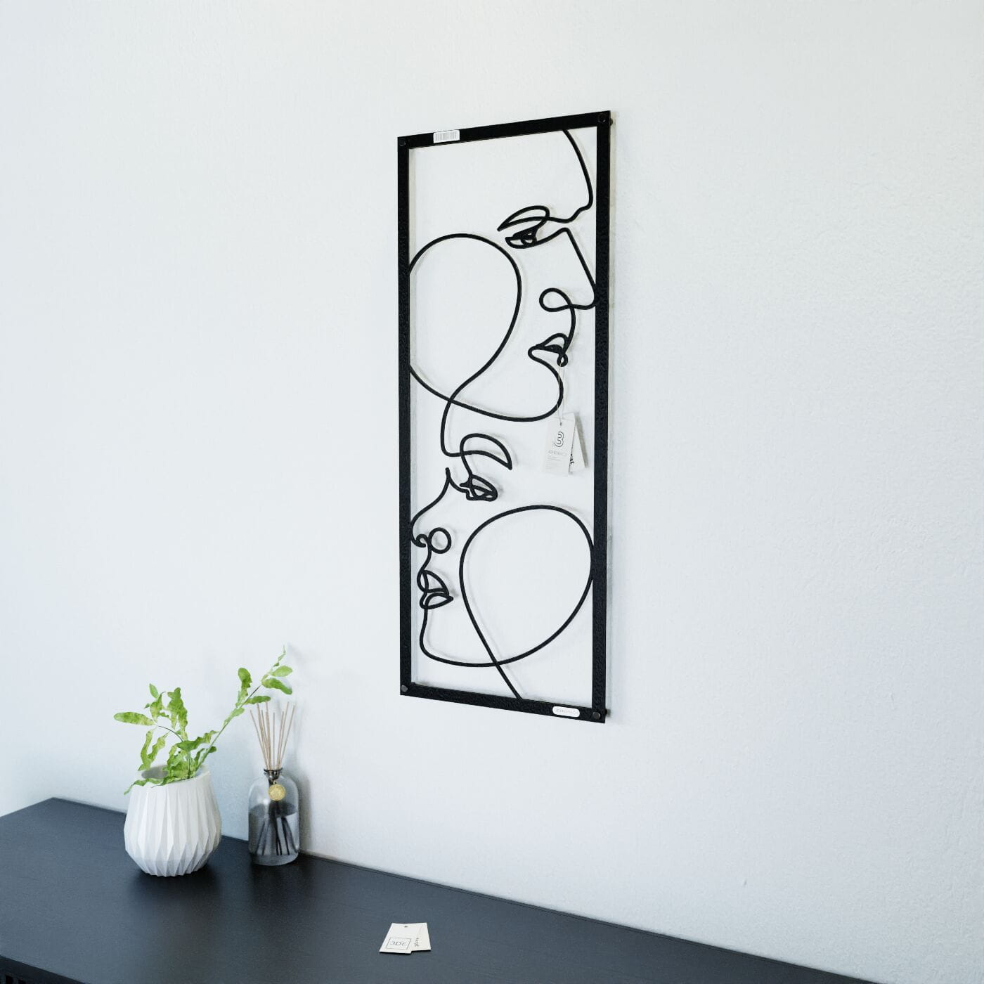 Panel dekoracyjny dwie twarzePanel dekoracyjny "Dwie Twarze" to minimalistyczna i nowoczesna ozdoba na ścianę, która wprowadza artystyczny akcent do każdego wnętrza. Precyzyjnie wycięte czarne linie układają się w abstrakcyjne sylwetki dwóch twarzy, tworząc subtelną grę form i przestrzeni. Panel ten stanowi doskonały przykład współczesnego designu, który łączy prostotę z wyrazistością, co sprawia, że przyciąga wzrok i nadaje pomieszczeniu unikalny charakter. Wykonany z najwyższą starannością, panel ścienny doskonale pasuje do różnorodnych aranżacji – od nowoczesnych po bardziej klasyczne. Jego geometryczny, a jednocześnie organiczny kształt idealnie komponuje się z wnętrzami o stonowanych barwach, w których może stanowić centralny punkt dekoracyjny. Ozdoba ta sprawdzi się w salonie, sypialni, gabinecie czy nawet w kawiarniach i restauracjach, gdzie minimalistyczne motywy ożywią przestrzeń. Panel jest lekki i łatwy w montażu, a jego ponadczasowy design będzie pasował do różnych stylów wnętrzarskich, wprowadzając element sztuki i elegancji do każdej przestrzeni.
