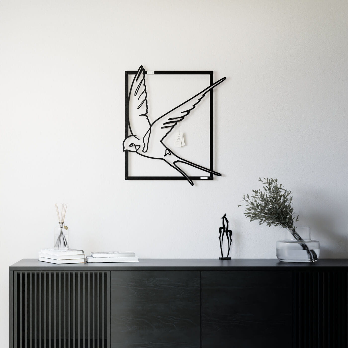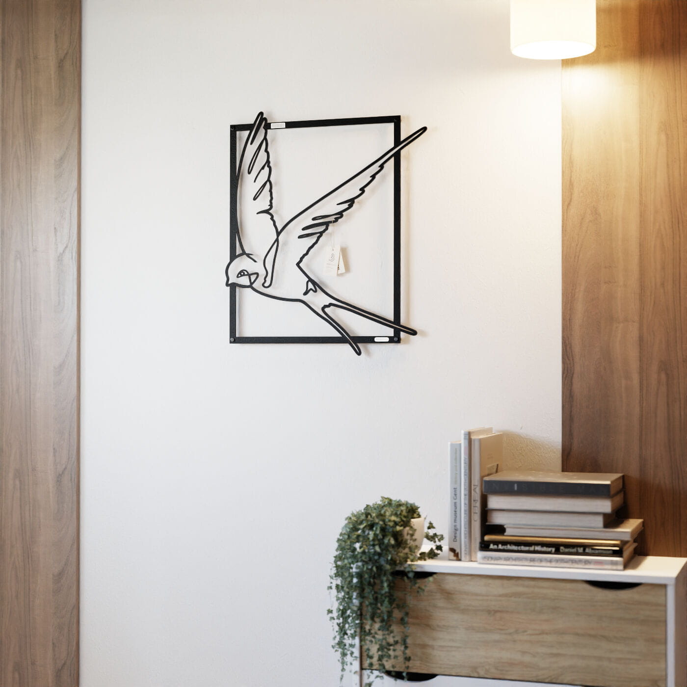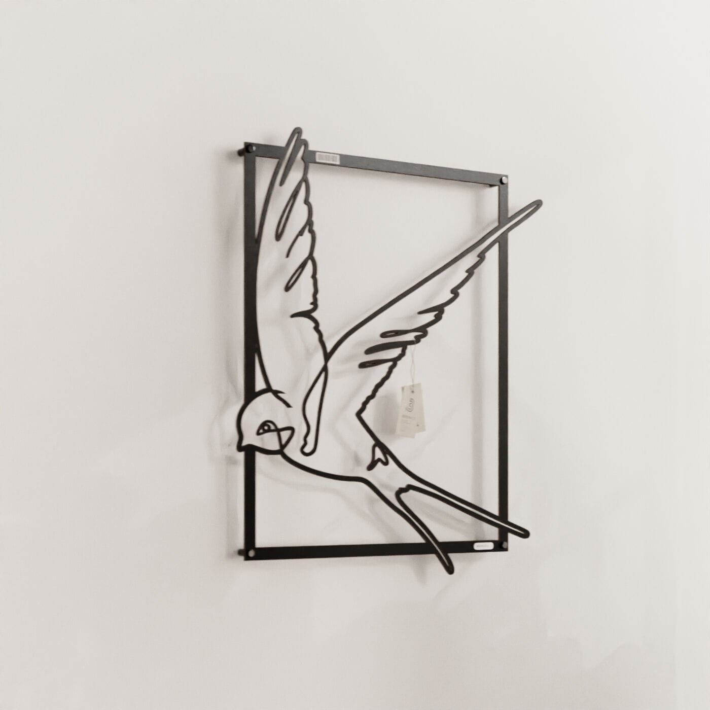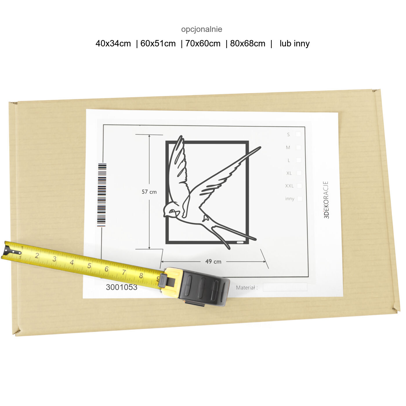 Panel dekoracyjny ptakDekoracja ażurowa "Lecący ptak" to dynamiczny panel ścienny, który wprowadza do wnętrza wrażenie ruchu i wolności. Elegancka sylwetka ptaka w locie, precyzyjnie wycięta w minimalistycznym stylu, tworzy efekt trójwymiarowości i głębi, nadając ścianie oryginalny charakter. To wyjątkowa ozdoba na ścianę, która idealnie sprawdzi się w każdym pomieszczeniu, dodając mu lekkości i harmonii. Detale skrzydeł oraz sylwetki ptaka zostały starannie odwzorowane, co czyni tę dekorację wyjątkową i przyciągającą uwagę. Panel ten doskonale pasuje do wnętrz o różnych stylach, wprowadzając do nich element natury w subtelny, ale wyrazisty sposób. Idealny do salonu, sypialni lub biura. Lekka konstrukcja panelu ułatwia jego montaż, a solidne wykonanie gwarantuje trwałość.