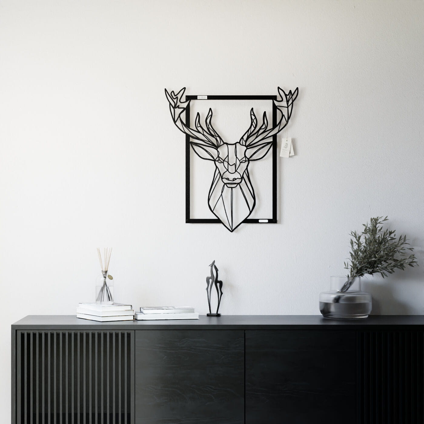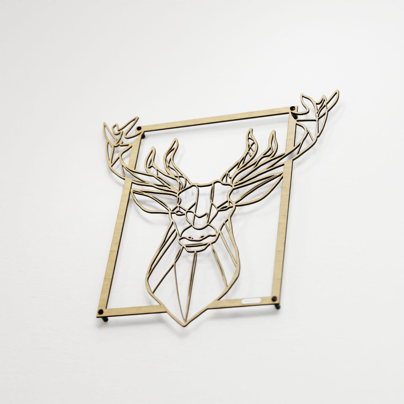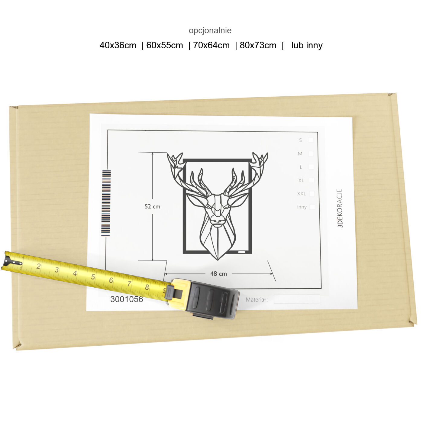 Panel dekoracyjny jeleńDekoracja ażurowa "Jeleń" to imponujący panel ścienny, który wprowadzi do wnętrza siłę natury i elegancki, geometryczny styl. Precyzyjnie wycięta sylwetka jelenia z majestatycznym porożem tworzy efekt trójwymiarowości, nadając ścianie wyjątkowy akcent. Ozdoba ta doskonale sprawdzi się jako centralny punkt dekoracyjny w salonie, sypialni lub przestrzeni biurowej, wprowadzając nutę dzikiej przyrody do wnętrza. Dzięki starannie wyciętym liniom, twarz i poroże jelenia prezentują się niezwykle szczegółowo, co dodaje tej dekoracji unikalnego charakteru. Ozdoba na ścianę w formie jelenia będzie pasowała zarówno do nowoczesnych, jak i bardziej klasycznych aranżacji, podkreślając indywidualny styl wnętrza. Lekka konstrukcja panelu umożliwia łatwy montaż, a jego solidne wykonanie zapewnia trwałość. To idealny wybór dla osób, które chcą wprowadzić do swojego domu symbol siły, natury i elegancji w minimalistycznym, geometrycznym wydaniu.