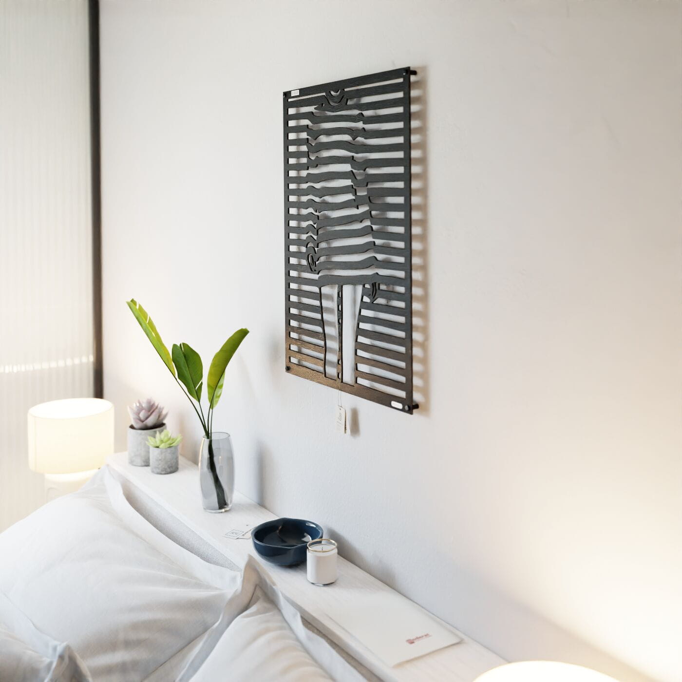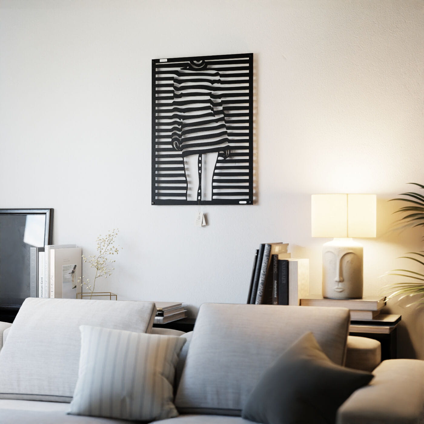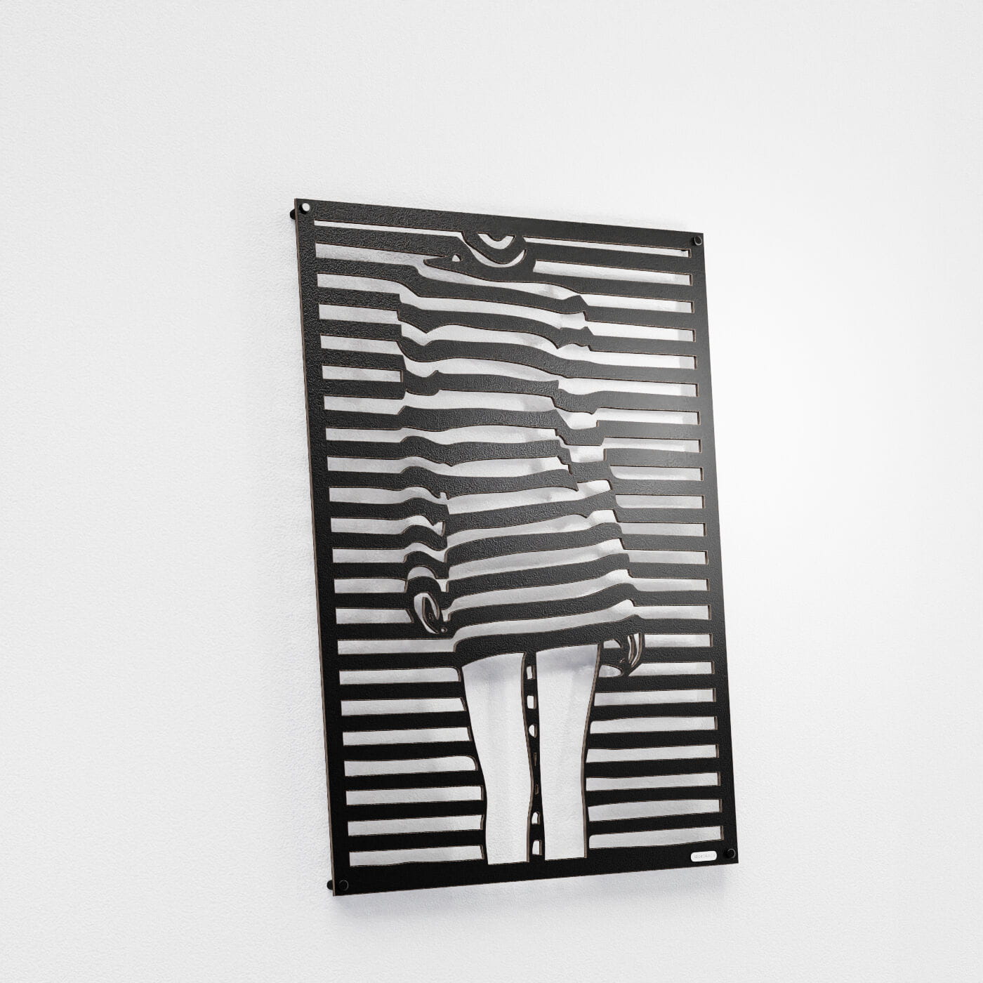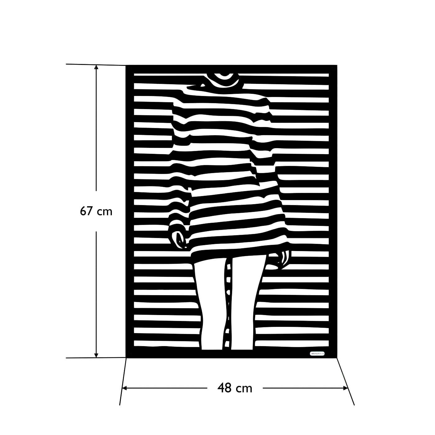 Panel dekoracyjny kobieta w pasyPanel dekoracyjny 3d "Kobieta w pasy" to nowoczesna ozdoba ścienna, która przyciąga wzrok nietypowym, dynamicznym wzorem. Kompozycja przedstawia postać kobiety ubranej w sukienkę w czarno-białe poziome pasy, które doskonale komponują się z tłem, tworząc iluzję ruchu i głębi. Zastosowanie takiego motywu dodaje projektowi unikalnego charakteru, a zarazem zachowuje jego minimalistyczną estetykę. Ta dekoracja ażurowa zaskakuje swoją prostotą, ale jednocześnie intryguje. Równomierne pasy przeplatają się, nadając całości lekkiego i nowoczesnego wyglądu. Wzór doskonale wpasuje się w przestrzenie urządzone w stylu industrialnym, nowoczesnym lub loftowym, wprowadzając do wnętrza świeży akcent. Panel ścienny "Kobieta w pasy" to idealny wybór dla osób, które cenią sobie nietuzinkowe dekoracje i chcą dodać odrobinę artystycznej dynamiki do swojego wnętrza.