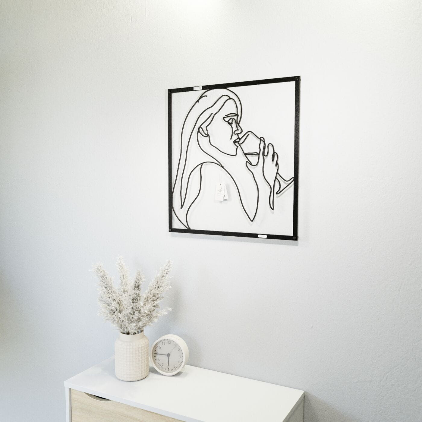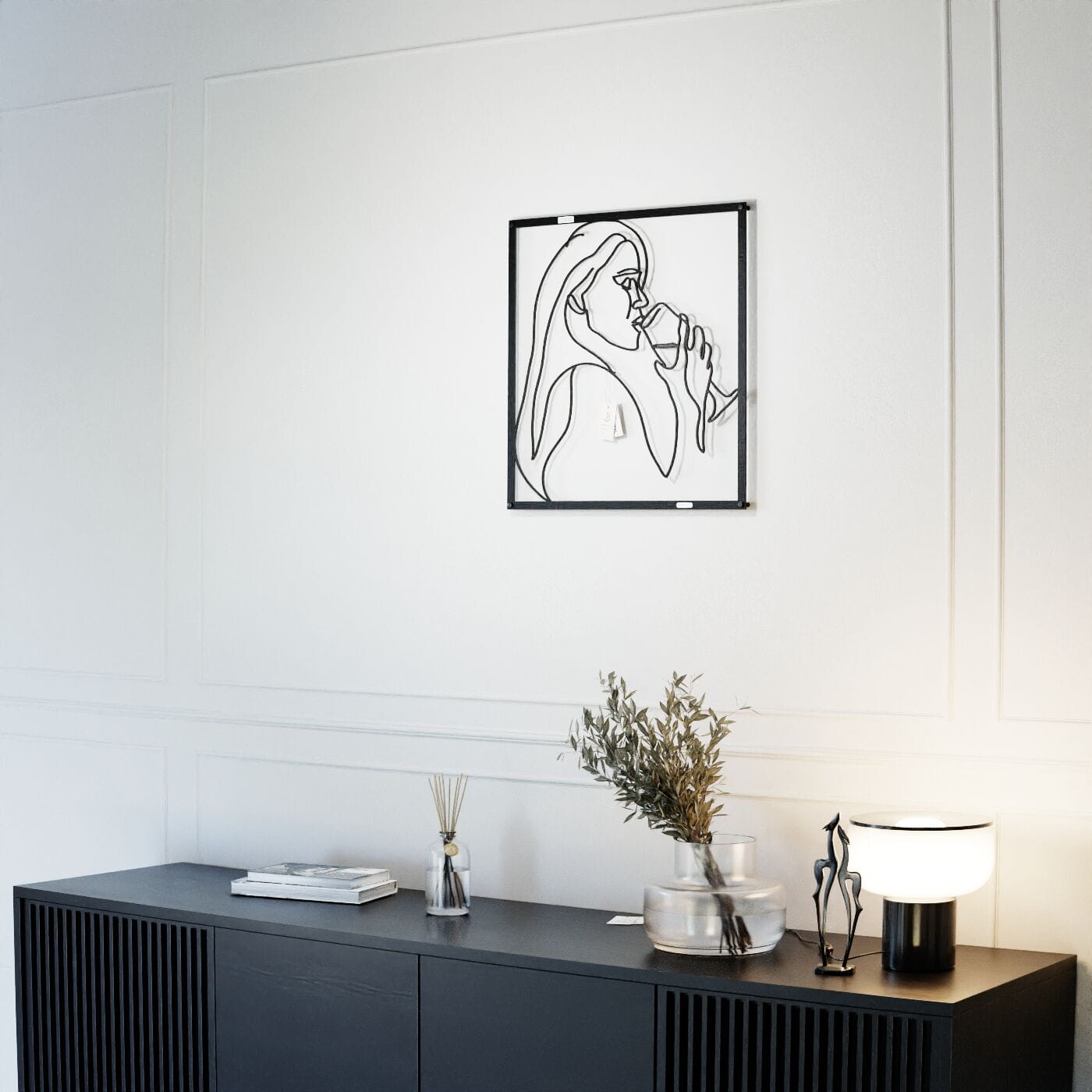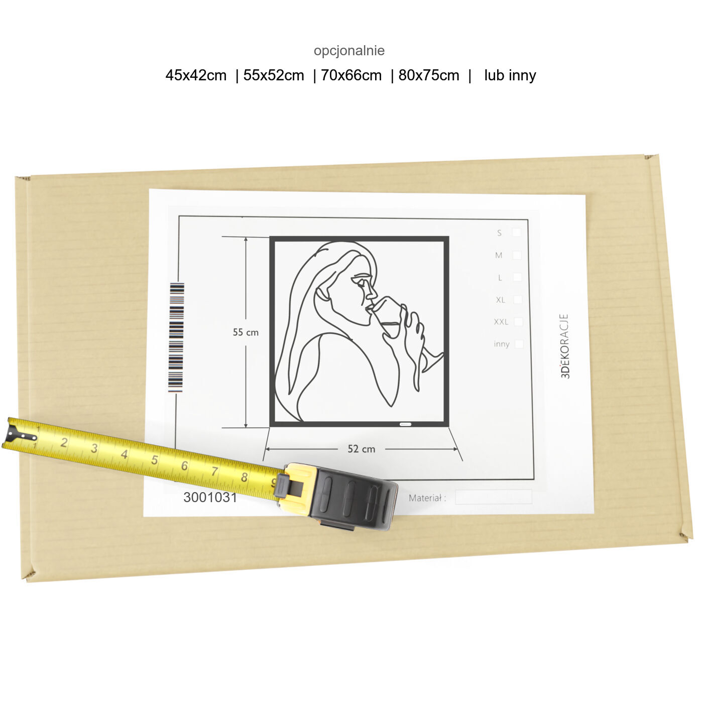 Panel dekoracyjny kobieta z winemPanel dekoracyjny "Kobieta z winem" to wyrafinowana ozdoba ścienna, która wprowadza subtelny, artystyczny akcent do każdego wnętrza. Delikatny kontur postaci kobiety trzymającej kieliszek wina został wycięty jednym płynnym ruchem, co nadaje dekoracji lekkości i elegancji. To minimalistyczne dzieło sztuki doskonale wpisuje się w nowoczesne aranżacje, dodając im charakteru i niepowtarzalnego stylu. Wykonana z precyzyjnie wyciętej płyty, dekoracja ażurowa prezentuje się wyjątkowo efektownie na ścianie, tworząc przyjemną grę cieni. Czarne linie kontrastujące z jasnym tłem podkreślają elegancję formy, czyniąc ją doskonałym wyborem do stylowych salonów, jadalni czy przestrzeni o charakterze wypoczynkowym. Ozdoba na ścianę jest nie tylko estetycznym dodatkiem, ale również funkcjonalnym elementem dekoracyjnym, łatwym do zamontowania za pomocą taśmy montażowej lub dystansów. Dzięki swojej uniwersalnej formie, może stanowić wyrazisty akcent w nowoczesnym salonie, kuchni czy jadalni, dodając wnętrzu elegancji i subtelnego uroku.