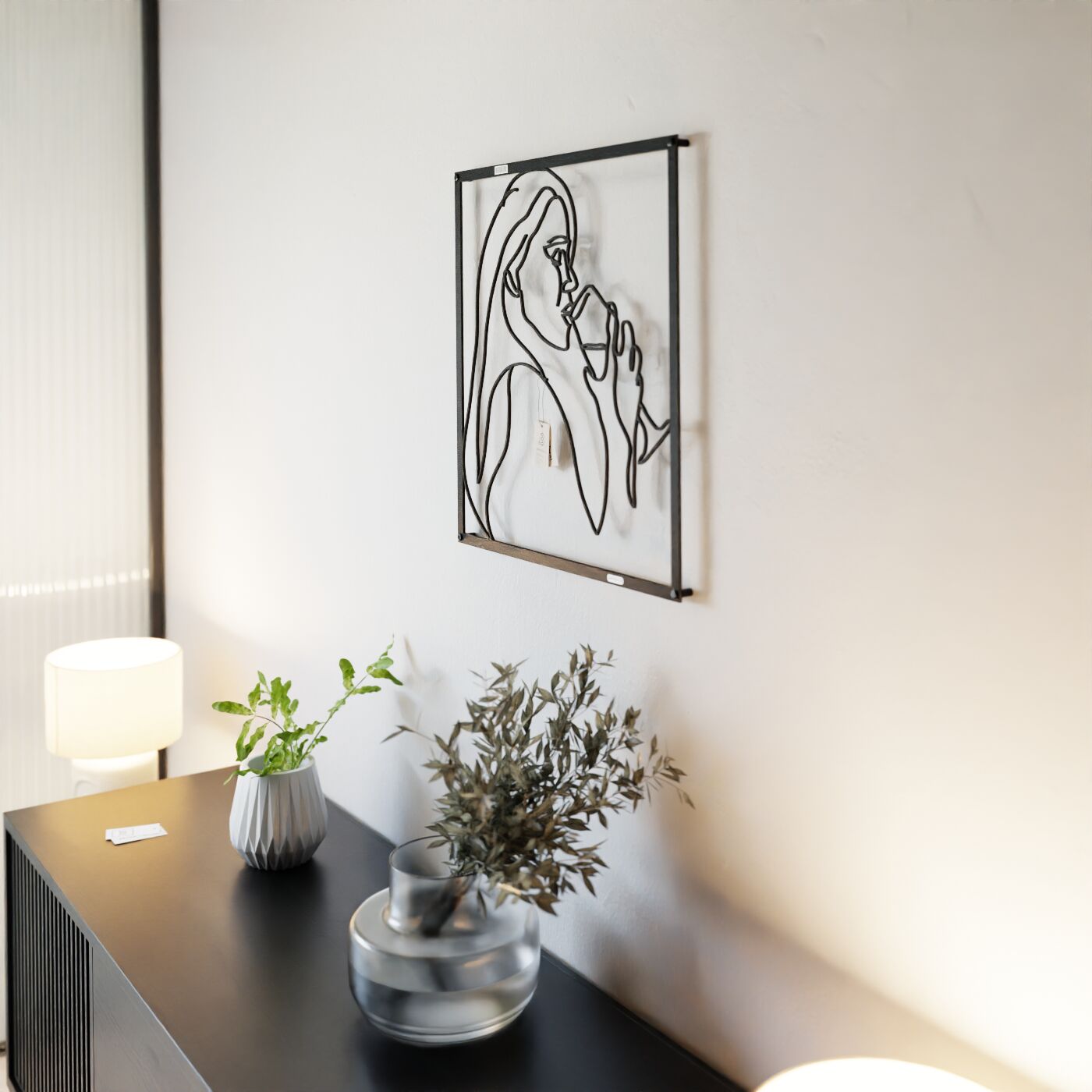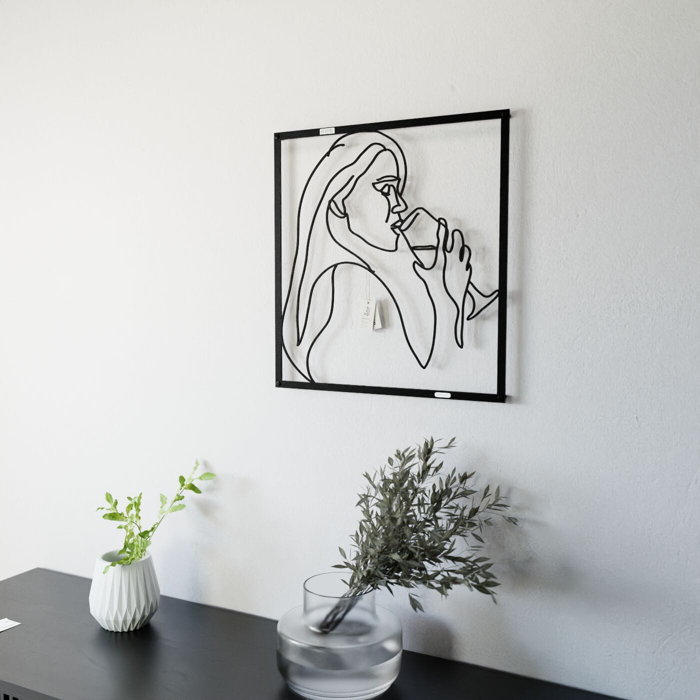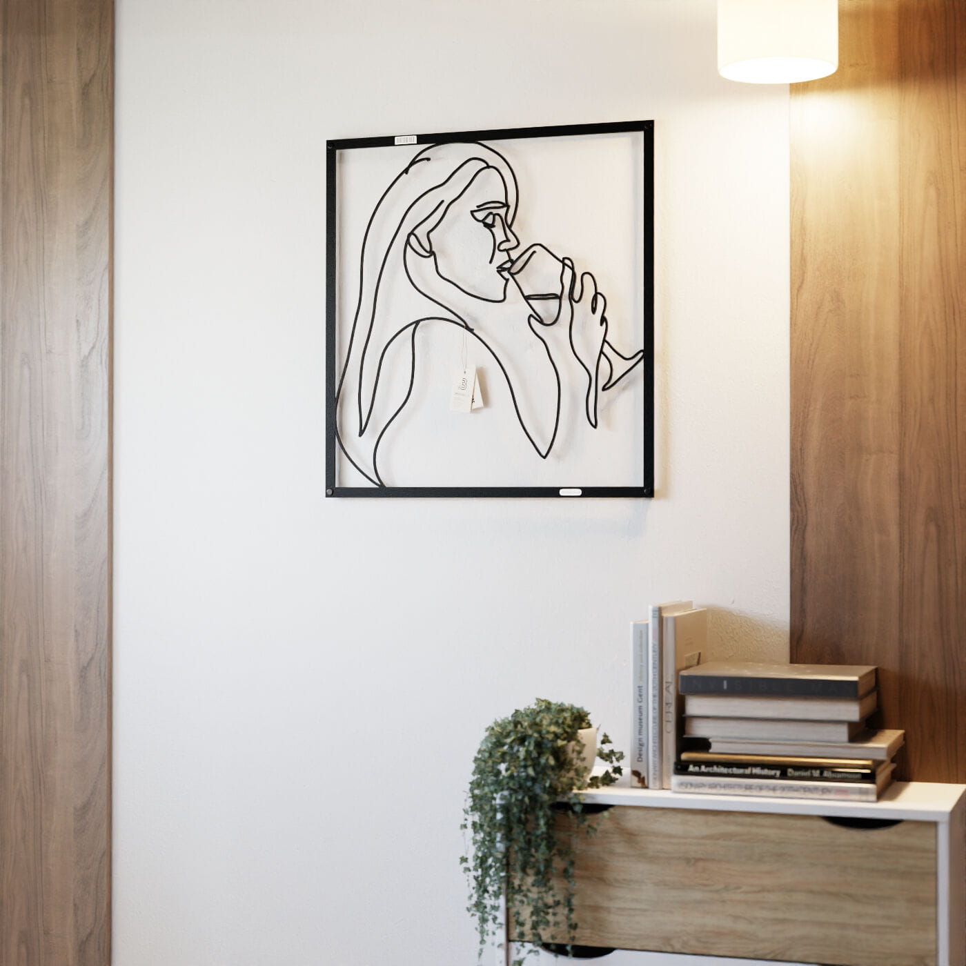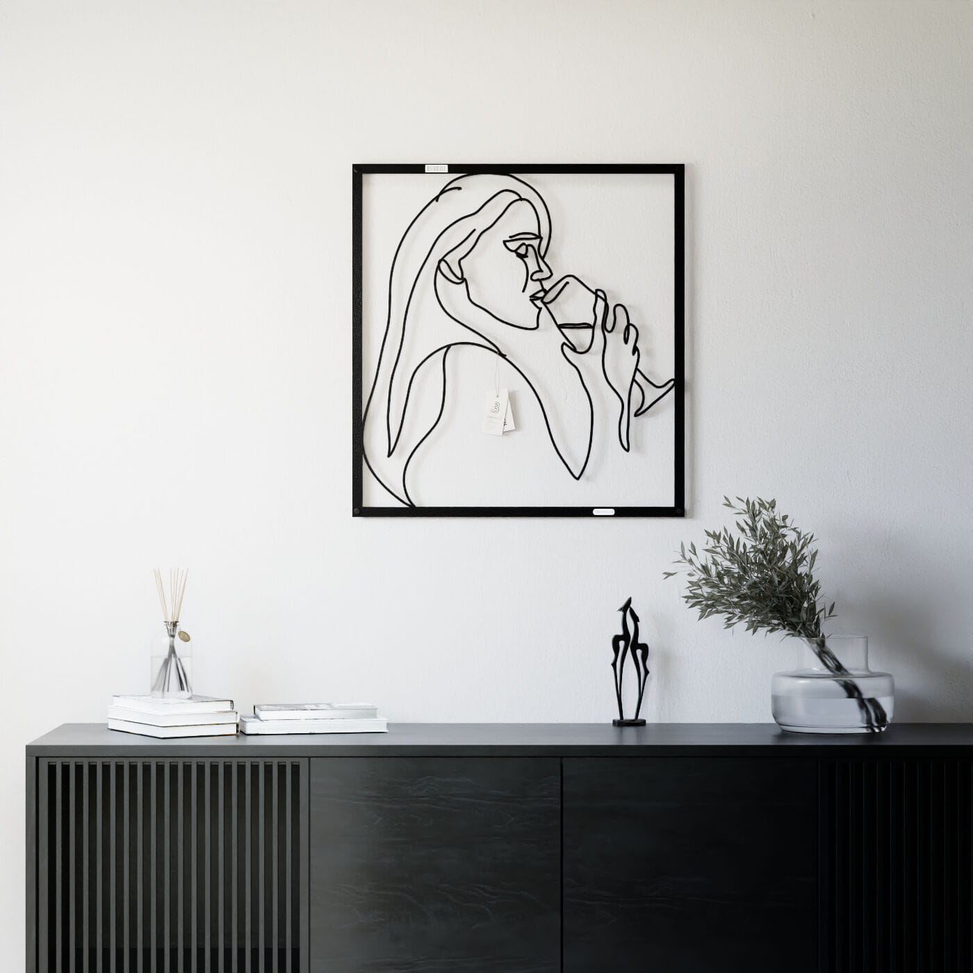 Panel dekoracyjny kobieta z winemPanel dekoracyjny "Kobieta z winem" to wyrafinowana ozdoba ścienna, która wprowadza subtelny, artystyczny akcent do każdego wnętrza. Delikatny kontur postaci kobiety trzymającej kieliszek wina został wycięty jednym płynnym ruchem, co nadaje dekoracji lekkości i elegancji. To minimalistyczne dzieło sztuki doskonale wpisuje się w nowoczesne aranżacje, dodając im charakteru i niepowtarzalnego stylu. Wykonana z precyzyjnie wyciętej płyty, dekoracja ażurowa prezentuje się wyjątkowo efektownie na ścianie, tworząc przyjemną grę cieni. Czarne linie kontrastujące z jasnym tłem podkreślają elegancję formy, czyniąc ją doskonałym wyborem do stylowych salonów, jadalni czy przestrzeni o charakterze wypoczynkowym. Ozdoba na ścianę jest nie tylko estetycznym dodatkiem, ale również funkcjonalnym elementem dekoracyjnym, łatwym do zamontowania za pomocą taśmy montażowej lub dystansów. Dzięki swojej uniwersalnej formie, może stanowić wyrazisty akcent w nowoczesnym salonie, kuchni czy jadalni, dodając wnętrzu elegancji i subtelnego uroku.