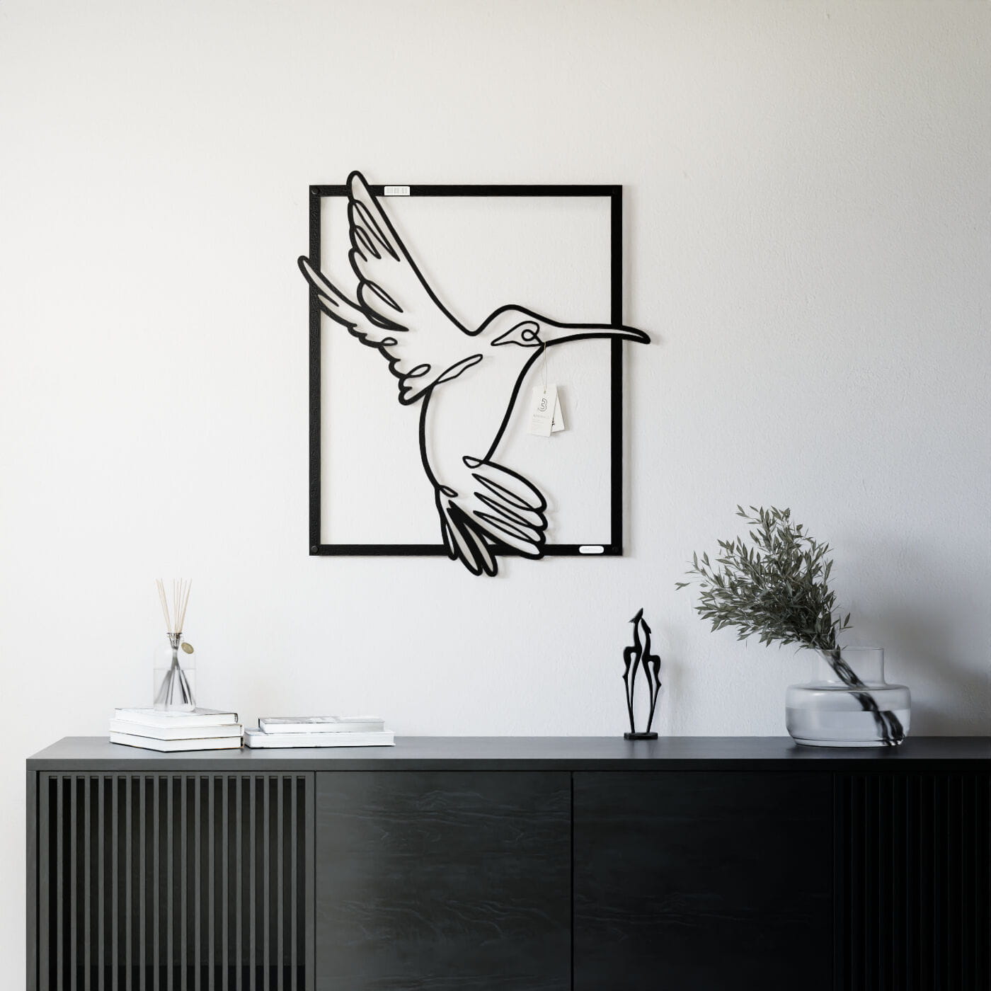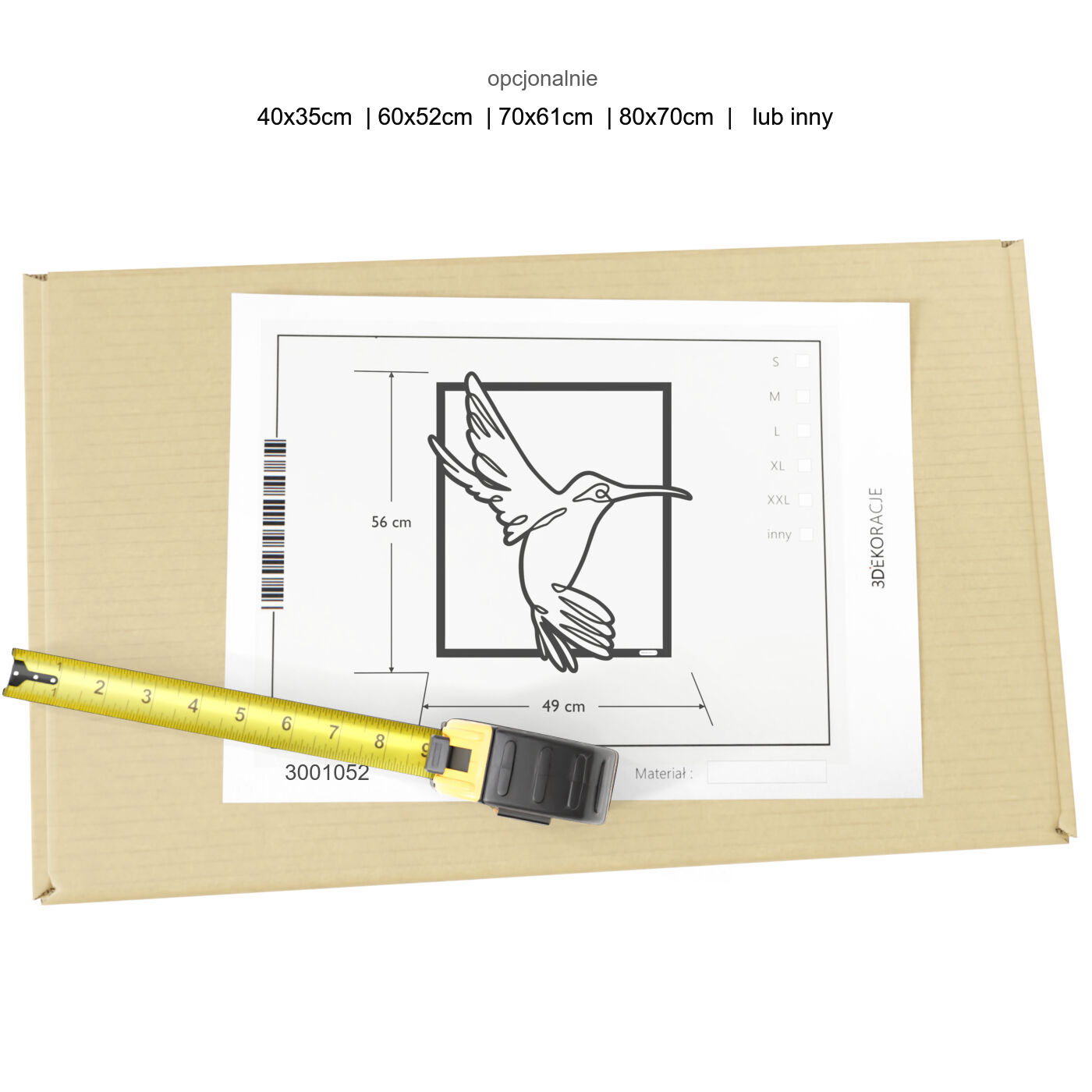 Panel dekoracyjny koliberDekoracja ażurowa "Lecący ptak" to dynamiczny panel ścienny, który wprowadza do wnętrza wrażenie ruchu i wolności. Elegancka sylwetka ptaka w locie, precyzyjnie wycięta w minimalistycznym stylu, tworzy efekt trójwymiarowości i głębi, nadając ścianie oryginalny charakter. To wyjątkowa ozdoba na ścianę, która idealnie sprawdzi się w każdym pomieszczeniu, dodając mu lekkości i harmonii. Detale skrzydeł oraz sylwetki ptaka zostały starannie odwzorowane, co czyni tę dekorację wyjątkową i przyciągającą uwagę. Panel ten doskonale pasuje do wnętrz o różnych stylach, wprowadzając subtelny, ale wyrazisty element. Idealny do salonu, sypialni lub biura. Lekka konstrukcja panelu ułatwia jego montaż, a solidne wykonanie gwarantuje trwałość. Dzięki temu jest to nie tylko estetyczny, ale i praktyczny dodatek.