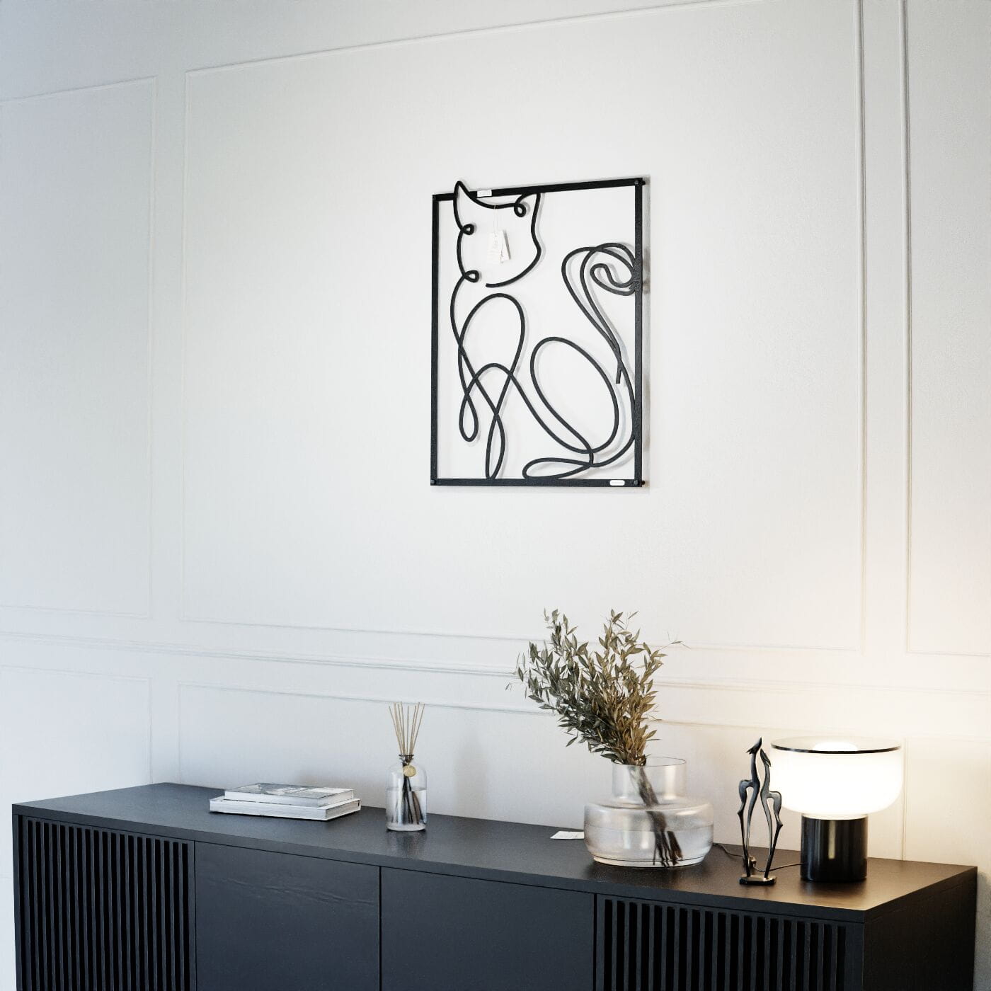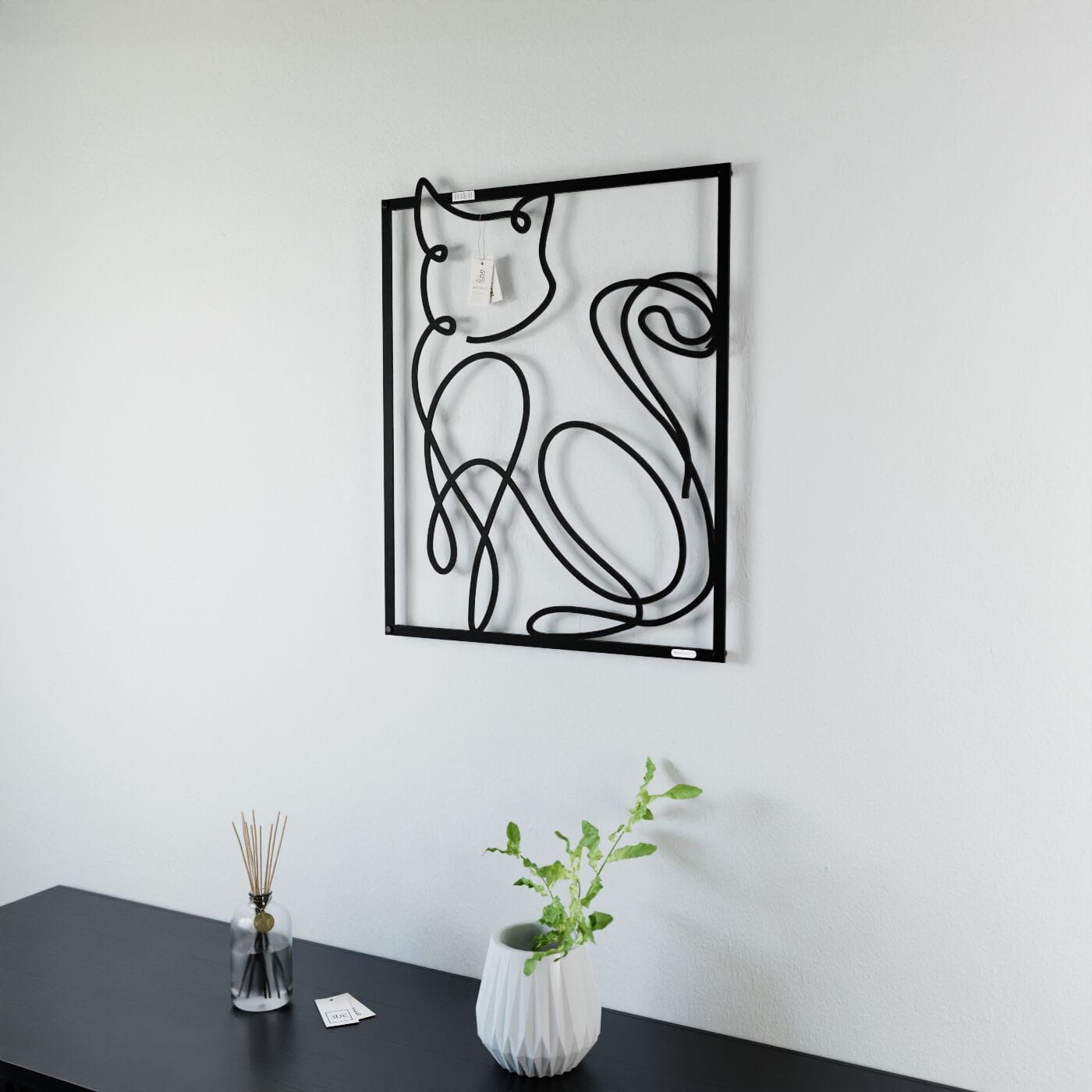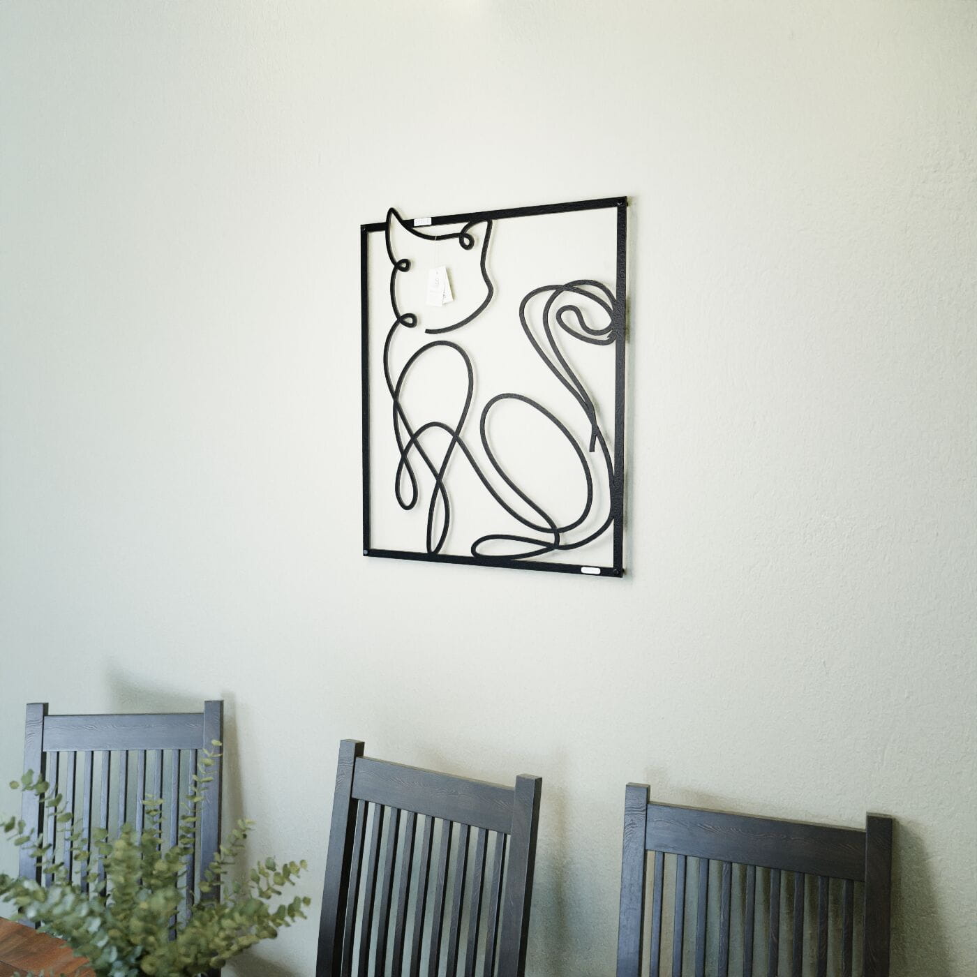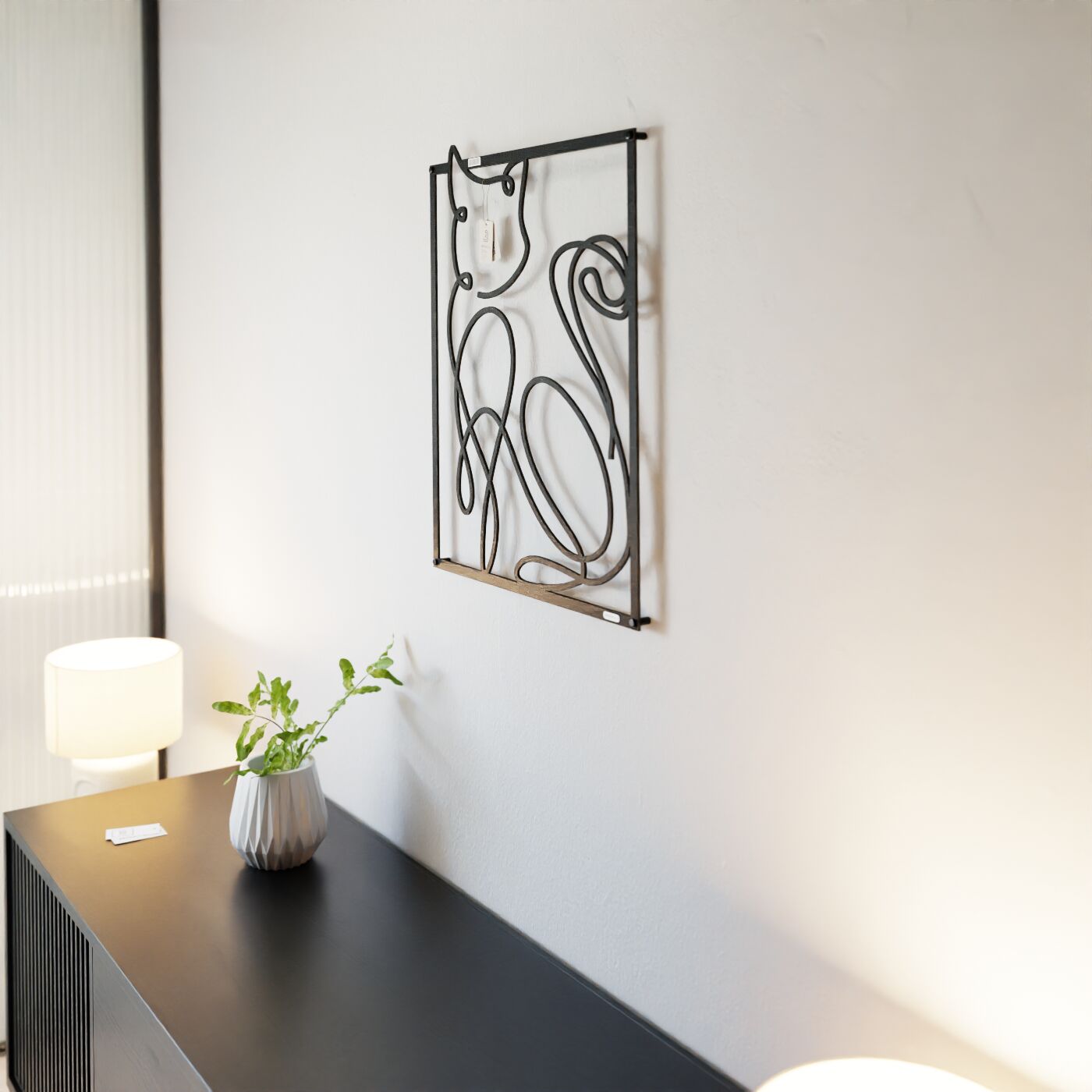 Panel dekoracyjny kotDekoracja ażurowa "Kot" to niezwykle oryginalny panel ścienny, który wniesie do Twojego wnętrza nieco figlarności i artystycznej ekspresji. Wyjątkowa sylwetka kota, przedstawiona w minimalistycznym stylu, została stworzona za pomocą płynnych, delikatnych linii, które subtelnie oddają kocią zwinność i elegancję. Zawinięty ogon oraz łagodnie wygięta forma ciała tworzą dynamiczny i przestrzenny efekt, który przyciąga uwagę. Dzięki precyzyjnie wyciętym konturom, panel dekoracyjny nie tylko pełni funkcję ozdobną, ale także nadaje wnętrzu artystycznego wyrazu. Każda linia dekoracji została starannie zaprojektowana, aby tworzyć harmonię między prostotą formy a głębią, którą panel zyskuje w połączeniu z oświetleniem, które rzuca subtelne cienie na ścianę. To połączenie nowoczesności z przytulnym klimatem natury. Ozdoba na ścianę "Kot" doskonale sprawdzi się w nowoczesnych wnętrzach, ale także w przestrzeniach, które cenią sobie subtelne i artystyczne akcenty. Może być idealnym dodatkiem do salonu, sypialni, a także do pokoju dziecięcego, gdzie wprowadzi odrobinę zabawy i lekkości. Ta dekoracja jest również świetnym rozwiązaniem dla miłośników kotów, którzy chcą w oryginalny sposób uhonorować swojego ulubionego zwierzaka w przestrzeni domowej. Dzięki lekkiej konstrukcji panel jest łatwy do zamontowania na ścianie. Można go umieścić zarówno samodzielnie, jak i w połączeniu z innymi dekoracjami, aby stworzyć ciekawą kompozycję. Jego trwała konstrukcja i uniwersalny design zapewniają, że będzie on ozdobą na lata, wprowadzającą harmonię do Twojego wnętrza.