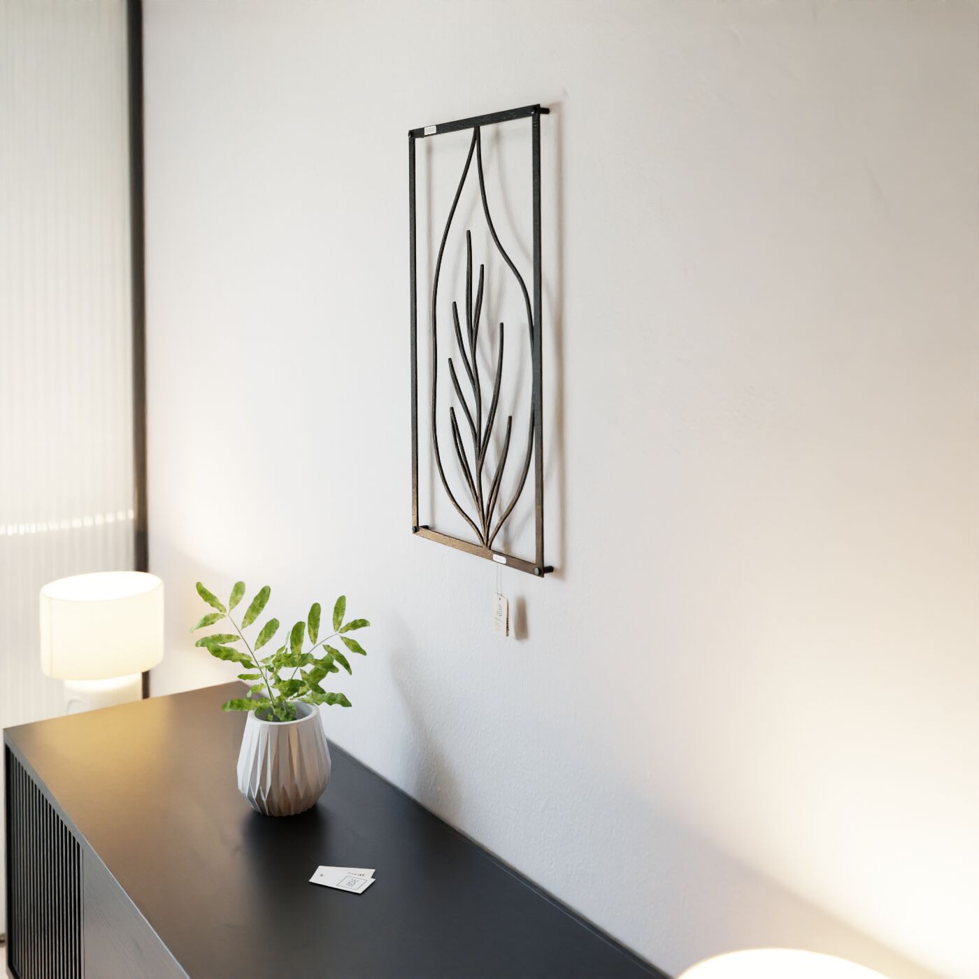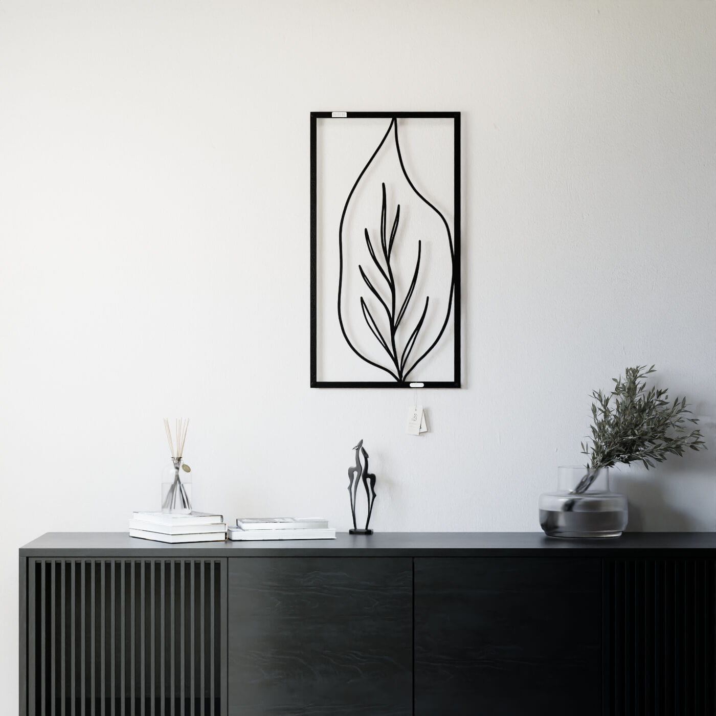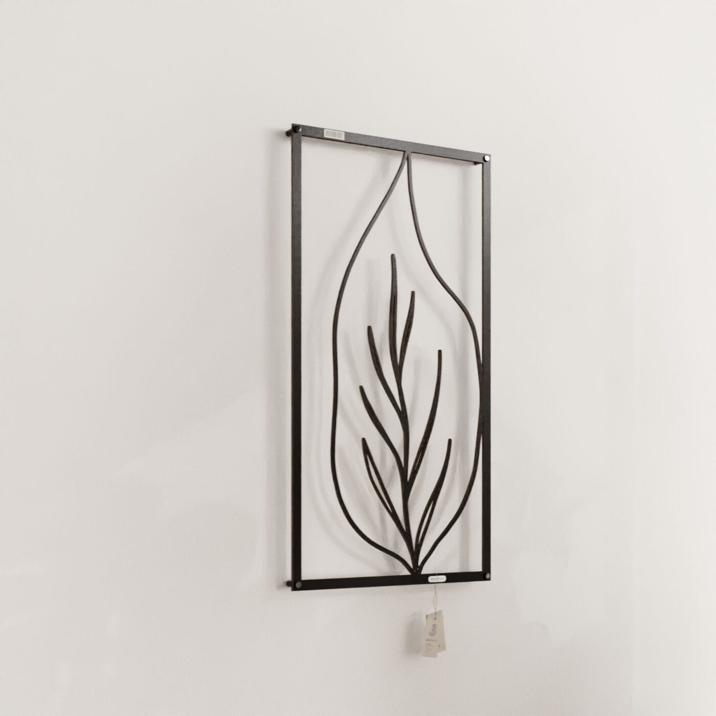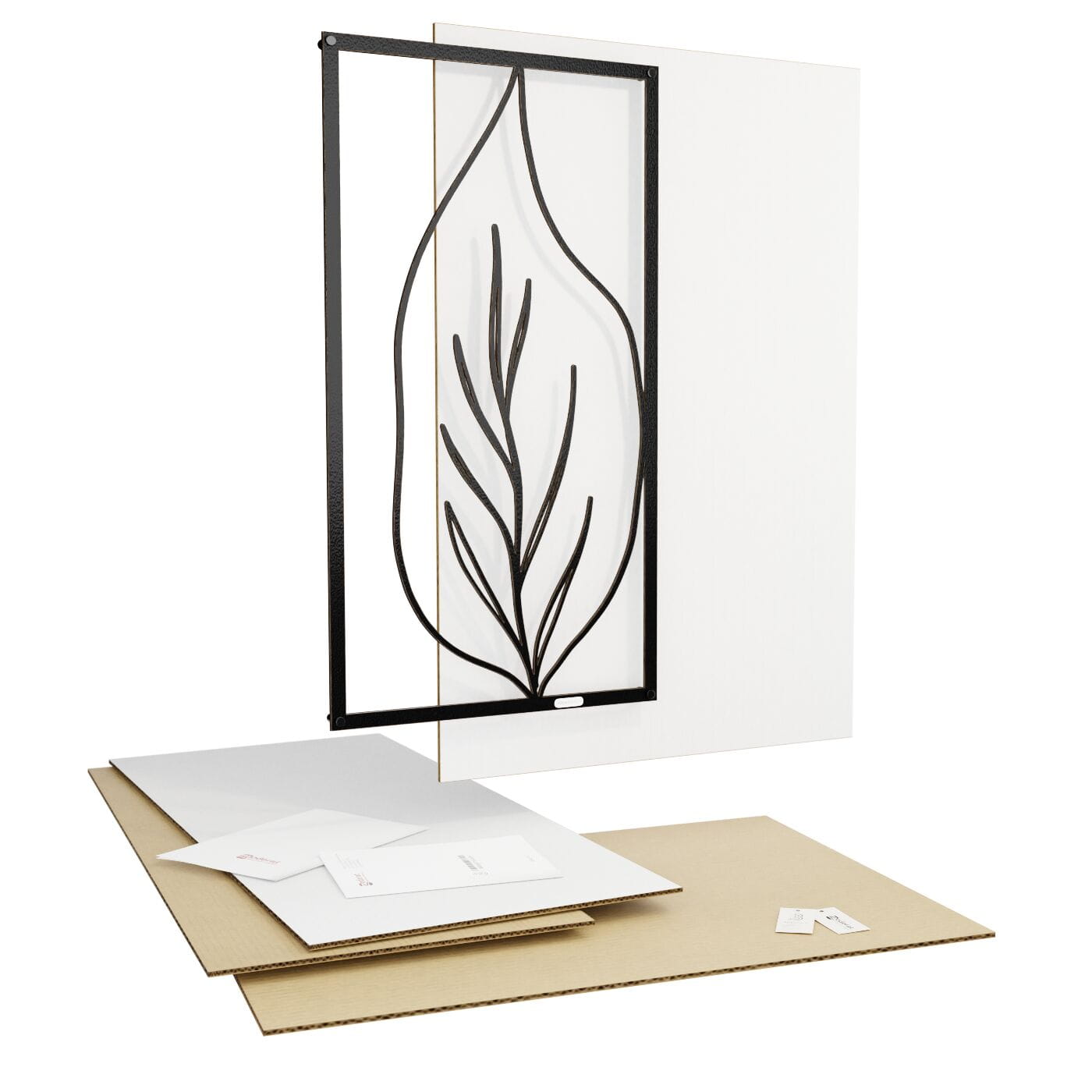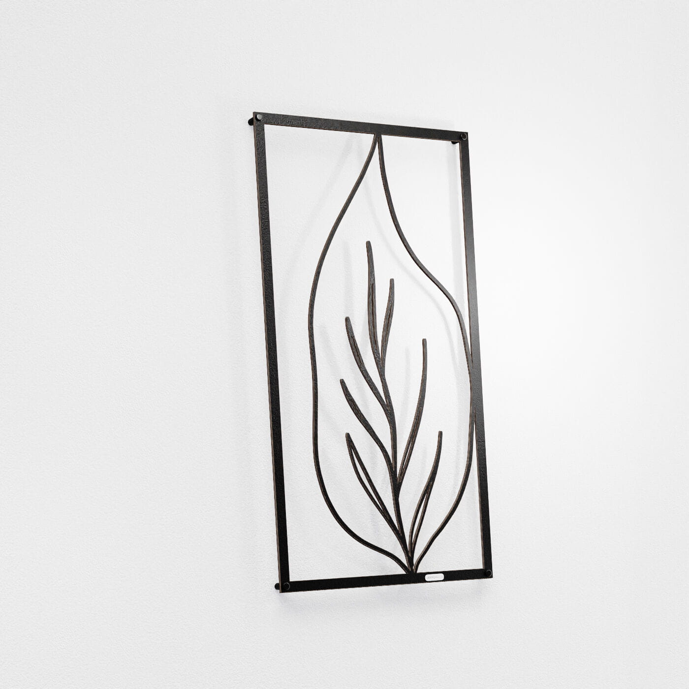 Panel dekoracyjny liśćPanel dekoracyjny „Liść” to subtelna, ażurowa ozdoba w kształcie liścia o delikatnie zarysowanych liniach. Centralnym punktem kompozycji jest smukła gałązka, której cienkie pędy rozchodzą się harmonijnie wewnątrz dużego liścia. Całość została zamknięta w prostokątnej ramie, co nadaje jej eleganckiego i minimalistycznego wyglądu. Taki panel ścienny doskonale sprawdzi się jako ozdoba na ścianę w nowoczesnych wnętrzach, takich jak salon, przedpokój czy biuro, wprowadzając element natury w subtelny sposób. Można go łączyć z innymi dekoracjami, tworząc ciekawą aranżację. Wykonany z dbałością o szczegóły, dekoracja ażurowa wycięta została przy użyciu precyzyjnej technologii laserowej, co zapewnia jej wysoką jakość. Dzięki lekkości i prostocie formy, panel ten łatwo wkomponuje się w różne style wnętrz, dodając im świeżości.