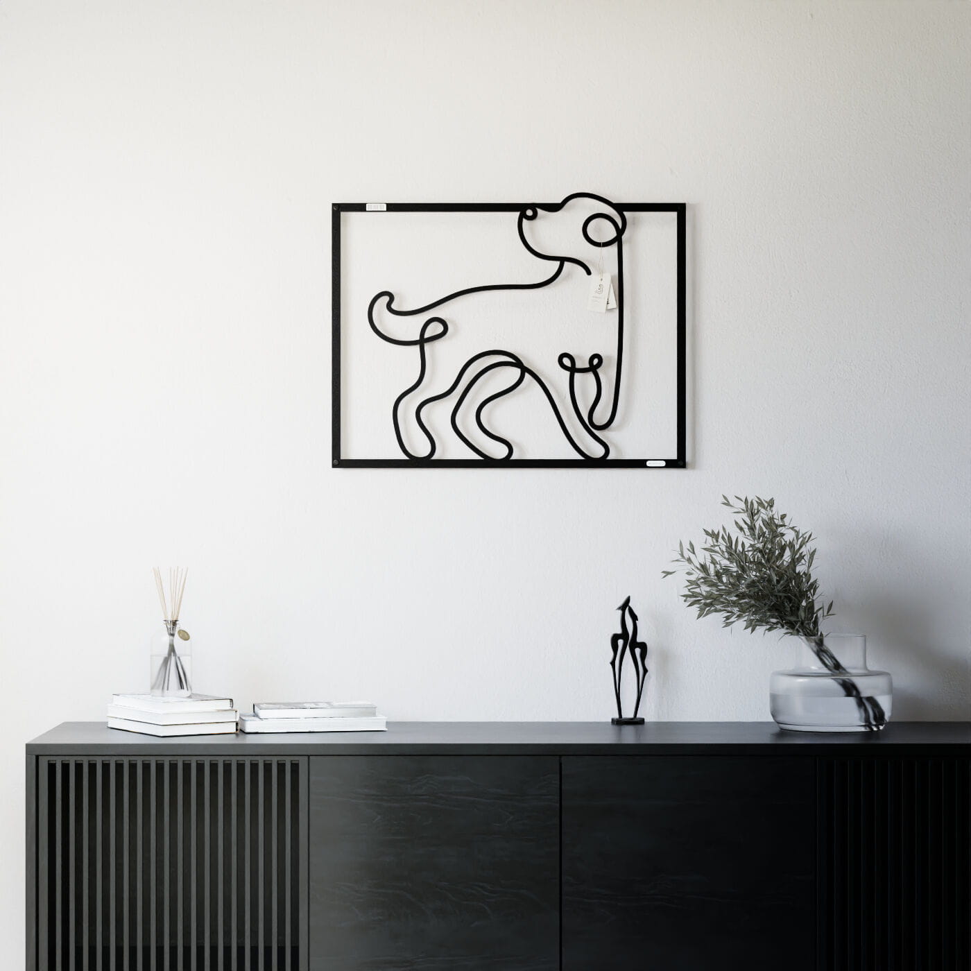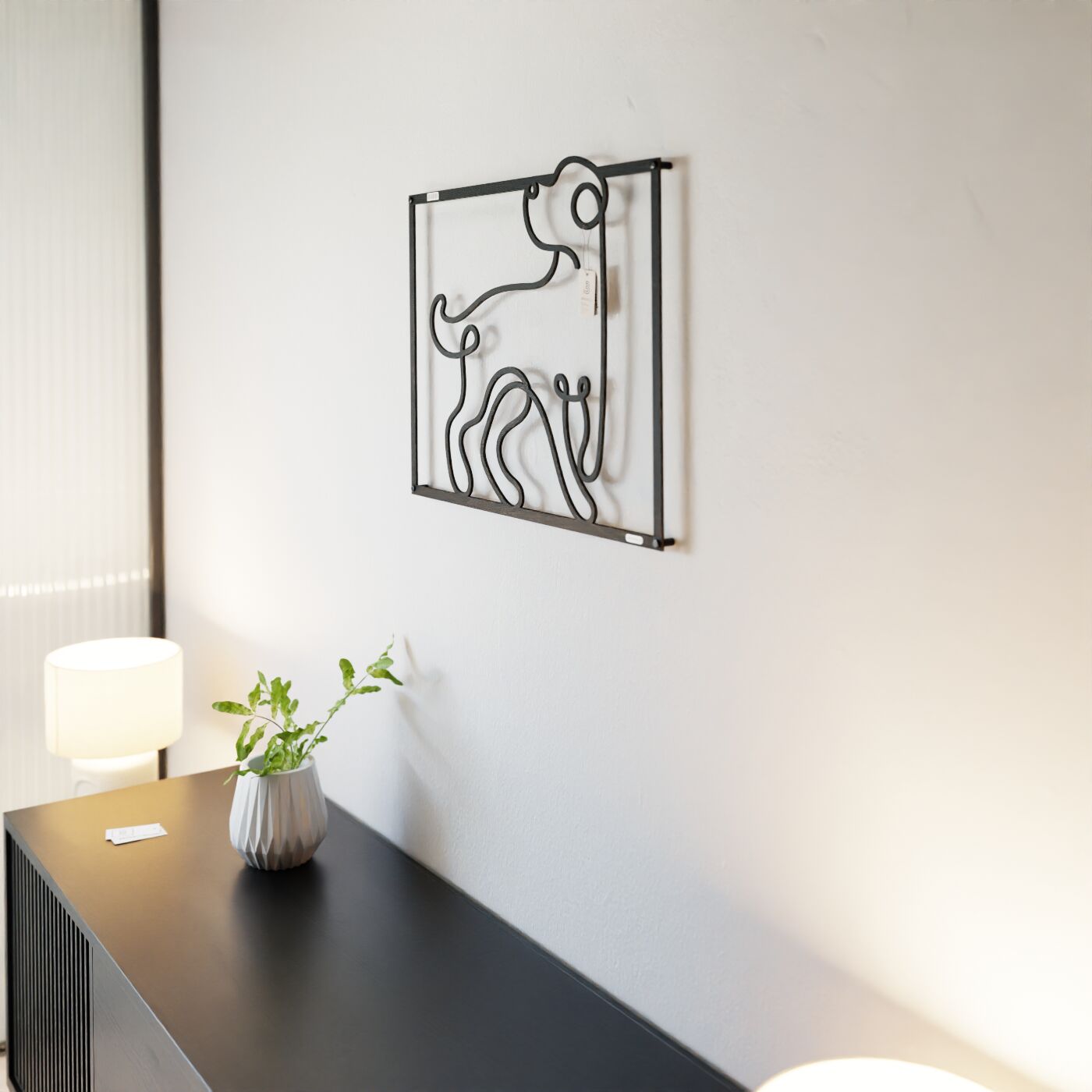 Panel dekoracyjny piesekDekoracja ażurowa "Piesek" to uroczy panel ścienny, który wprowadza do wnętrza radość i przyjacielski klimat. Prosta, ale zarazem pełna wdzięku sylwetka psa, wykonana w minimalistycznym stylu, odzwierciedla ciepło i przywiązanie, które towarzyszą obecności tego wiernego przyjaciela człowieka. Płynne linie tworzą delikatny i dynamiczny wzór, który doda wnętrzu lekkości i pozytywnej energii. Precyzyjnie wycięty za pomocą technologii laserowej panel jest idealnym przykładem harmonii między prostotą formy a elegancją wykonania. Ozdoba na ścianę przedstawiająca pieska sprawdzi się w wielu przestrzeniach – zarówno w pokoju dziecięcym, salonie, jak i w przedpokoju, gdzie doda wnętrzu przytulnego, rodzinnego charakteru. Może również stanowić idealny prezent dla miłośników psów, którzy chcą wyrazić swoją miłość do tych zwierząt w artystyczny sposób. Dzięki lekkiej konstrukcji, montaż panelu jest niezwykle prosty, a jego uniwersalny styl sprawia, że pasuje on zarówno do nowoczesnych, jak i bardziej klasycznych aranżacji. Panel dekoracyjny z wizerunkiem psa to świetny sposób na ożywienie wnętrza, wprowadzając do niego nutę radości i ciepła.