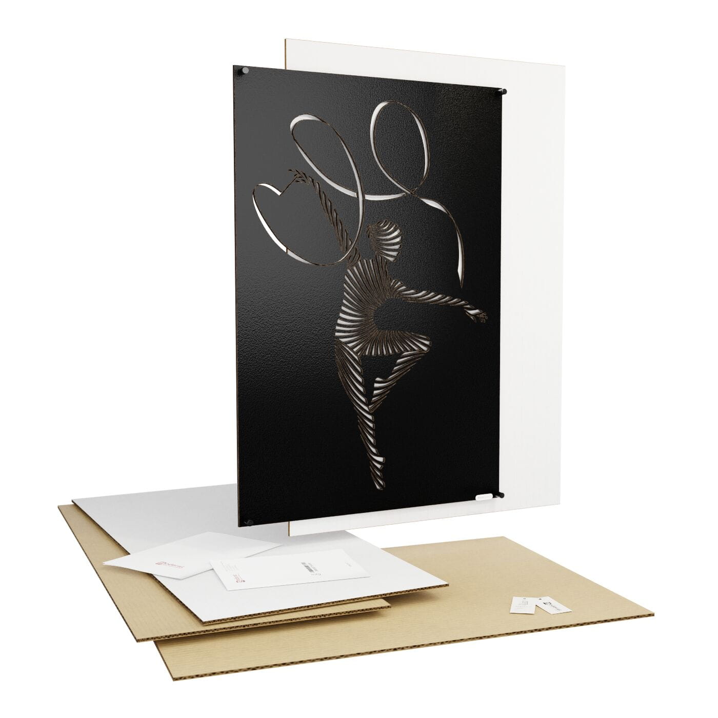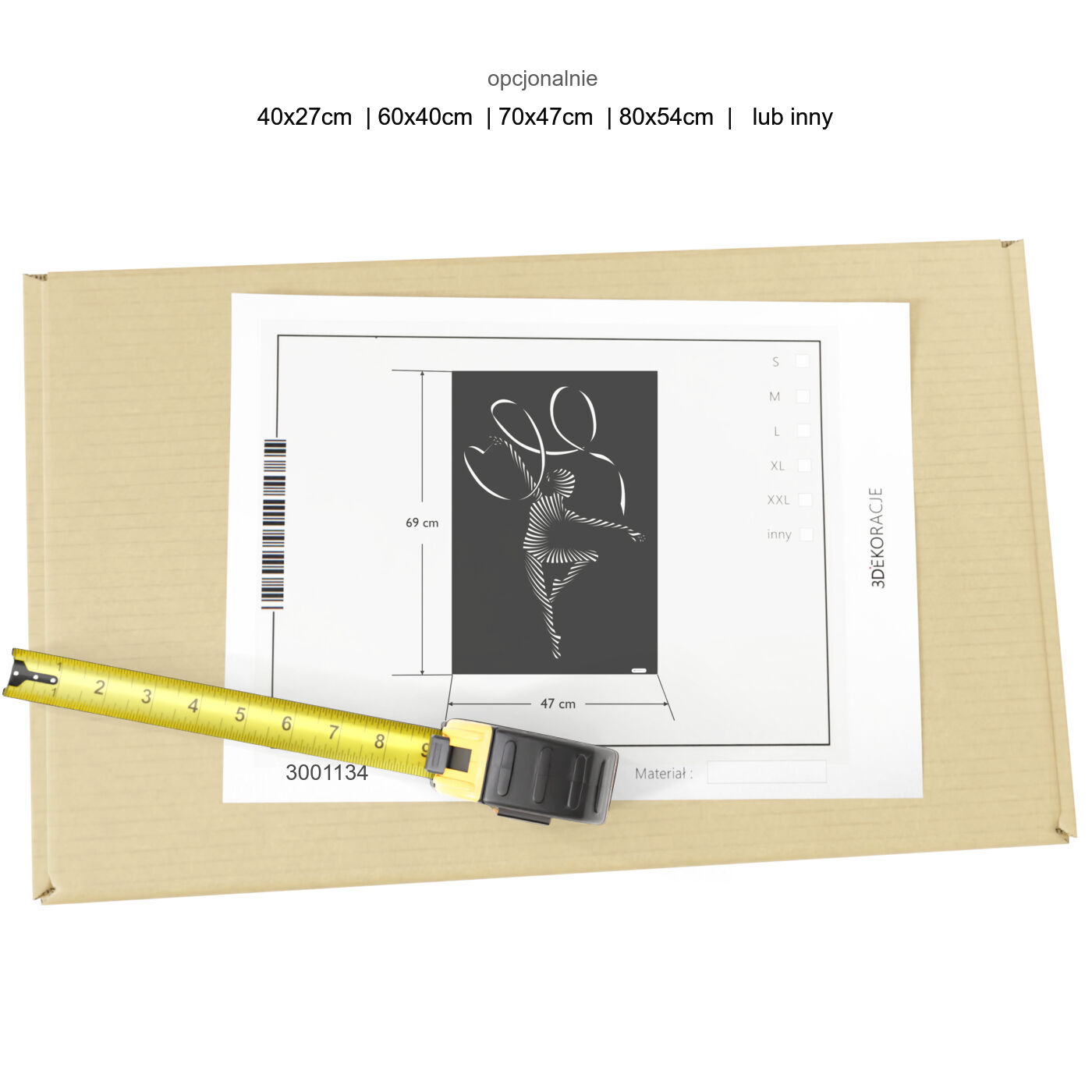 Panel dekoracyjny taniec z szarfąPrzestrzenny ażurowy panel 3D „Taniec z szarfą” to dekoracja, która wprowadza dynamikę i grację do każdego wnętrza. Postać tancerki, otulona falującymi szarfami, symbolizuje lekkość ruchu i artystyczną ekspresję, co czyni tę ozdobę doskonałym wyborem dla miłośników sztuki i tańca. Precyzyjnie wykonany panel ścienny z ażurowym wzorem sprawia, że dekoracja staje się ciekawym elementem aranżacyjnym, wprowadzającym subtelny, a zarazem nowoczesny akcent do przestrzeni. Czerń podkreśla elegancję, a perforacje dodają trójwymiarowości, dzięki czemu panel świetnie prezentuje się zarówno na jasnych, jak i ciemnych ścianach. To idealna ozdoba na ścianę do salonu, pokoju dziennego lub sypialni, która wprowadzi artystyczny nastrój i doda charakteru wnętrzu.