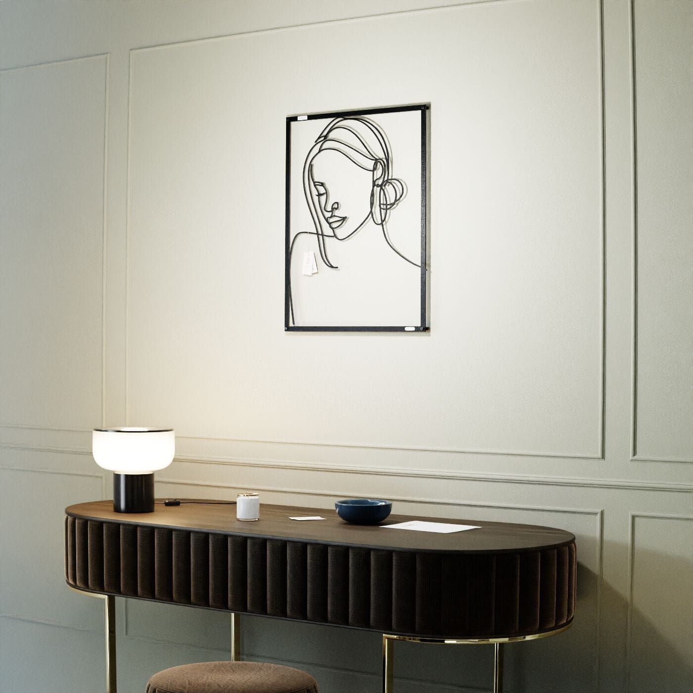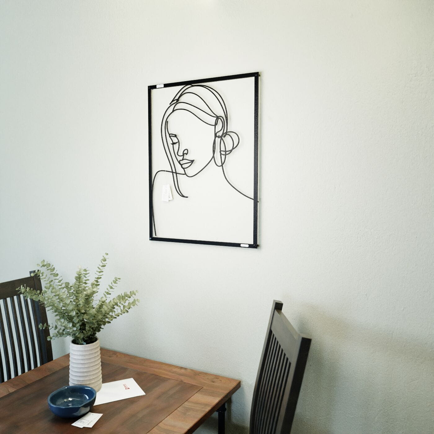 Panel dekoracyjny twarz kobietyTen subtelny panel dekoracyjny przedstawiający twarz kobiety wyróżnia się minimalistycznym designem, który idealnie wpisuje się w nowoczesne wnętrza. Starannie wycięte cienkie linie oddają kontury twarzy, subtelnie zarysowując rysy kobiety i jej delikatny wyraz. Element ten łączy w sobie artystyczną formę z prostotą, tworząc efektowną ozdobę ścienną, która ożywi każde pomieszczenie. Panel doskonale sprawdzi się w przestrzeniach, w których panuje elegancki minimalizm. Idealnie komponuje się z aranżacjami salonu, sypialni, a nawet gabinetu, wprowadzając do wnętrza nutę wyrafinowanej sztuki. Dzięki swojej uniwersalności pasuje zarówno do przestrzeni utrzymanych w jasnych barwach, jak i tych, w których dominują ciemniejsze odcienie, oferując możliwość stworzenia kontrastowego akcentu na ścianie. Panel został wykonany z wytrzymałego materiału, a jego wycięcie technologią laserową gwarantuje najwyższą jakość detali. Produkt jest łatwy w montażu dzięki odpowiednio umieszczonym otworom mocującym, co umożliwia szybkie i stabilne przymocowanie do ściany. Dzięki temu dekoracja ta będzie nie tylko ozdobą, ale i trwałym elementem wnętrza, który z pewnością przyciągnie uwagę swoim wyrazistym stylem.