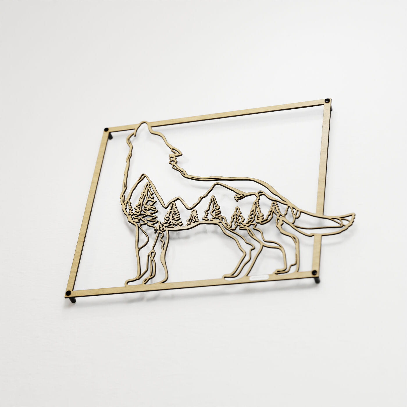 Panel dekoracyjny wilkDekoracja ażurowa "Wilk" to unikalny panel ścienny, który wprowadzi do wnętrza dzikość i tajemniczość natury. Precyzyjnie wycięta sylwetka wilka, który wyje w stronę księżyca, została wzbogacona o krajobraz lasu, tworząc niezwykły trójwymiarowy efekt. Ta ozdoba na ścianę jest idealnym wyborem dla osób, które cenią wyjątkowe i symboliczne dekoracje, inspirowane naturą. Wyraziste kontury wilka i drzewa tworzą spójną całość, która przyciąga wzrok i nadaje wnętrzu niepowtarzalnego charakteru. Panel ten doskonale sprawdzi się w nowoczesnych przestrzeniach, jak i w bardziej klasycznych aranżacjach, dodając im nieco dzikiego uroku i naturalnej surowości. Dzięki lekkiej konstrukcji montaż panelu jest szybki i prosty, a jego solidne wykonanie gwarantuje trwałość na lata. Ten panel dekoracyjny to idealny wybór dla miłośników przyrody i symboliki, którzy chcą wprowadzić do swojego wnętrza motyw wolności i dzikości w eleganckiej formie.