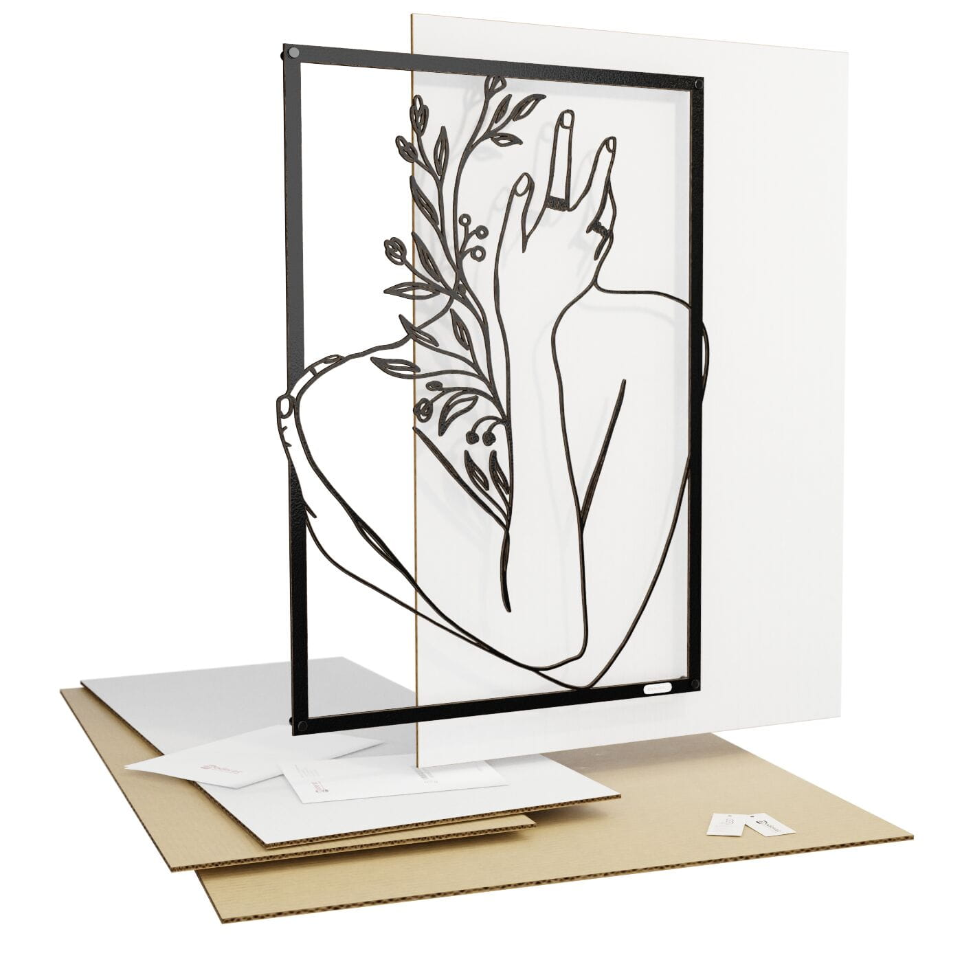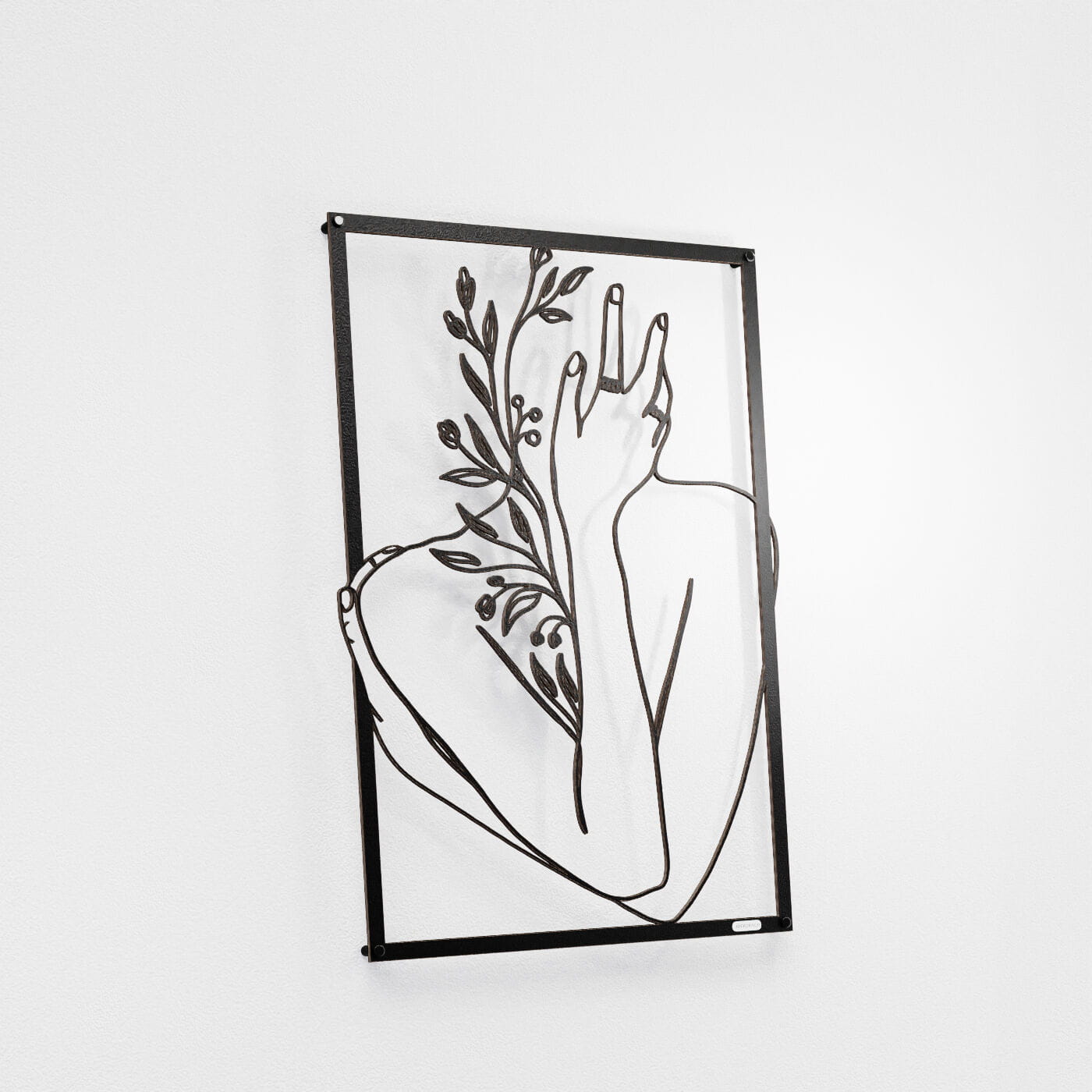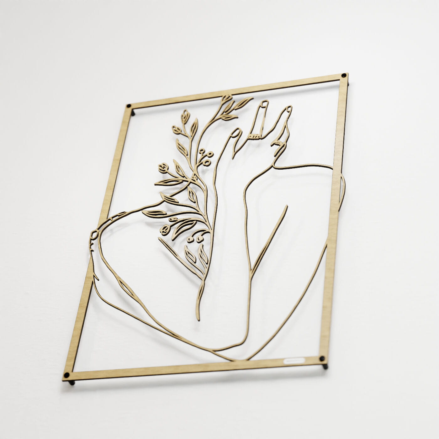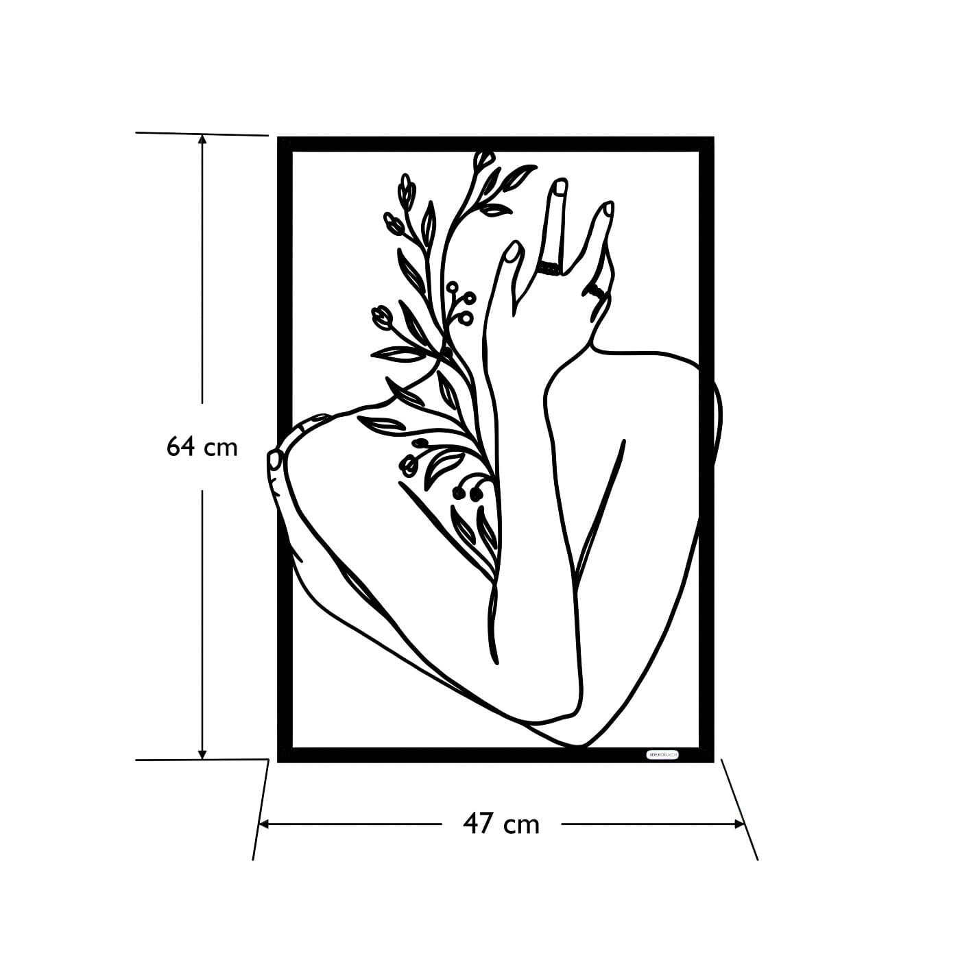 Panel dekoracyjny ręka na twarzyDekoracja ażurowa "Ręka na twarzy" to artystyczny panel ścienny, który łączy w sobie elegancję i delikatność ludzkiego ciała z motywami natury. Przedstawiający postać z ręką delikatnie podtrzymującą twarz, otoczoną subtelnymi gałązkami i liśćmi, panel ten jest wyrazem harmonii i spokoju. Precyzyjnie wycięte laserowo linie podkreślają każdy szczegół – od smukłości dłoni po detale roślin, nadając całości głęboki i przestrzenny efekt. Ozdoba na ścianę wyróżnia się minimalistycznym designem, który świetnie komponuje się z nowoczesnymi wnętrzami. Panel doskonale wpasuje się w salonie, sypialni czy gabinecie, nadając pomieszczeniu subtelnego, ale wyrazistego charakteru. Cienie rzucane przez dekorację pod wpływem światła tworzą dodatkowy efekt trójwymiarowości, wzbogacając aranżację wnętrza o głębię i lekkość. Ta dekoracja ścienna to idealne rozwiązanie dla osób, które szukają nietuzinkowego akcentu w swoim wnętrzu, łączącego w sobie elementy sztuki i natury. Dzięki lekkiej konstrukcji jest łatwa w montażu i może szybko odmienić atmosferę wnętrza, wprowadzając elegancki i artystyczny akcent.