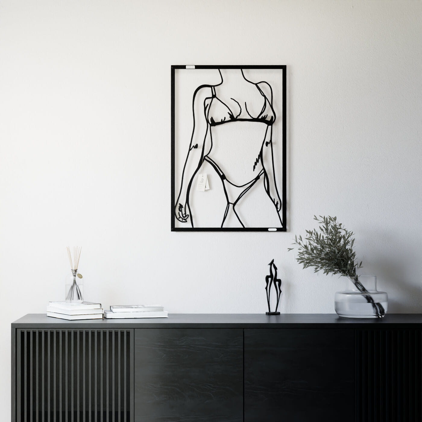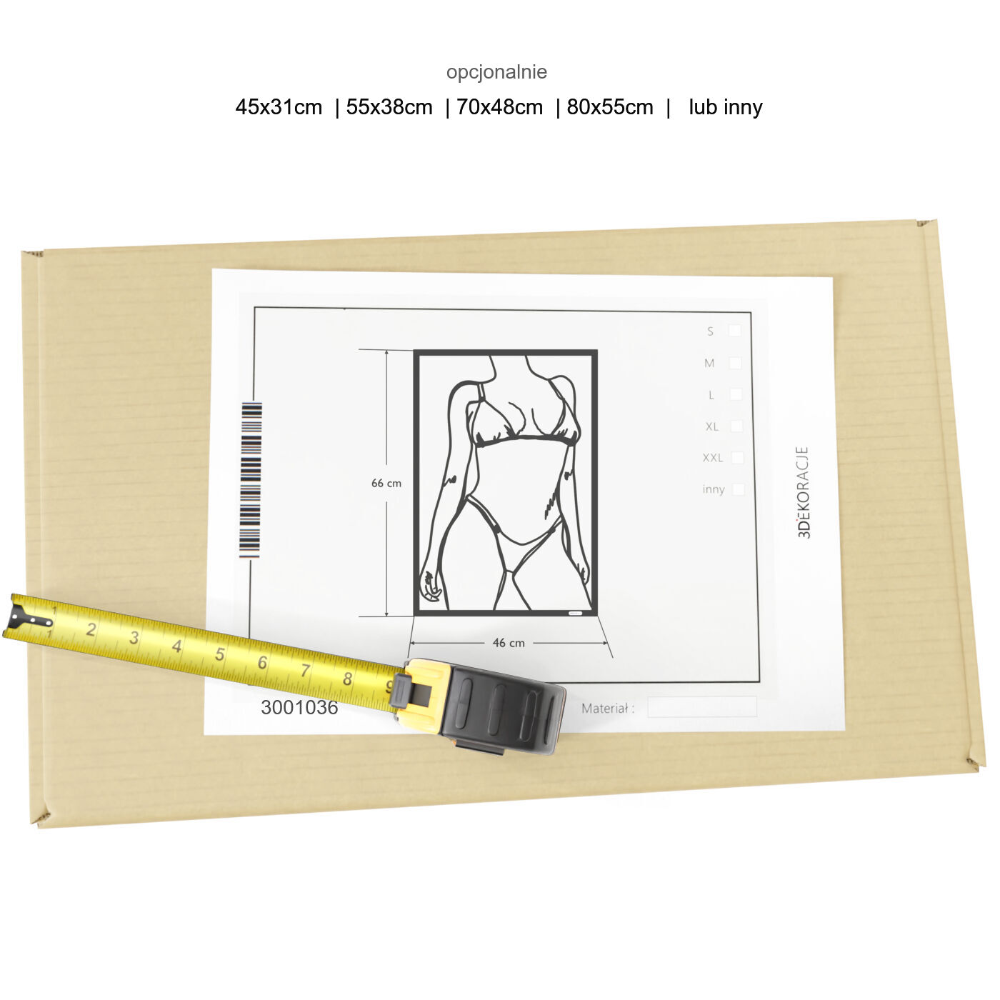 Panel dekoracyjny kobiece bikiniDekoracja ażurowa "Kobiece bikini" to artystyczny panel ścienny, który podkreśla kobiecą sylwetkę w eleganckim i minimalistycznym ujęciu. Dzięki precyzyjnemu wycięciu laserowemu, każda linia tworząca postać jest idealnie odwzorowana, a delikatny, acz wyrazisty kontur dodaje przestrzeni subtelnej zmysłowości. Prosta, ale jednocześnie dynamiczna forma tego panelu dekoracyjnego sprawia, że stanowi on doskonały akcent dekoracyjny do nowoczesnych wnętrz. Efekt trójwymiarowości i gra światła, która pojawia się na ścianie, tworzą wrażenie głębi i ruchu, wzbogacając całą kompozycję o dodatkowe walory wizualne. Wykonana z najwyższej jakości materiałów, dekoracja jest lekka, a jej montaż nie sprawia trudności. Ta ozdoba na ścianę doskonale sprawdzi się w sypialni, łazience, a także w salonie, gdzie doda wnętrzu delikatnego, artystycznego charakteru. Idealna dla osób poszukujących minimalistycznych i eleganckich akcentów, które w subtelny sposób podkreślą styl pomieszczenia. Lekka konstrukcja sprawia, że montaż jest szybki i prosty, a oryginalny design przyciągnie wzrok i stanie się wyjątkowym punktem dekoracyjnym w Twoim domu.