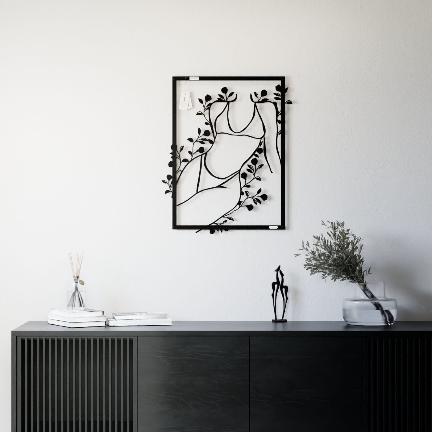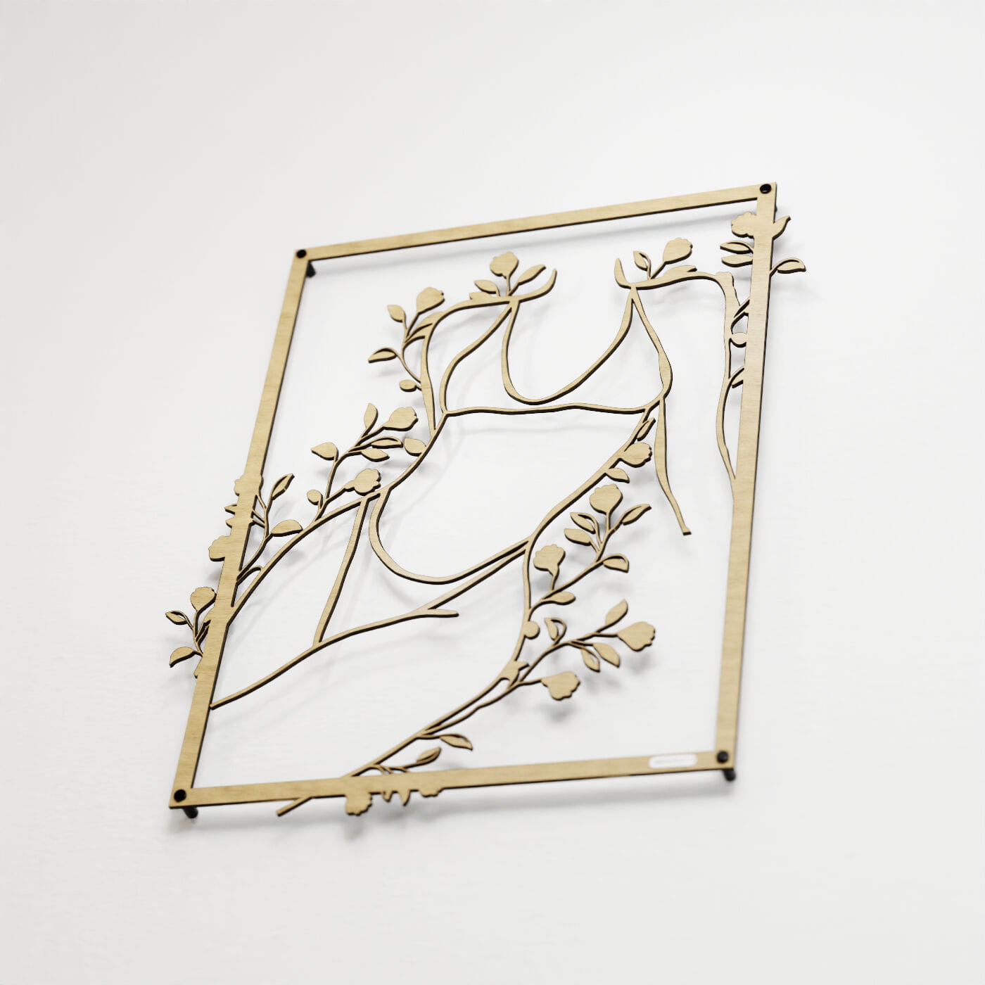 Panel dekoracyjny kobieta w kwiatachPrzestrzenny ażurowy panel 3D Kobieta w kwiatach to niezwykle elegancka dekoracja ścienna, który w artystyczny sposób łączy kobiecą sylwetkę z delikatnymi, kwitnącymi gałązkami. Wyjątkowo subtelny, minimalistyczny design tej dekoracji podkreśla piękno zarówno kobiecego ciała, jak i natury, tworząc harmonijną i wyrazistą kompozycję. Wycięty laserowo panel zachwyca precyzją wykonania, a jego lekkie i dynamiczne linie tworzą efekt trójwymiarowości. Ozdoba na ścianę idealnie wpisuje się w nowoczesne aranżacje wnętrz, w których potrzeba oryginalnych i artystycznych akcentów. Delikatne kształty kwiatów nadają dekoracji romantyczny charakter, który doskonale sprawdzi się w sypialni, salonie czy przestrzeni artystycznej. Naturalne światło, które pada na panel, tworzy ciekawe cienie, wzbogacając wnętrze o głębię i subtelną elegancję. Dzięki swojej lekkiej konstrukcji panel dekoracyjny jest łatwy w montażu i może szybko stać się centralnym punktem aranżacyjnym. To wyjątkowa propozycja dla osób, które cenią sobie artystyczne formy dekoracji, łączące w sobie estetykę i naturę, wprowadzając jednocześnie do wnętrza nutę wyrafinowanego stylu.