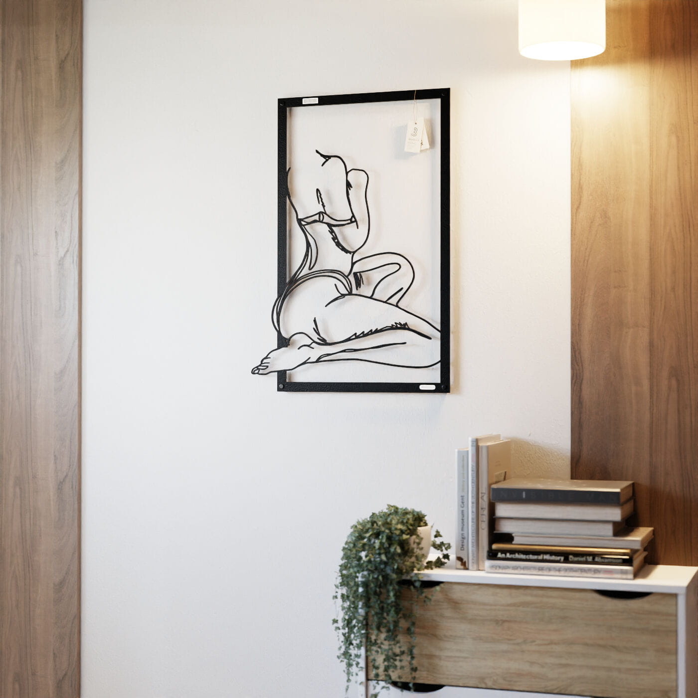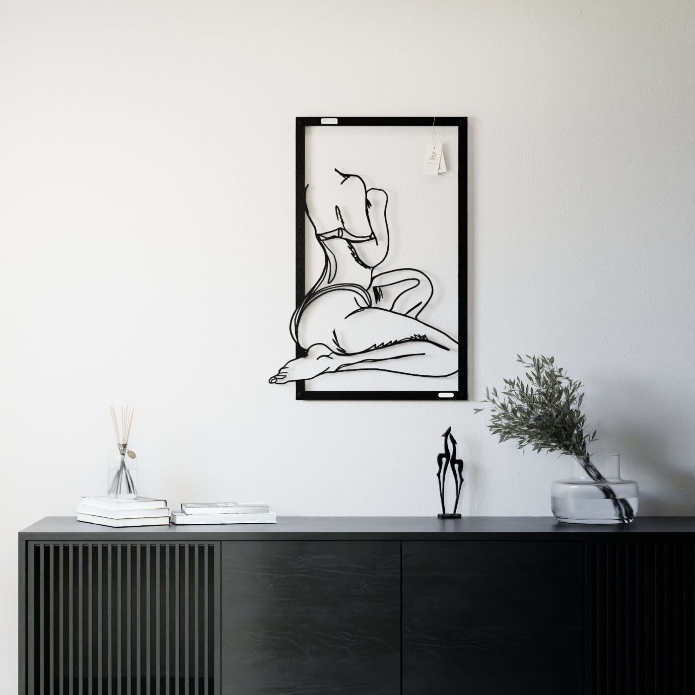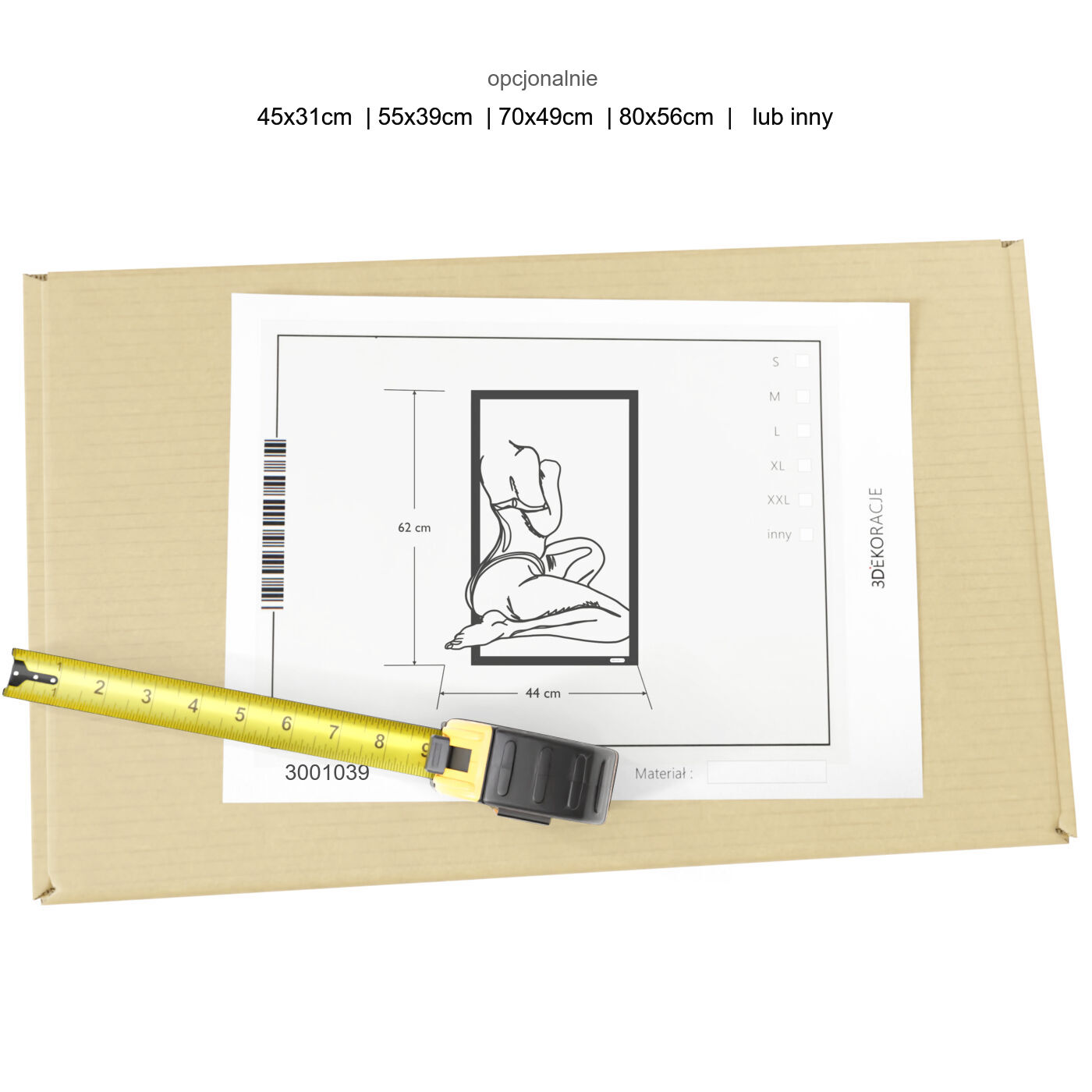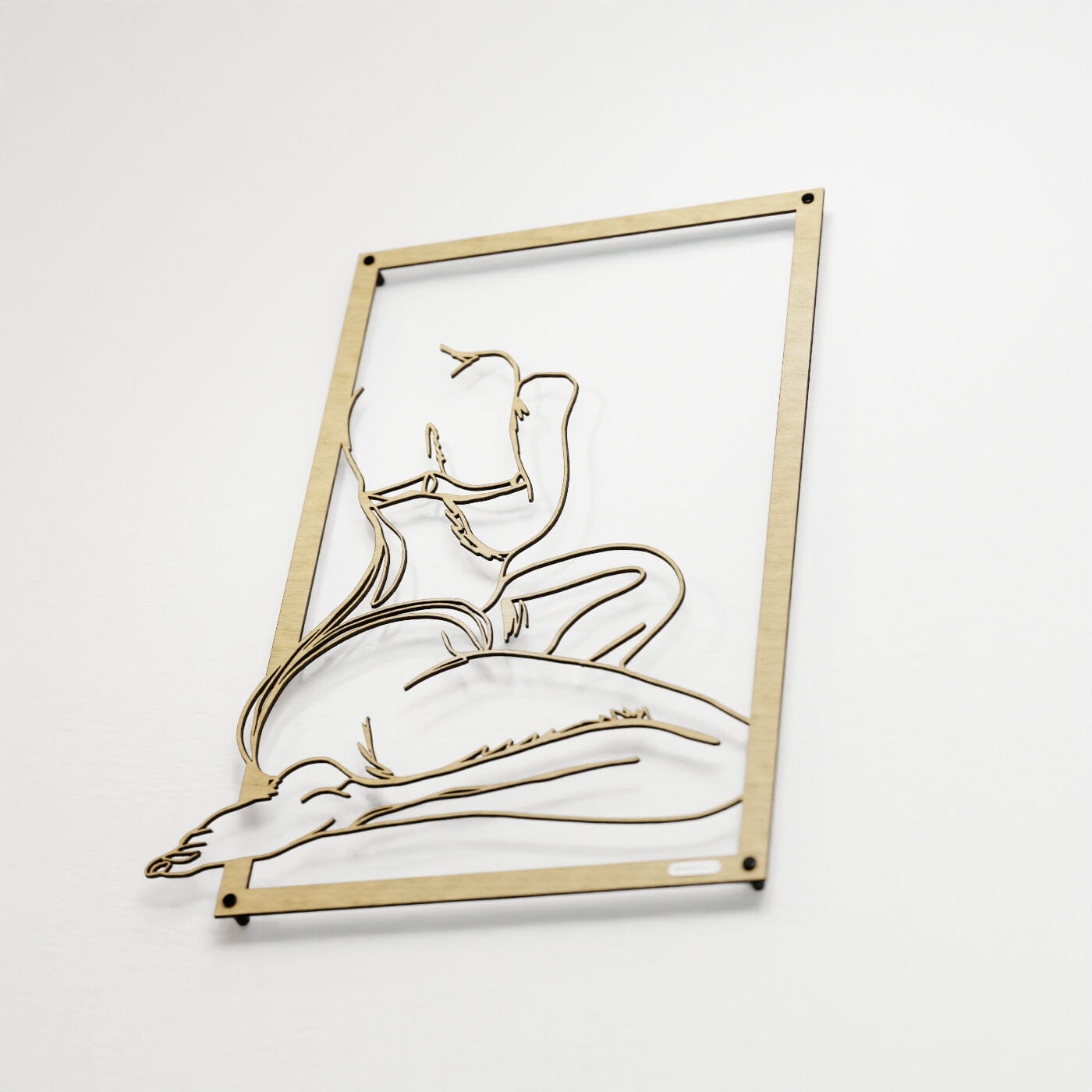 Panel dekoracyjny postać kobietyDekoracja ażurowa "Siedząca kobieta" to subtelny i artystyczny panel ścienny, który przedstawia zarys kobiecej sylwetki w relaksującej pozycji. Minimalistyczna forma wyraźnie podkreśla detale ciała, a delikatne linie nadają całości lekkości i elegancji. Precyzyjne wycięcie laserowe zapewnia dokładność, a czarne linie tworzące postać kontrastują z jasnym tłem, co sprawia, że dekoracja zyskuje trójwymiarowy efekt. Ozdoba na ścianę idealnie nadaje się do nowoczesnych, minimalistycznych aranżacji, wprowadzając do wnętrza element artystycznego wyrazu. Naturalne światło, które pada na panel, tworzy ciekawe cienie, wzbogacając całość o dodatkową głębię. Dekoracja sprawdzi się doskonale w sypialni, salonie lub przestrzeni relaksacyjnej, nadając pomieszczeniu wyjątkowego klimatu i subtelnego charakteru. Dzięki swojej lekkiej formie, panel dekoracyjny jest prosty w montażu, co pozwala na szybkie i bezproblemowe odświeżenie wnętrza. To idealna propozycja dla osób, które cenią sobie nowoczesne, minimalistyczne rozwiązania oraz pragną wprowadzić do swojego domu unikalny akcent artystyczny.