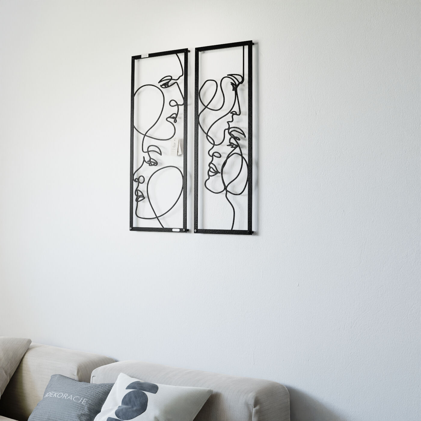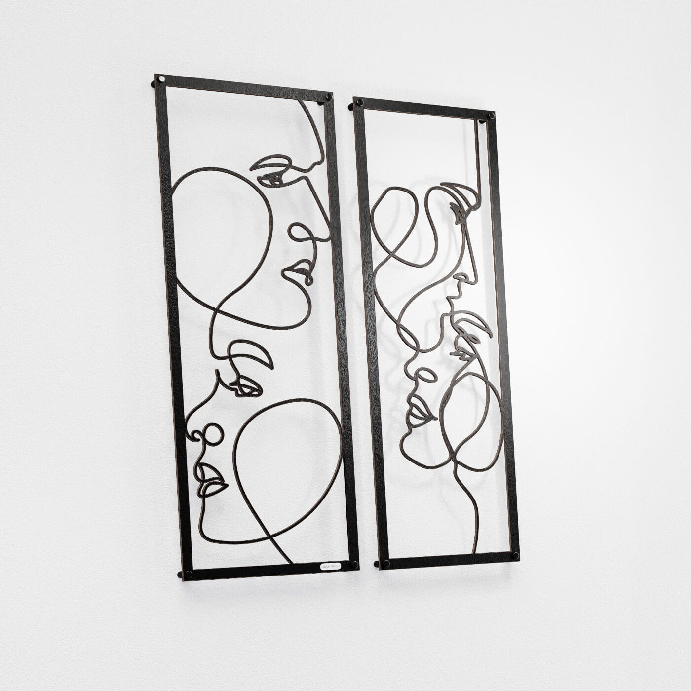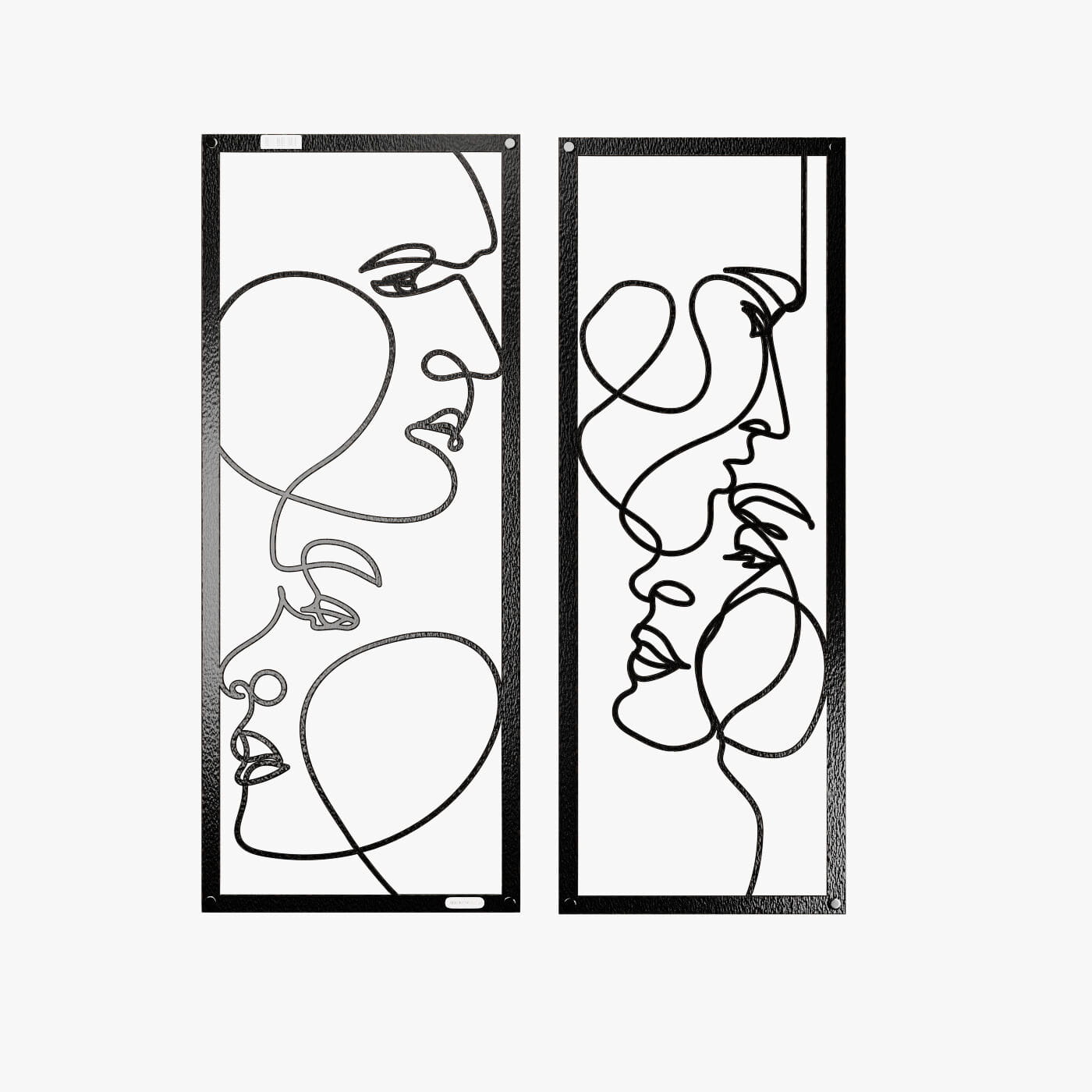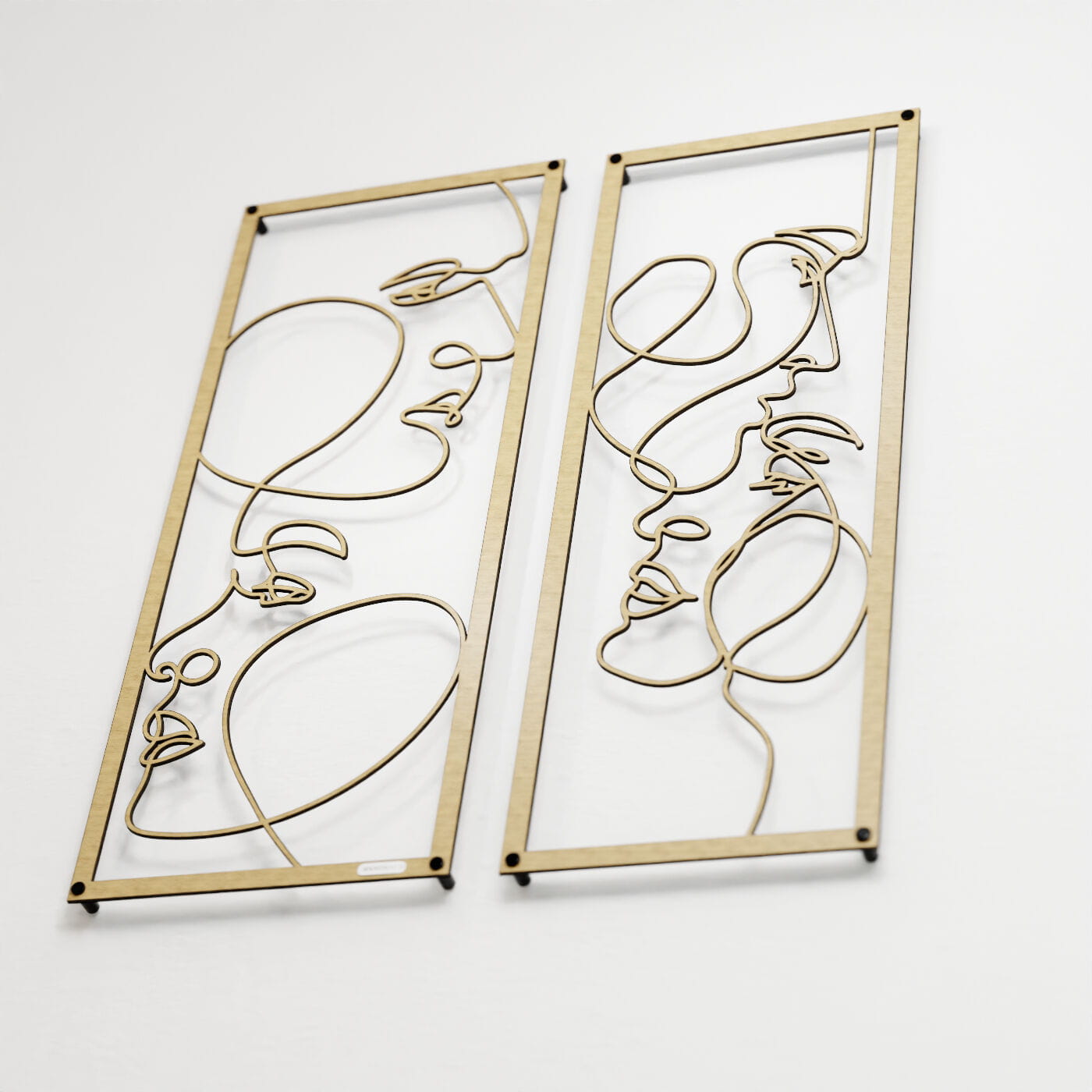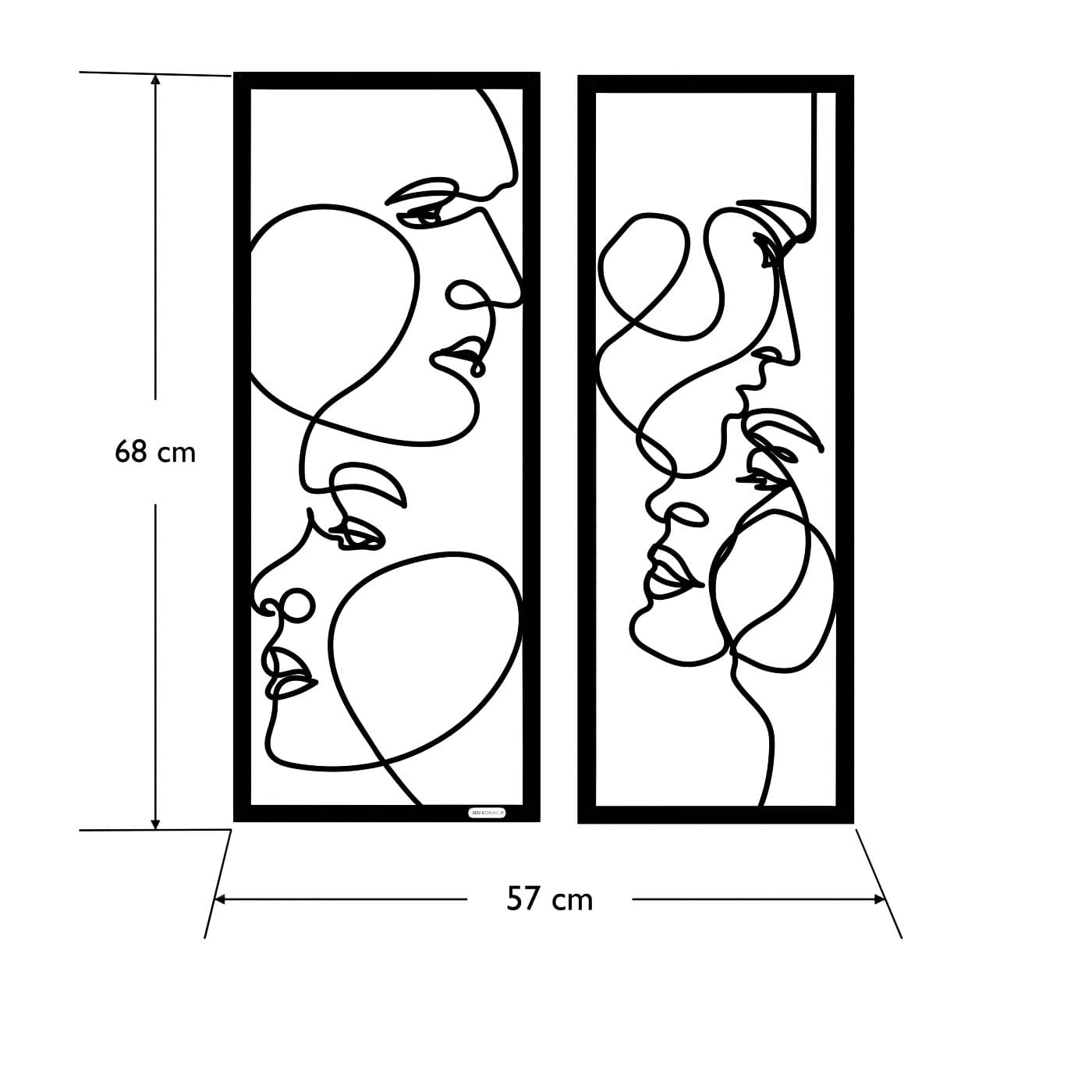 Dyptyk ażurowy zakochaniDwa panele ażurowe 3d "Zakochani" to wyjątkowa i artystyczna dekoracja ścienna, która idealnie wpasuje się w nowoczesne wnętrza. Zestaw składa się z dwóch paneli, z których każdy przedstawia abstrakcyjne, ale subtelnie zarysowane twarze, wycięte jednym ciągłym ruchem linii. Twarze zwrócone ku sobie, delikatnie przenikające się, oddają intymność i bliskość, nadając całości romantyczny charakter. Te panele dekoracyjne wyróżniają się minimalistycznym, a jednocześnie wyrazistym stylem. Cienkie, czarne linie, starannie wycięte laserowo z drewna, tworzą elegancki kontrast z jasnym tłem, a naturalne światło, które pada na panele, wzbogaca je o ciekawe cienie, tworząc efekt głębi. Ozdoba na ścianę "Zakochani" doskonale sprawdzi się w sypialni, salonie lub przestrzeni, gdzie potrzebny jest romantyczny akcent. Dzięki lekkości formy, panele są łatwe w montażu, a ich oryginalna stylistyka wprowadzi do wnętrza element sztuki i emocji, przyciągając wzrok każdego, kto je zobaczy.