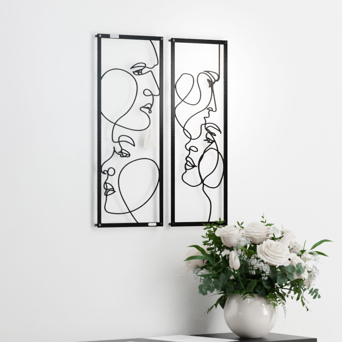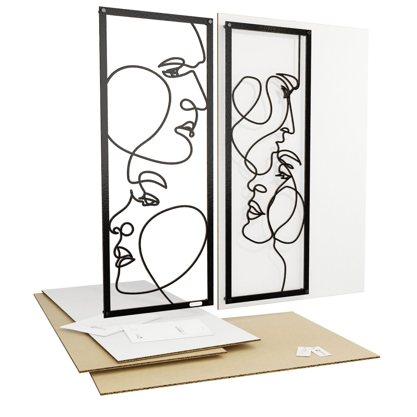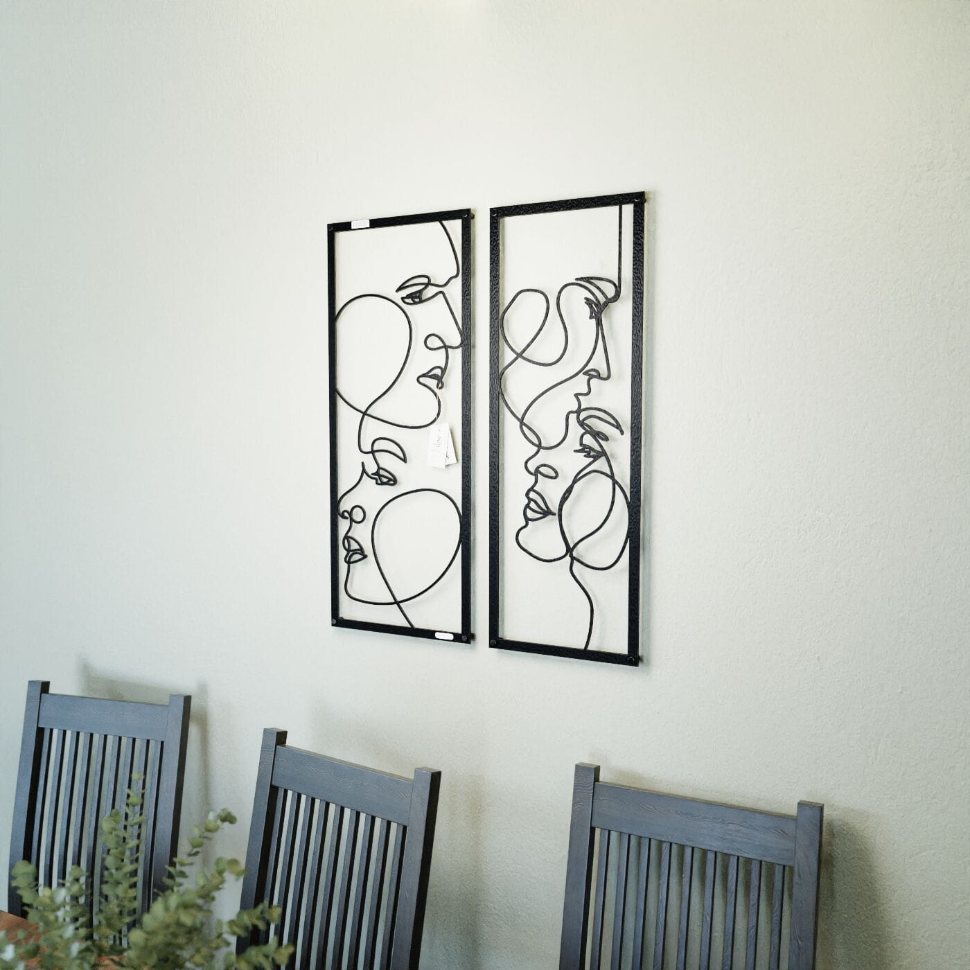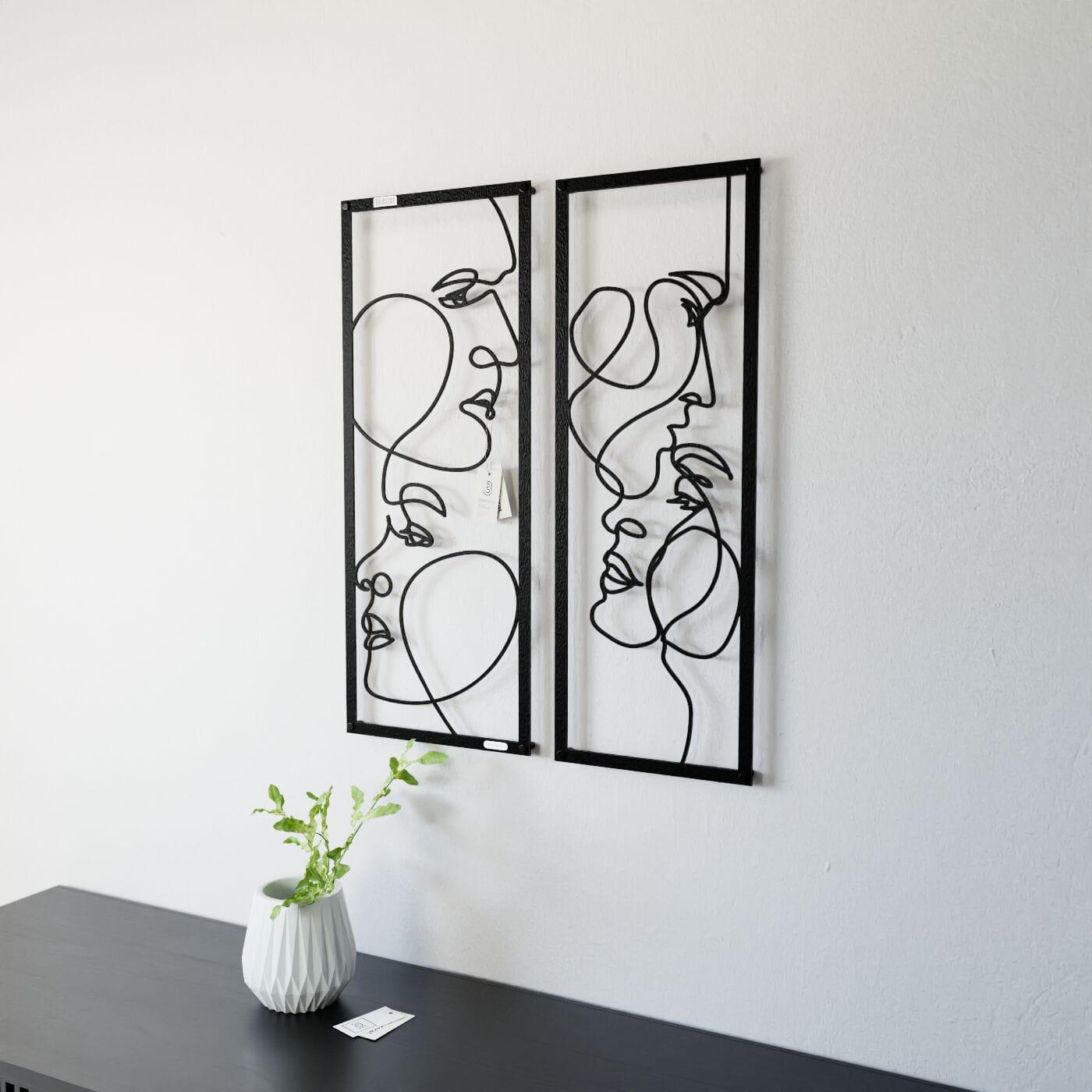 Dyptyk ażurowy zakochaniDwa panele ażurowe 3d "Zakochani" to wyjątkowa i artystyczna dekoracja ścienna, która idealnie wpasuje się w nowoczesne wnętrza. Zestaw składa się z dwóch paneli, z których każdy przedstawia abstrakcyjne, ale subtelnie zarysowane twarze, wycięte jednym ciągłym ruchem linii. Twarze zwrócone ku sobie, delikatnie przenikające się, oddają intymność i bliskość, nadając całości romantyczny charakter. Te panele dekoracyjne wyróżniają się minimalistycznym, a jednocześnie wyrazistym stylem. Cienkie, czarne linie, starannie wycięte laserowo z drewna, tworzą elegancki kontrast z jasnym tłem, a naturalne światło, które pada na panele, wzbogaca je o ciekawe cienie, tworząc efekt głębi. Ozdoba na ścianę "Zakochani" doskonale sprawdzi się w sypialni, salonie lub przestrzeni, gdzie potrzebny jest romantyczny akcent. Dzięki lekkości formy, panele są łatwe w montażu, a ich oryginalna stylistyka wprowadzi do wnętrza element sztuki i emocji, przyciągając wzrok każdego, kto je zobaczy.